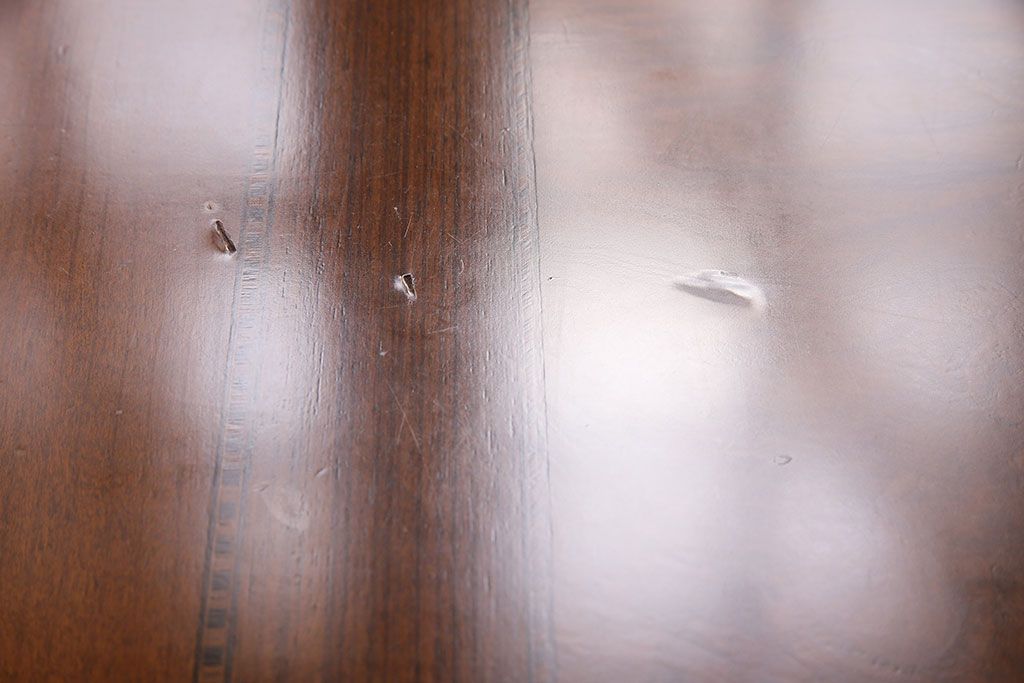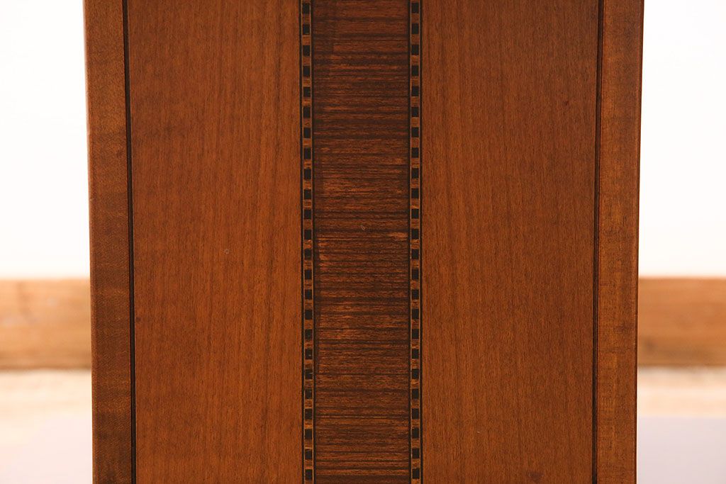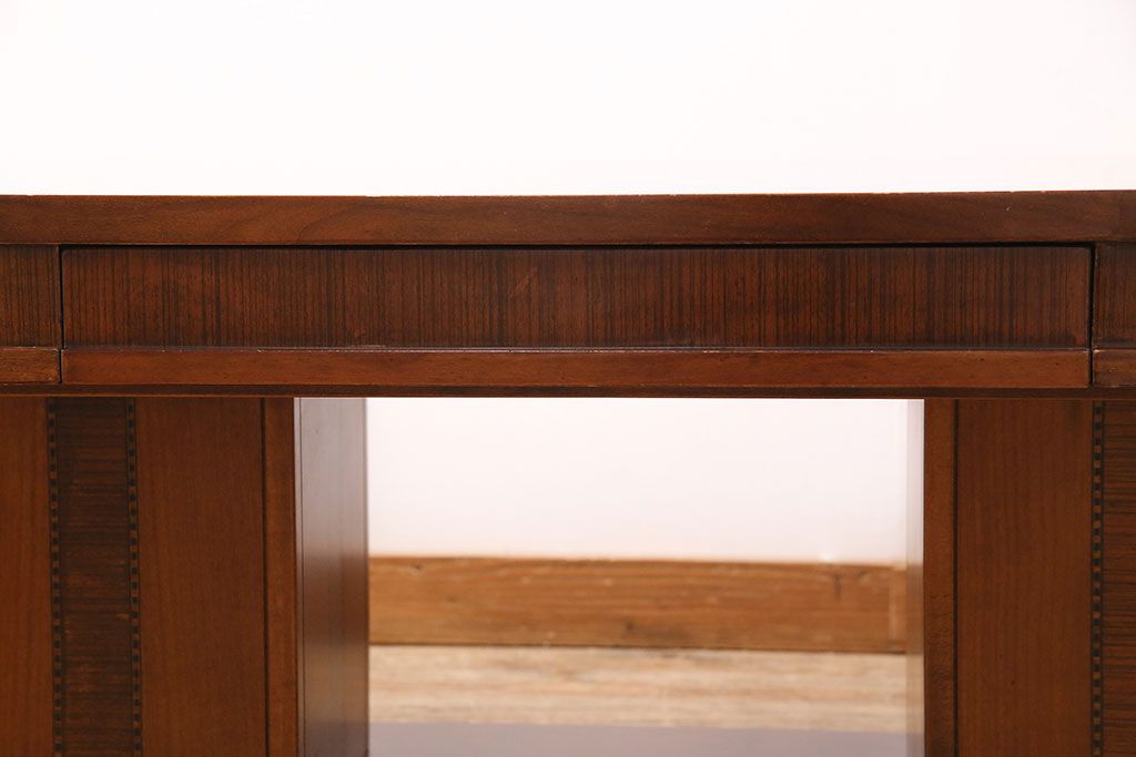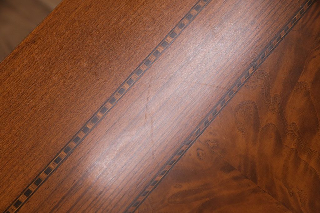 天板や脚に施された象嵌や美しい木目が全体を飾り、