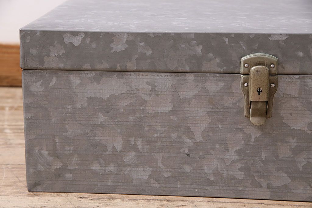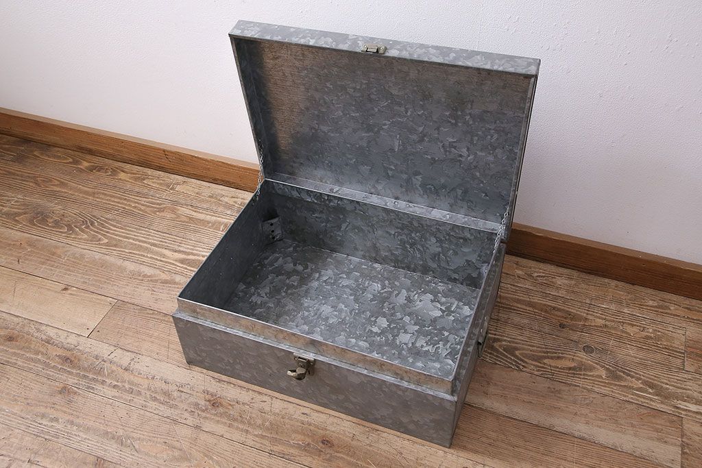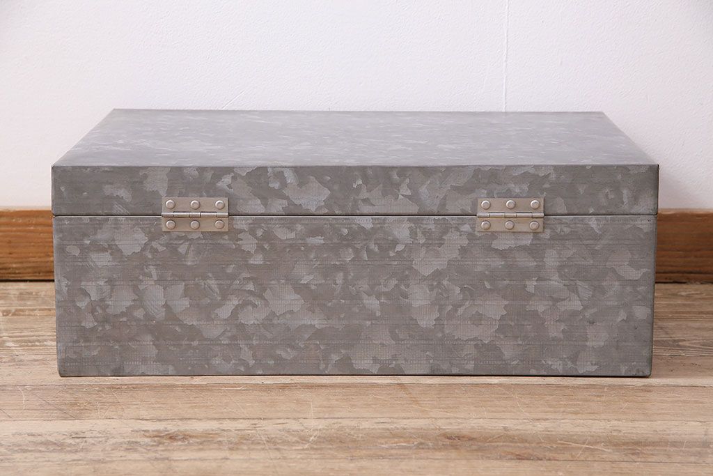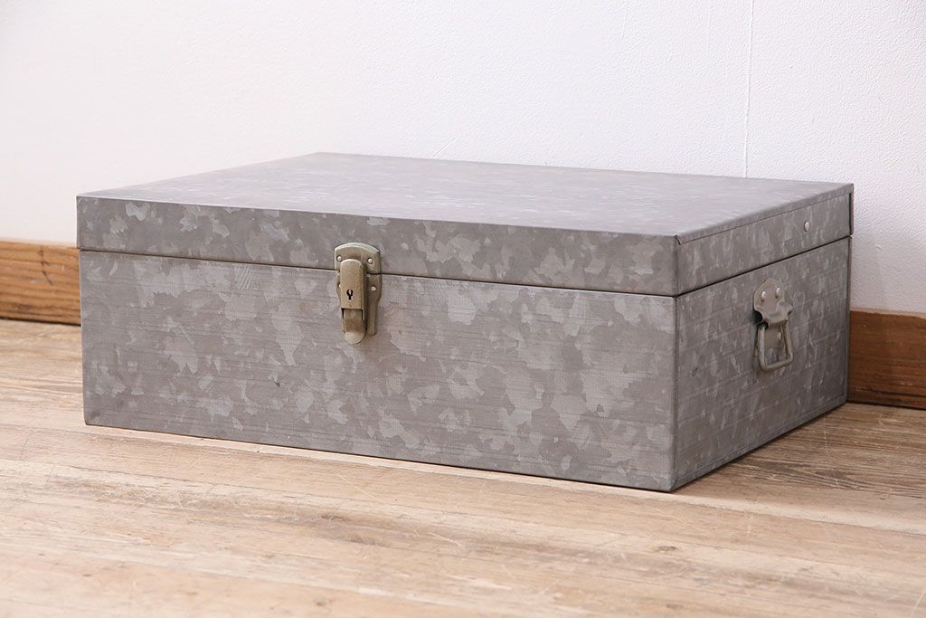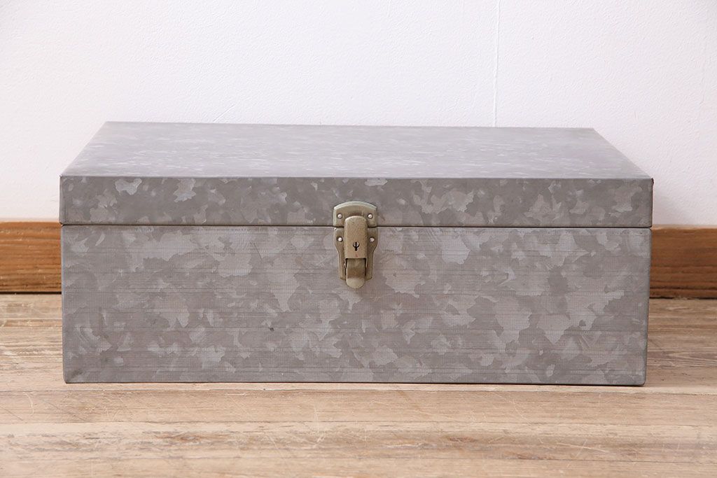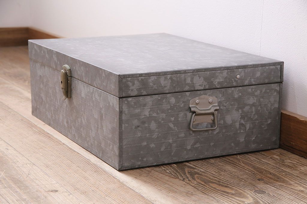 美品 アンティーク雑貨 しっかりとした作りの格好良いブリキ製BOX(収納ボックス、収納箱、小物収納)(R-048246)