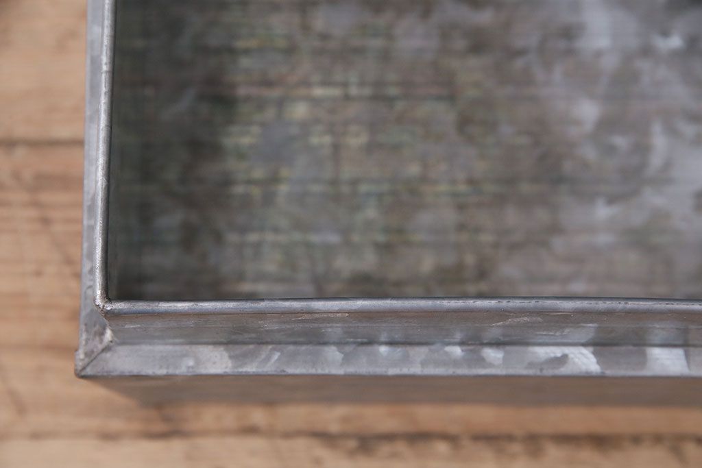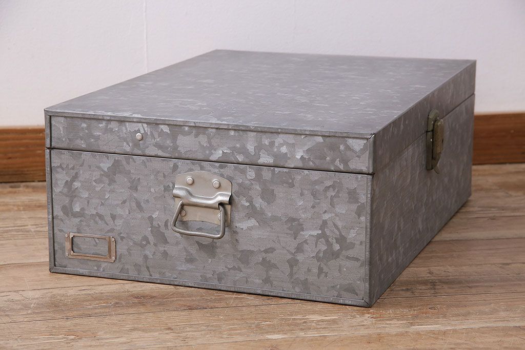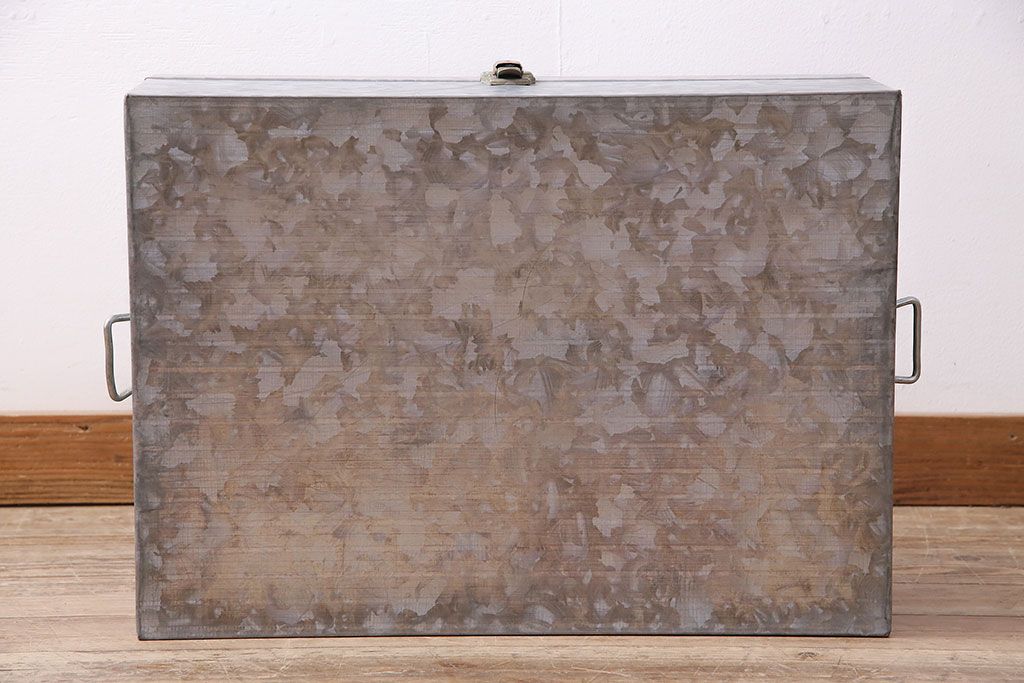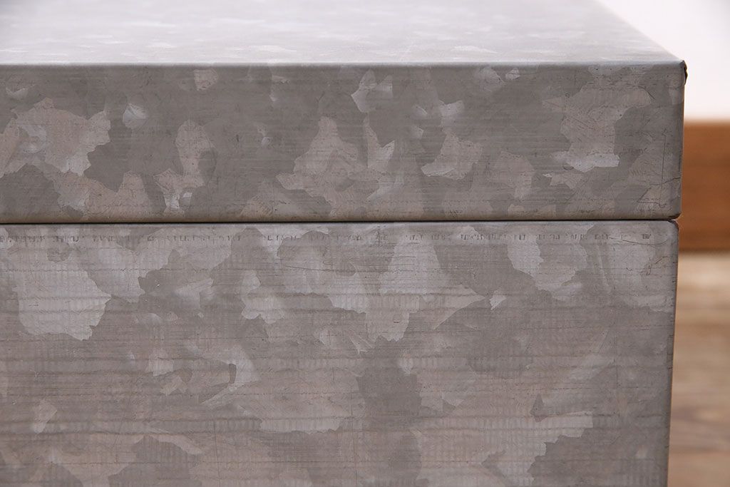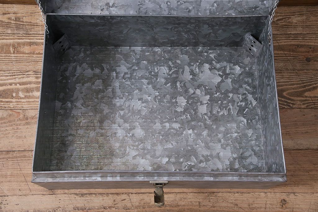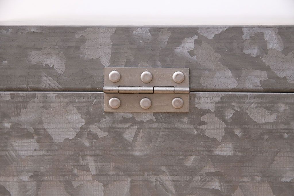 美品 アンティーク雑貨 しっかりとした作りの格好良いブリキ製BOX(収納ボックス、収納箱、小物収納)(R-048246)