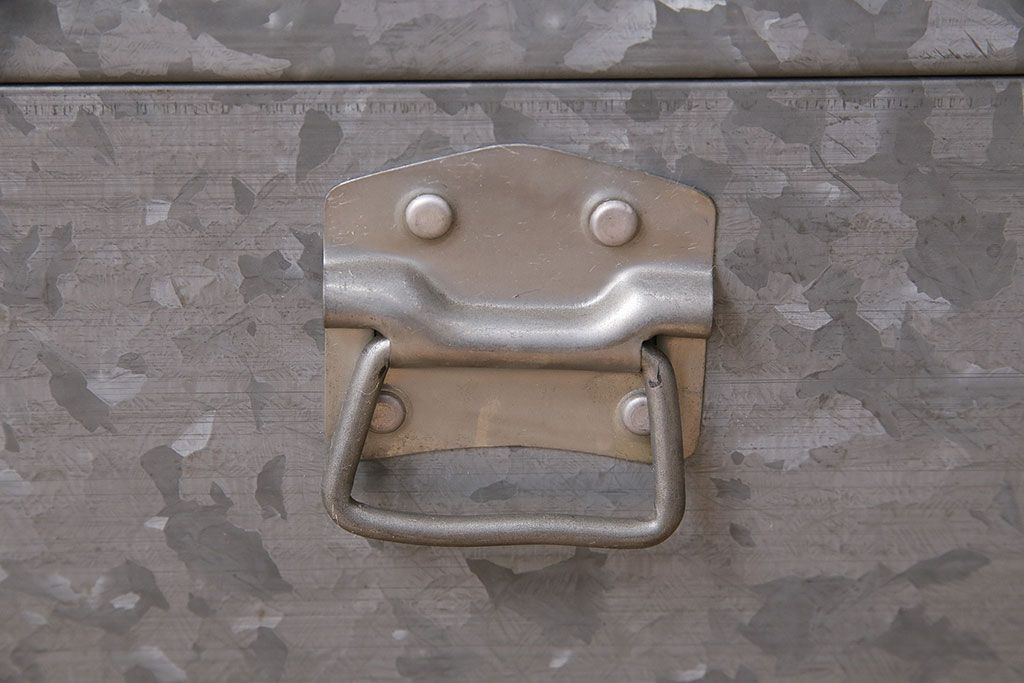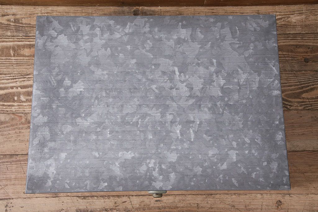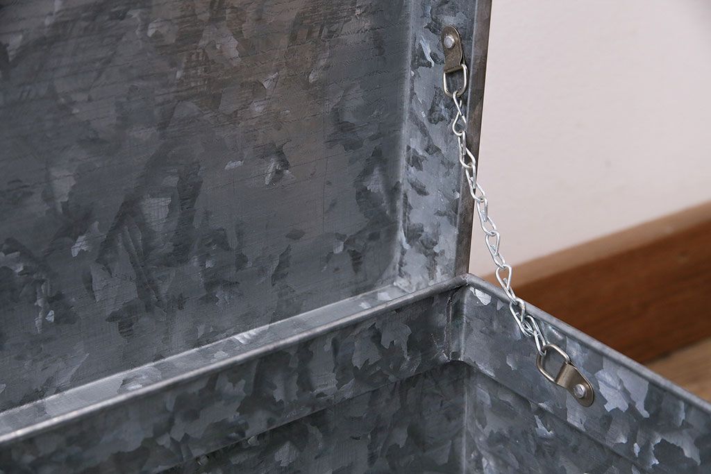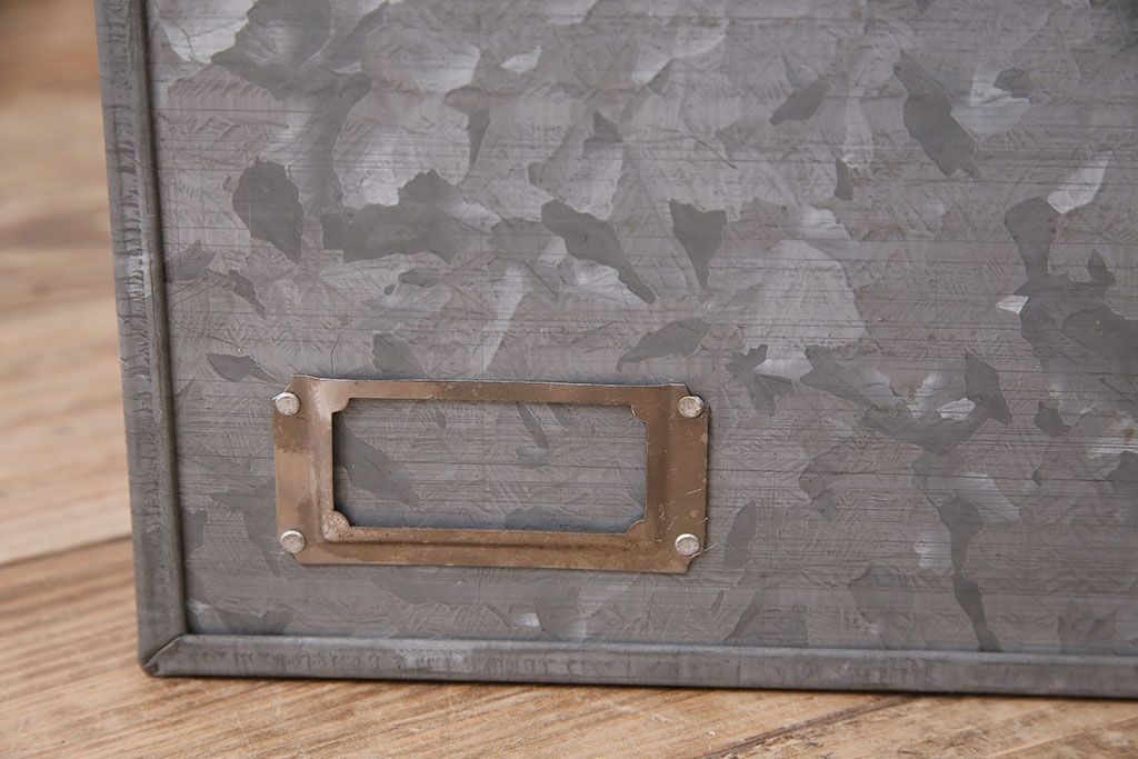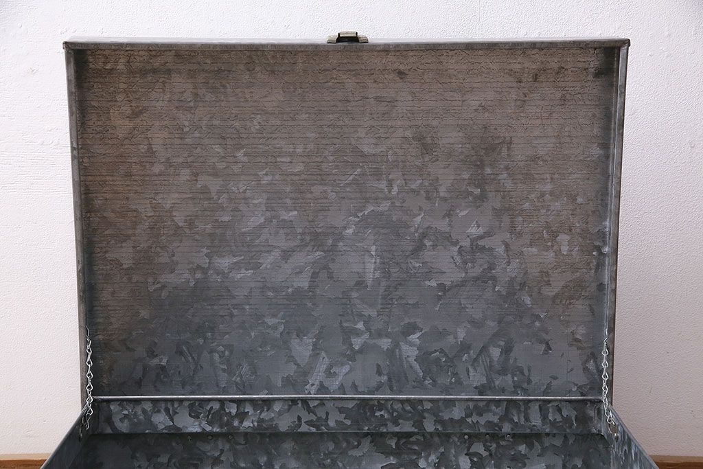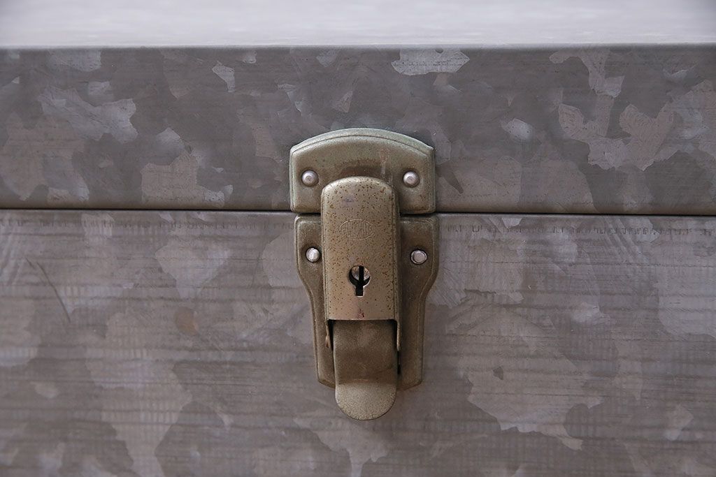 美品 アンティーク雑貨 しっかりとした作りの格好良いブリキ製BOX(収納ボックス、収納箱、小物収納)(R-048246)
