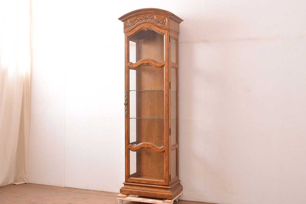 ガラスケース・ショーケース > 中古 アメリカ輸入モデル DREXEL HERITAGE(ドレクセルヘリテイジ) エレガントな佇まいが魅力的な縦長シルエットのキュリオケース(飾り棚、コレクションケース、ガラスケース)(R-047666)