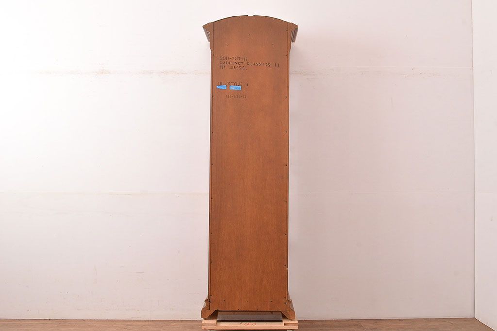 中古 アメリカ輸入モデル DREXEL HERITAGE(ドレクセルヘリテイジ) エレガントな佇まいが魅力的な縦長シルエットのキュリオケース(飾り棚、コレクションケース、ガラスケース)(R-047666)