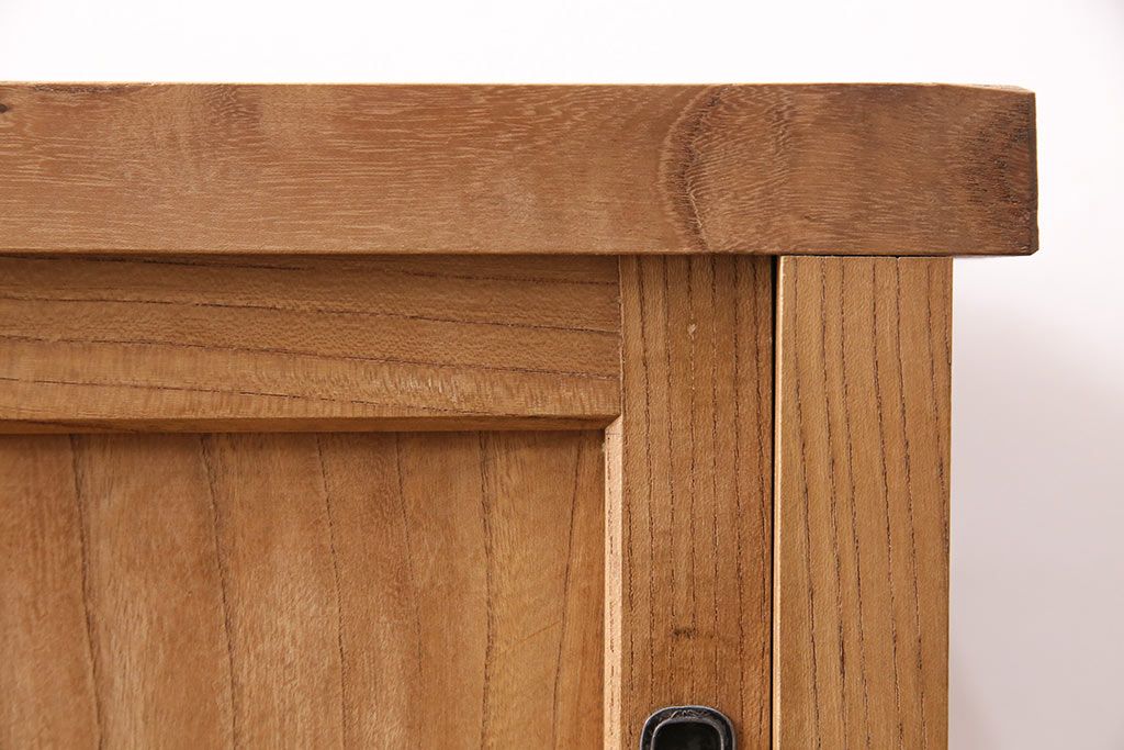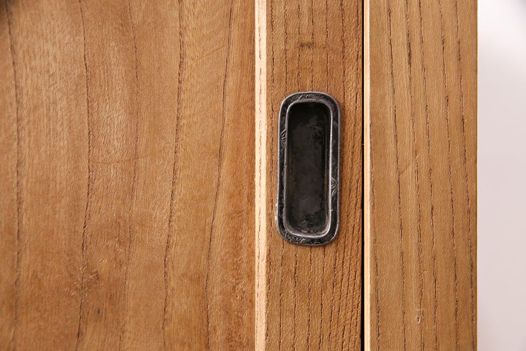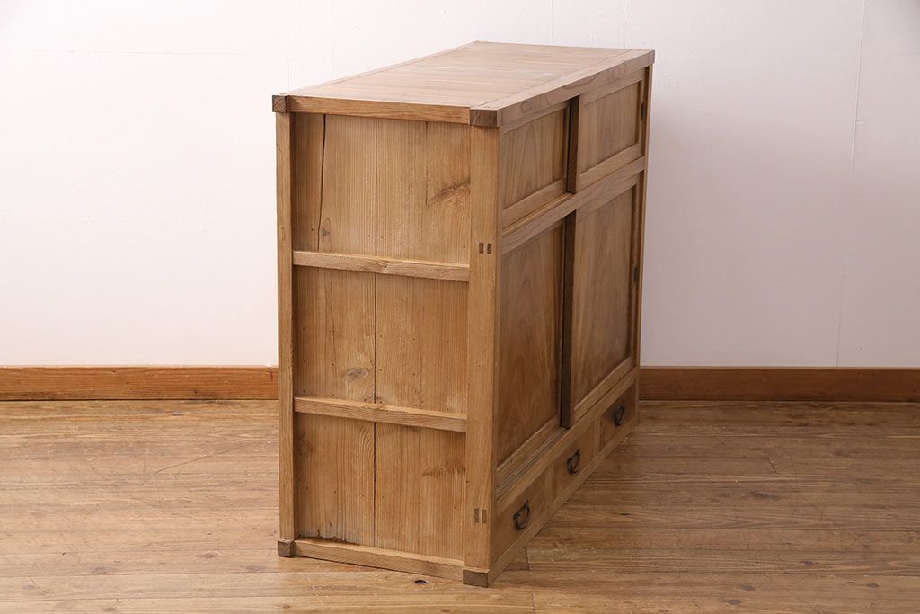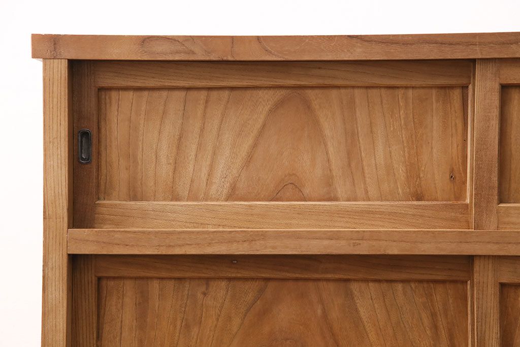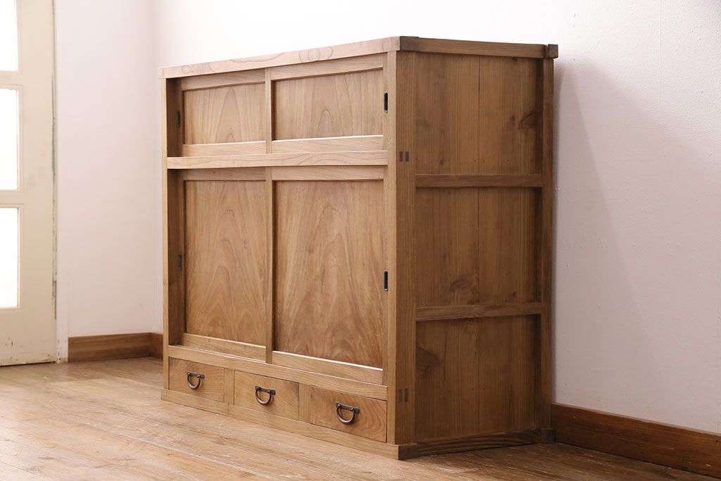 キャビネット・戸棚> サイドキャビネット > 和製アンティーク 大胆でくっきりとした杢目が趣溢れる前面ケヤキ材製の関東水屋箪笥(サイドボード、収納棚、茶棚、キャビネット)(R-047321)