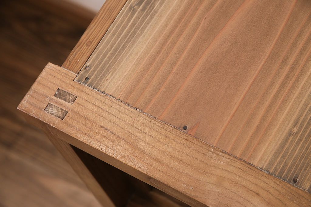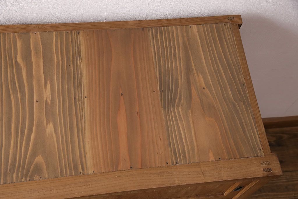 和箪笥> 水屋箪笥 > 和製アンティーク 大胆でくっきりとした杢目が趣溢れる前面ケヤキ材製の関東水屋箪笥(サイドボード、収納棚、茶棚、キャビネット)(R-047321)