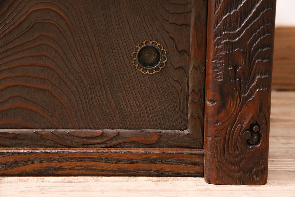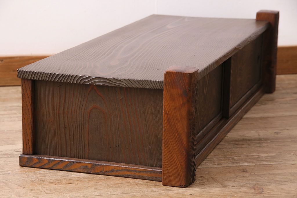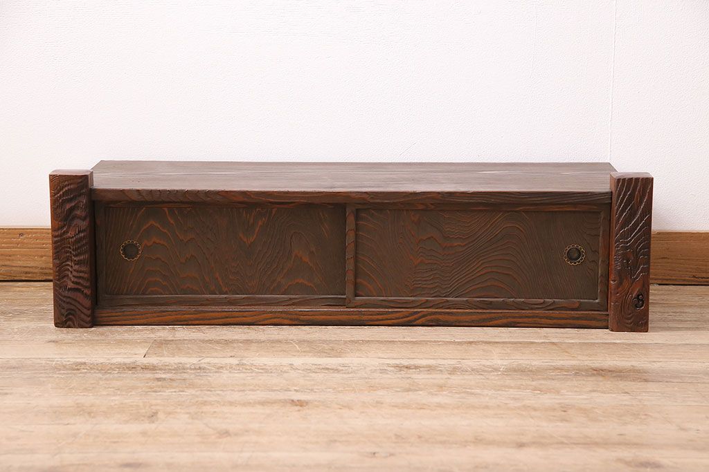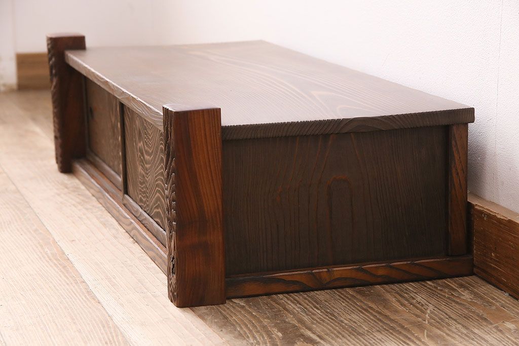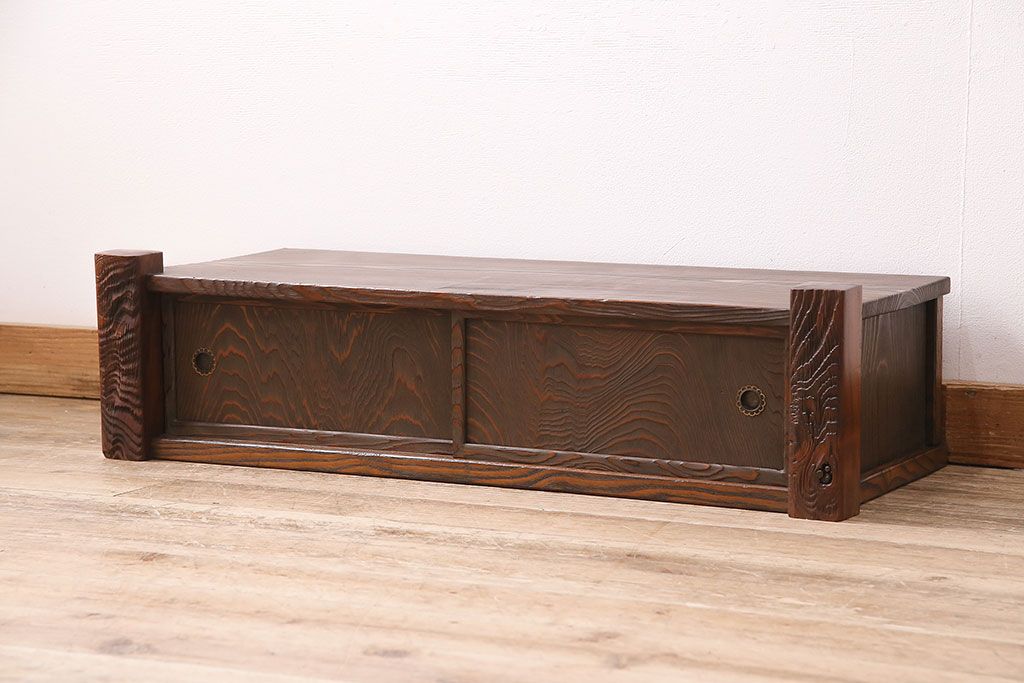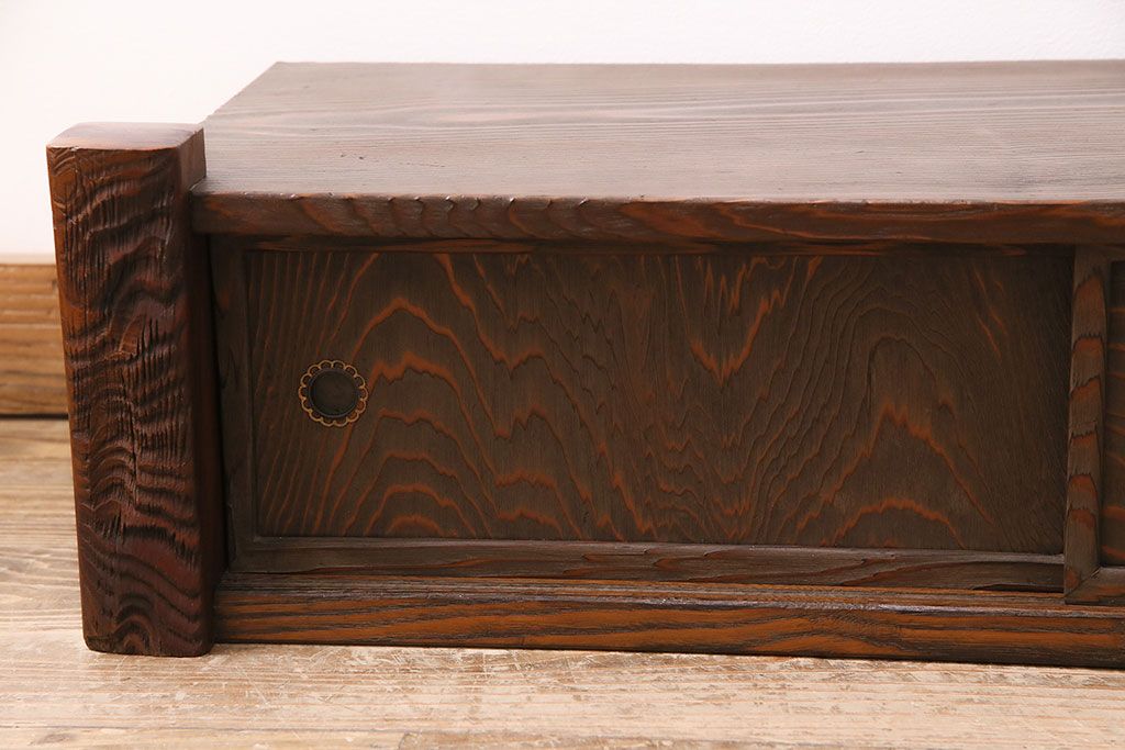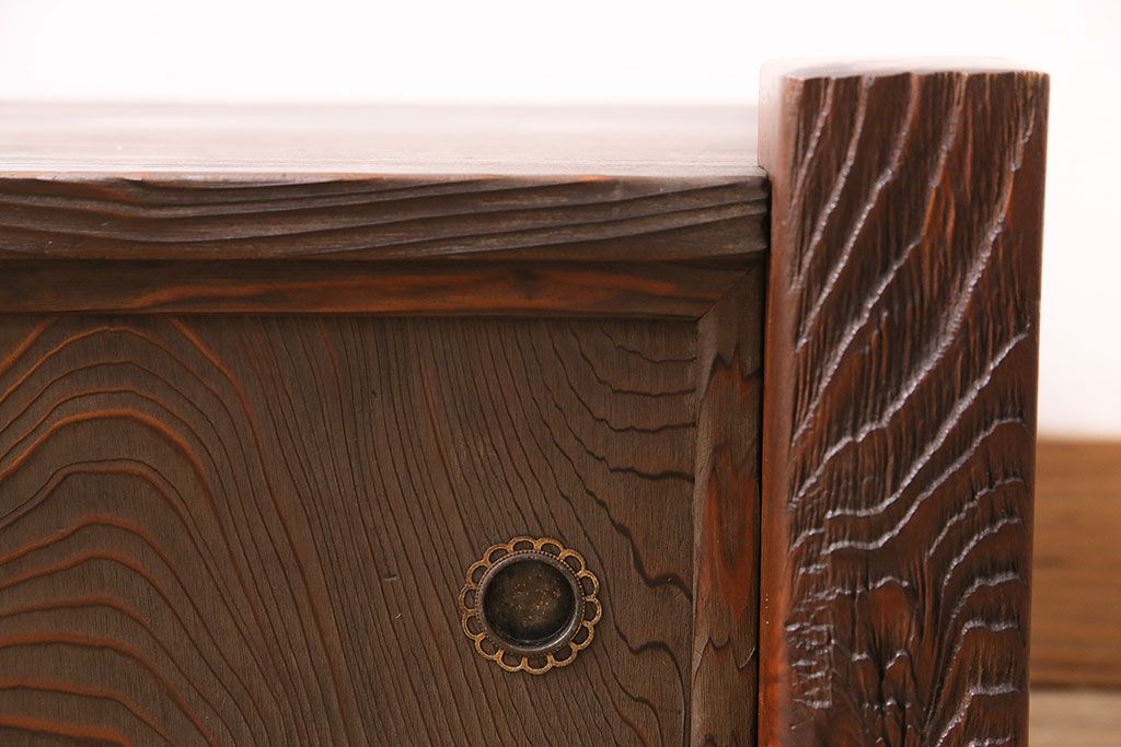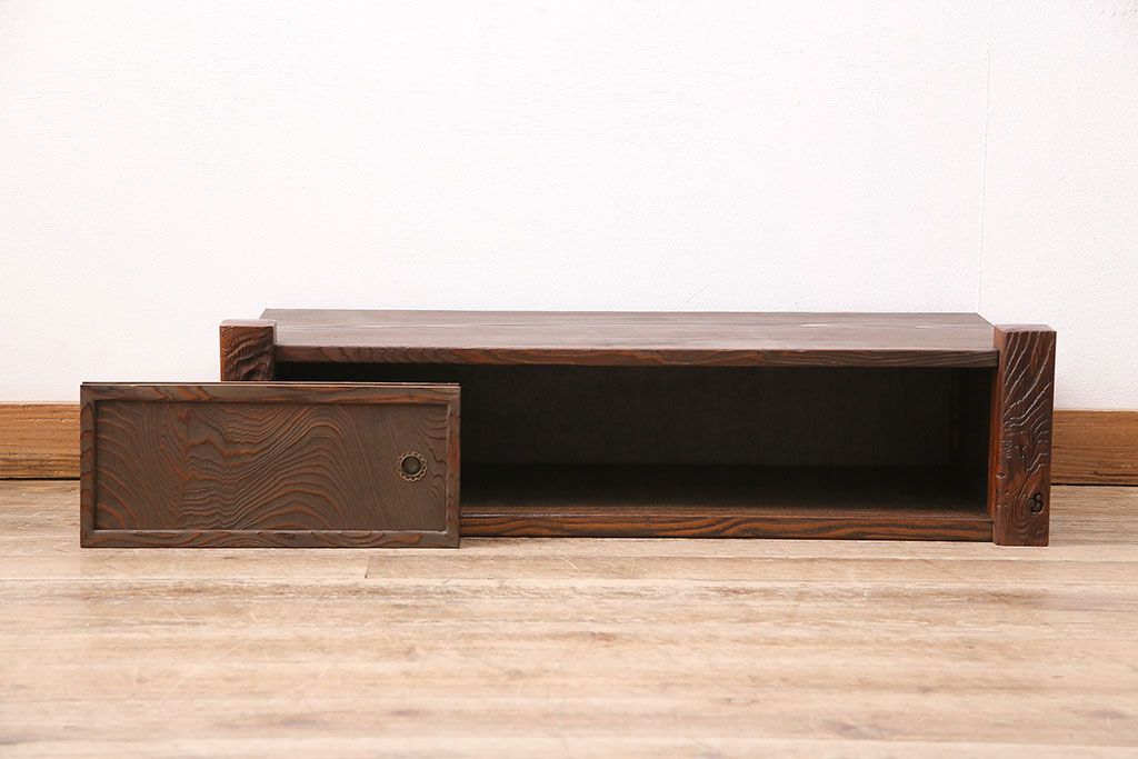 中古 民芸家具 高級杉材の木目が美しい浮造り仕上げの置き床(ローボード、テレビ台、飾り台)(R-048242)です。