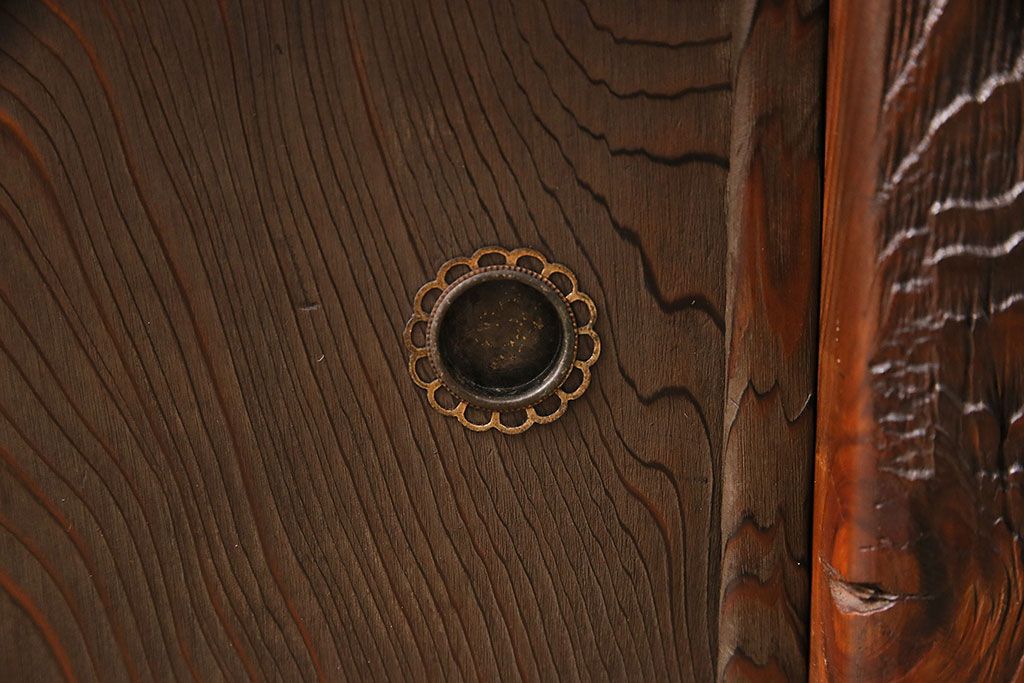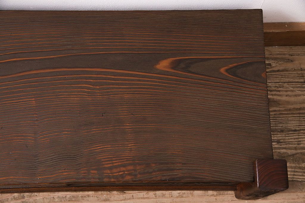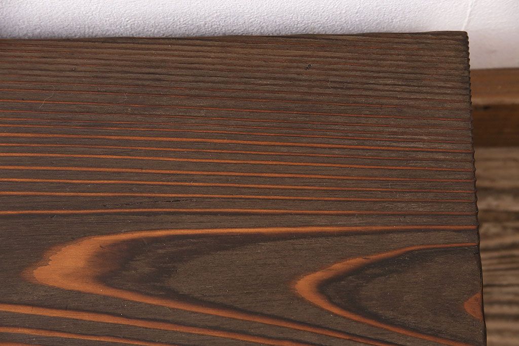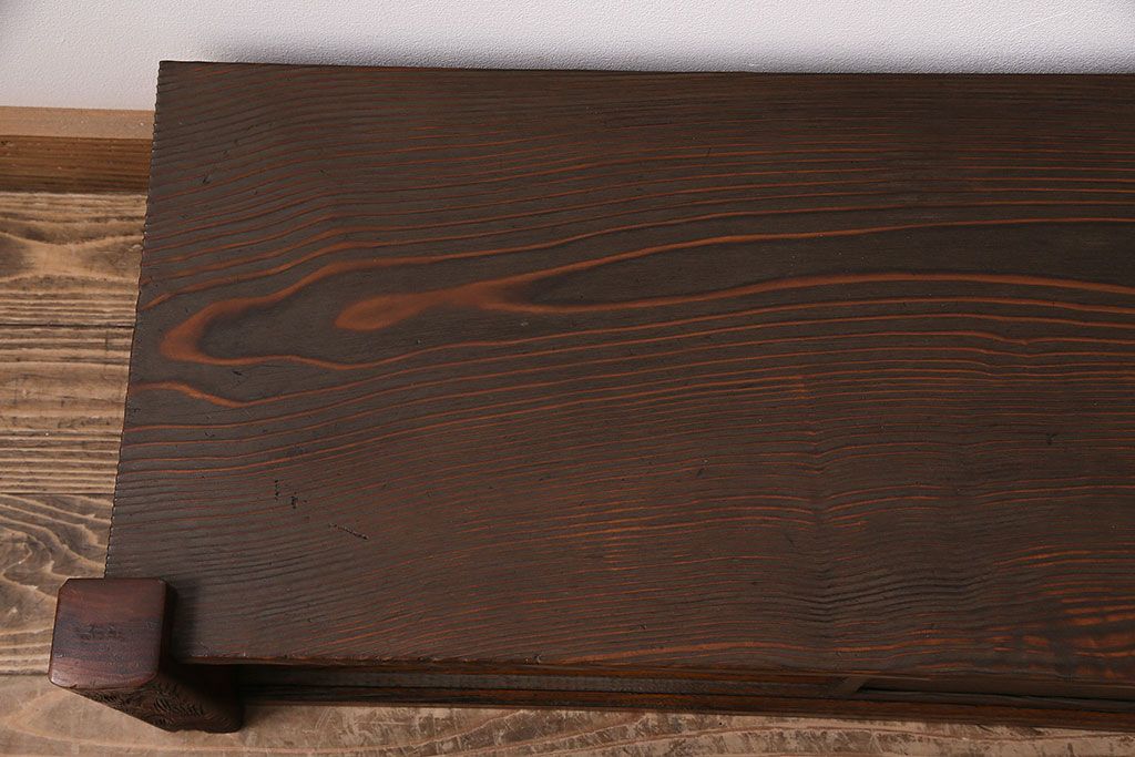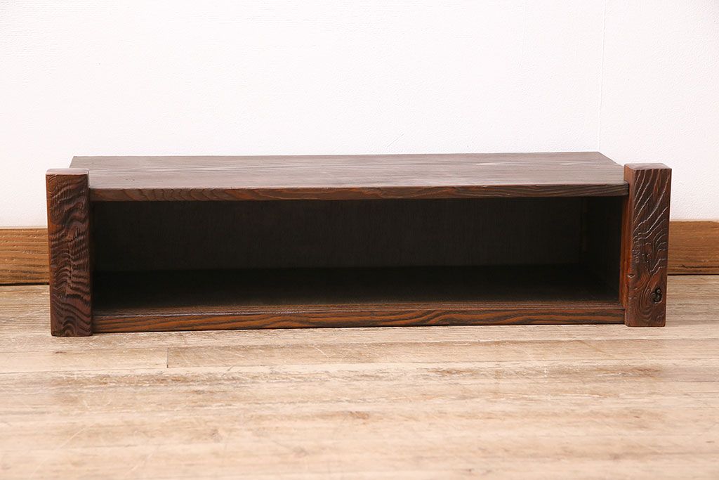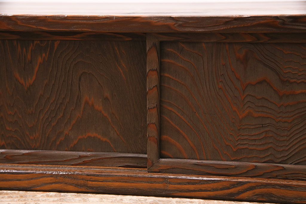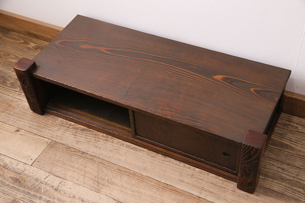 中古 民芸家具 高級杉材の木目が美しい浮造り仕上げの置き床(ローボード、テレビ台、飾り台)(R-048242)