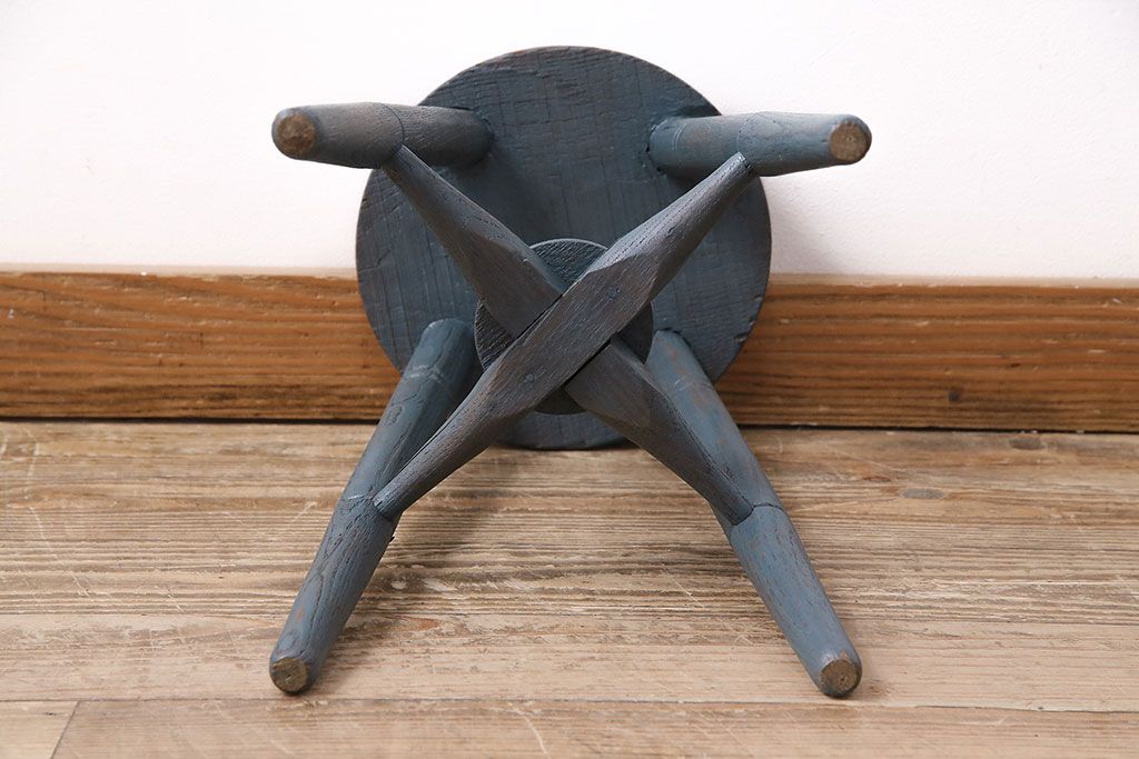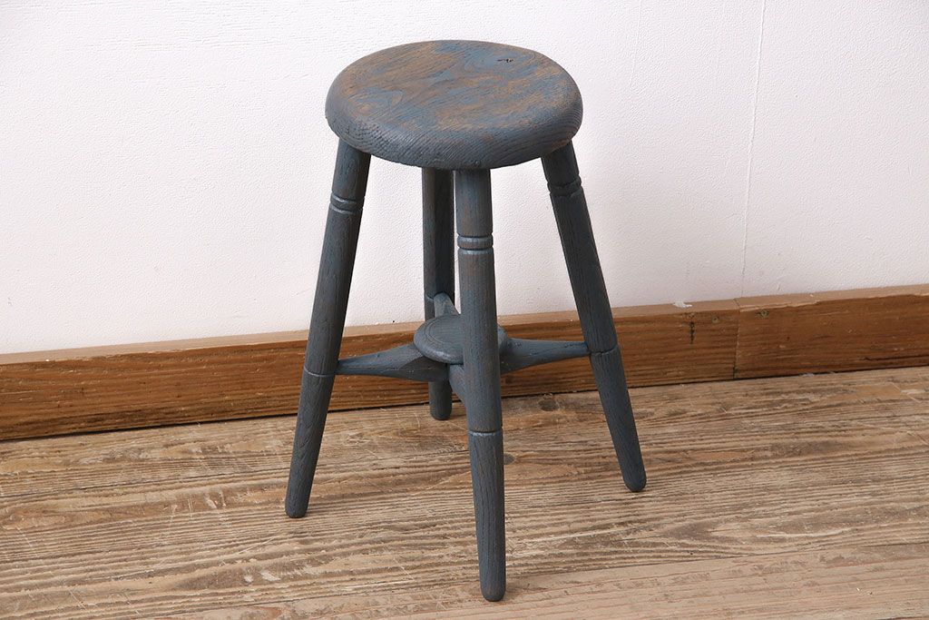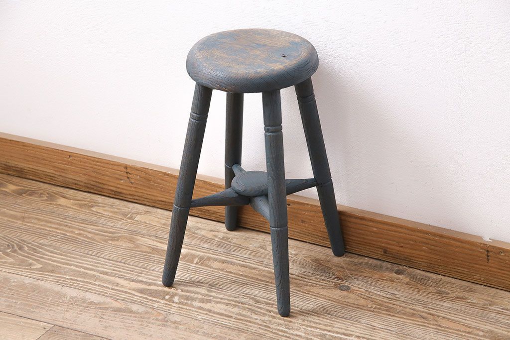和製アンティーク 当店でペイントを施したレトロな栗材製のスツール(椅子、木製チェア、花台)(R-048245)です。