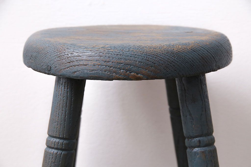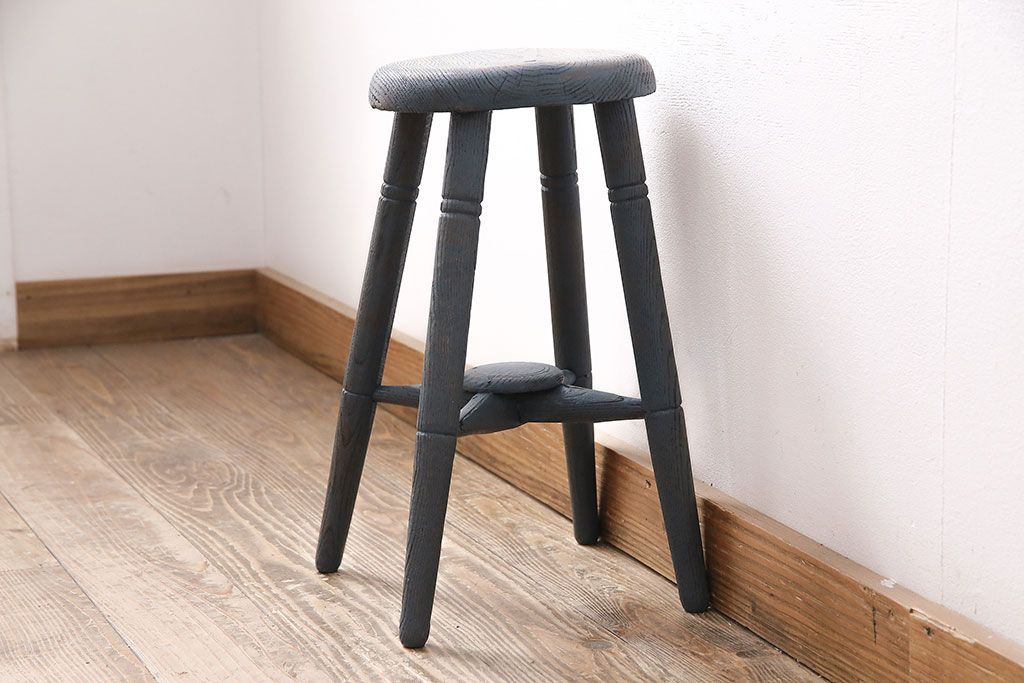 和製アンティーク 当店でペイントを施したレトロな栗材製のスツール(椅子、木製チェア、花台)(R-048245)