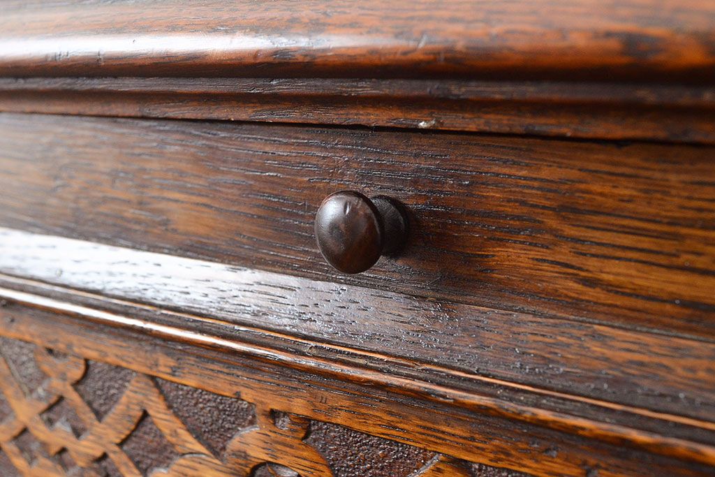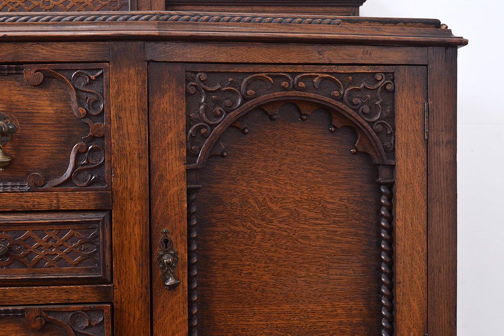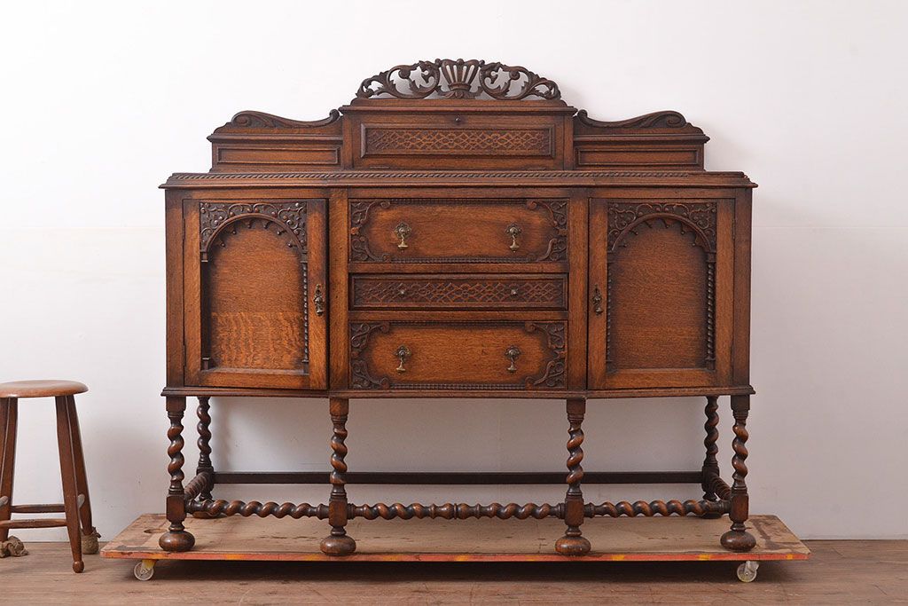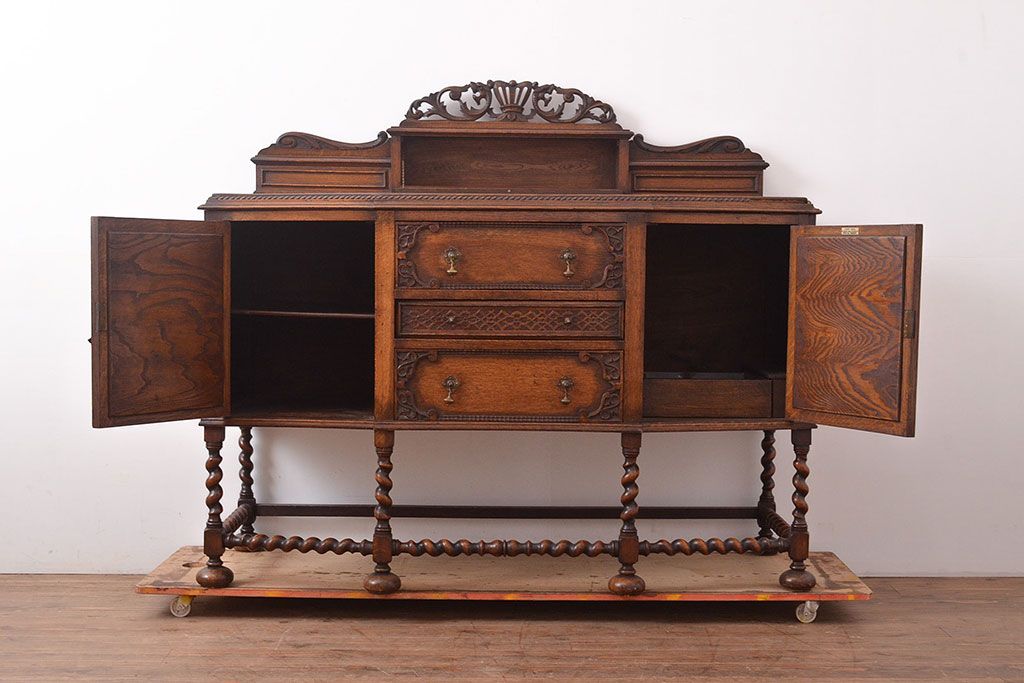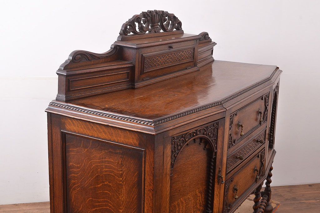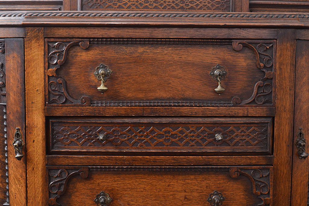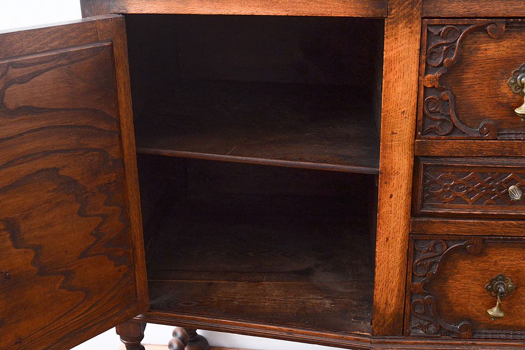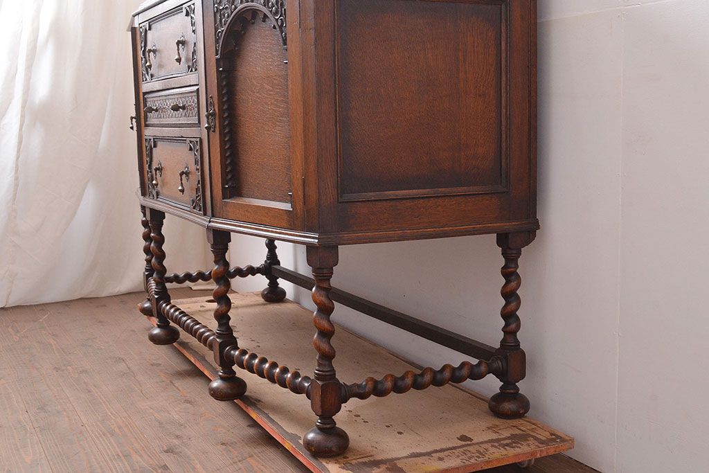 イギリスアンティーク 重厚感のある佇まいが魅力的なオーク材製のサイドボード(キャビネット、収納棚)(R-047318)