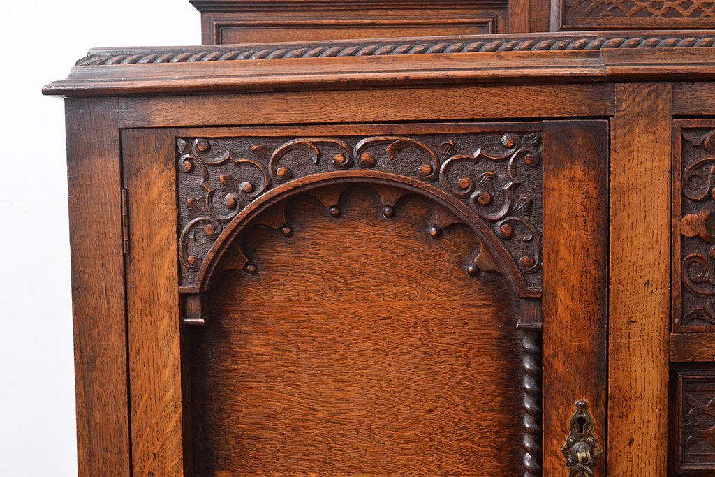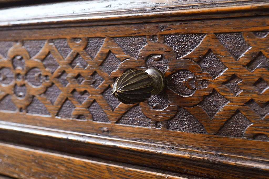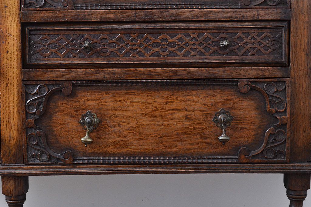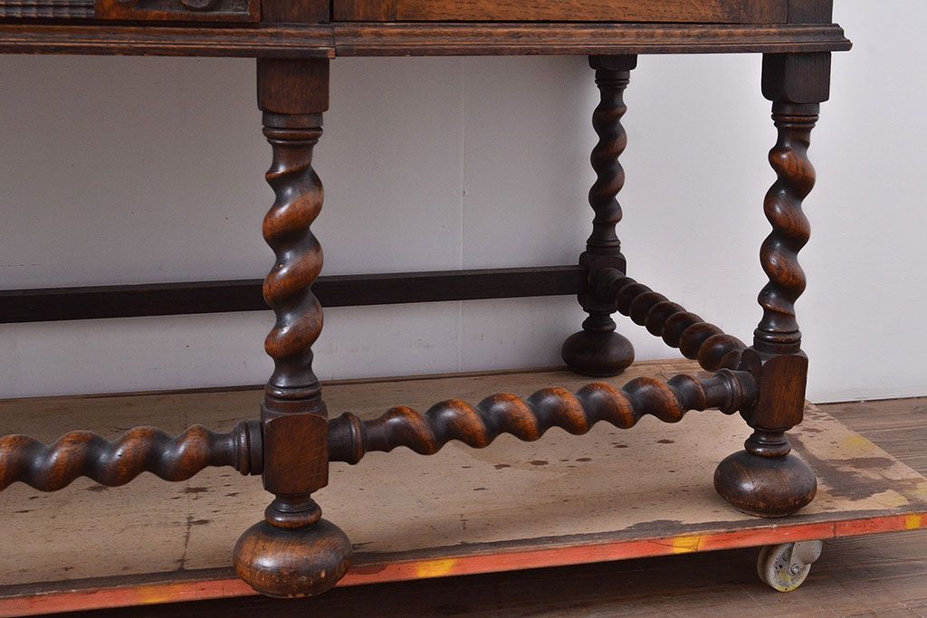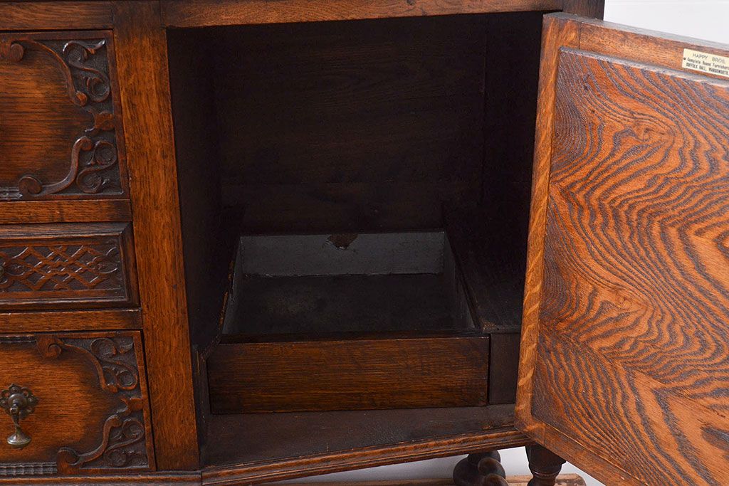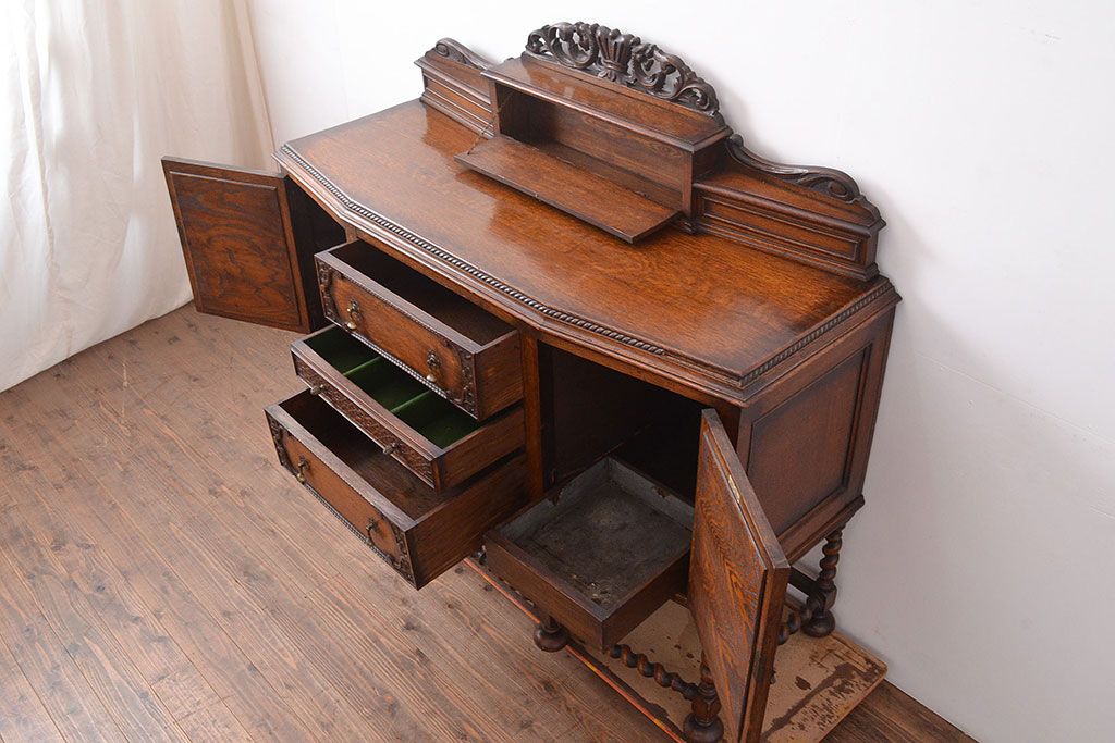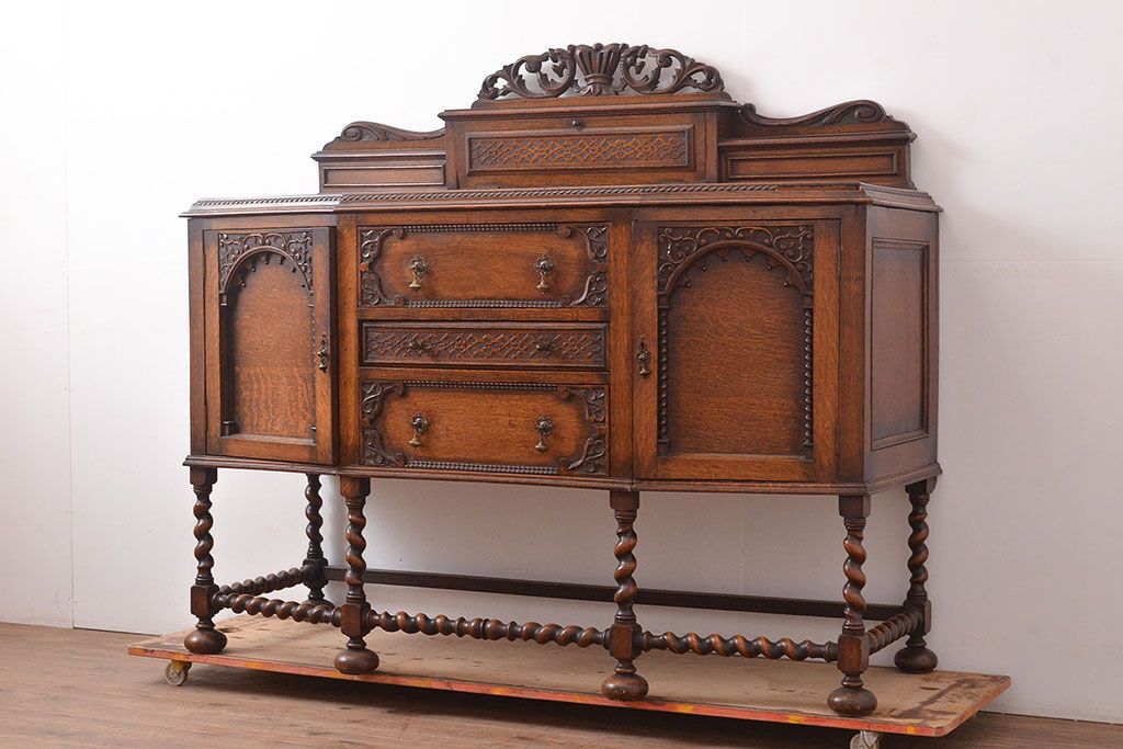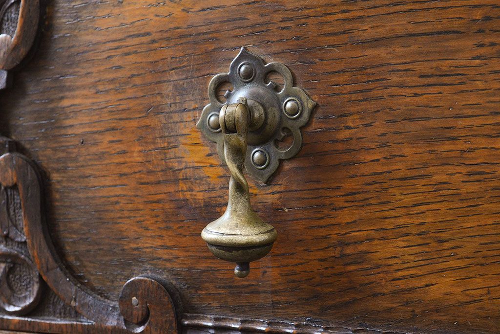 イギリスアンティーク 重厚感のある佇まいが魅力的なオーク材製のサイドボード(キャビネット、収納棚)(R-047318)