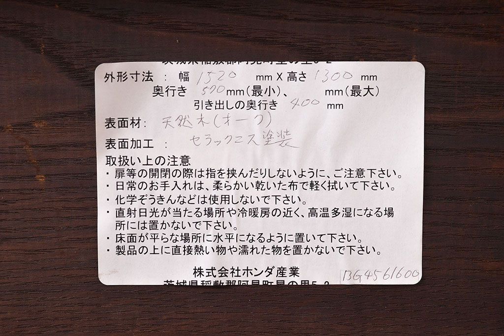 幅:1,520㎜ 奥行:570㎜ 高さ:1,300㎜