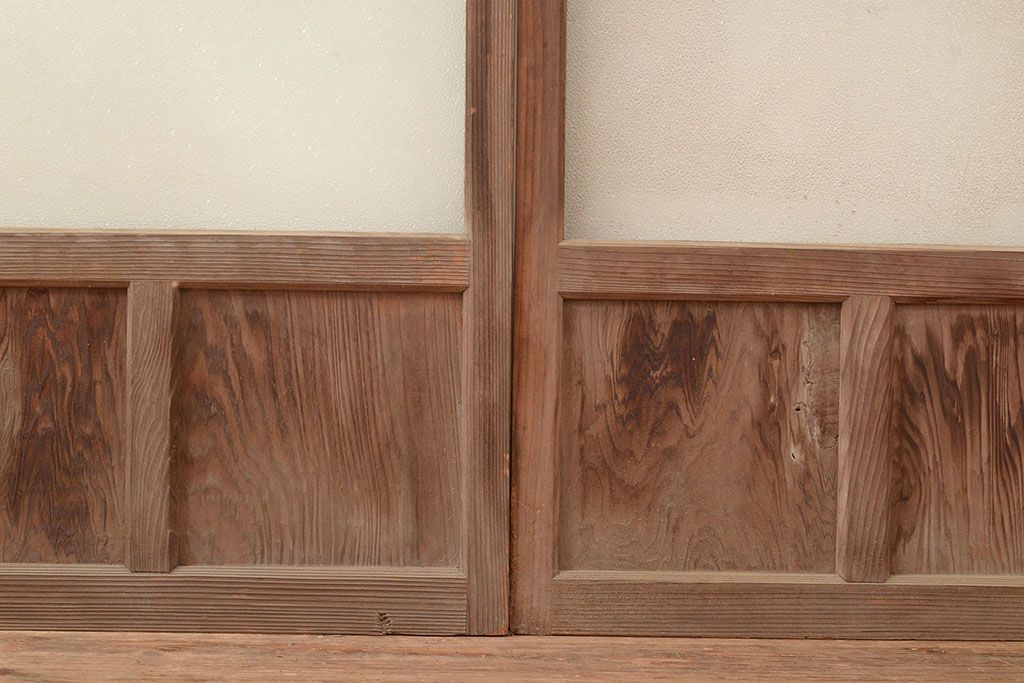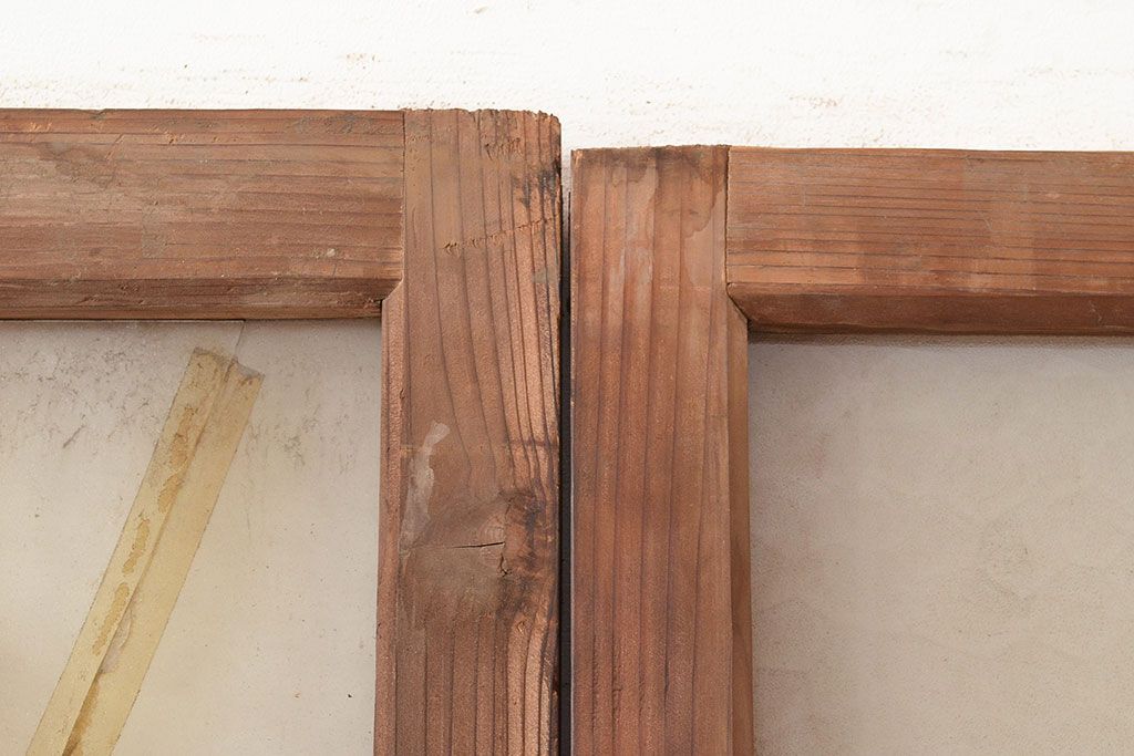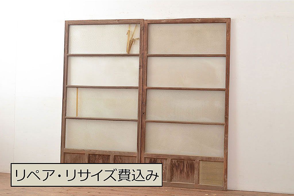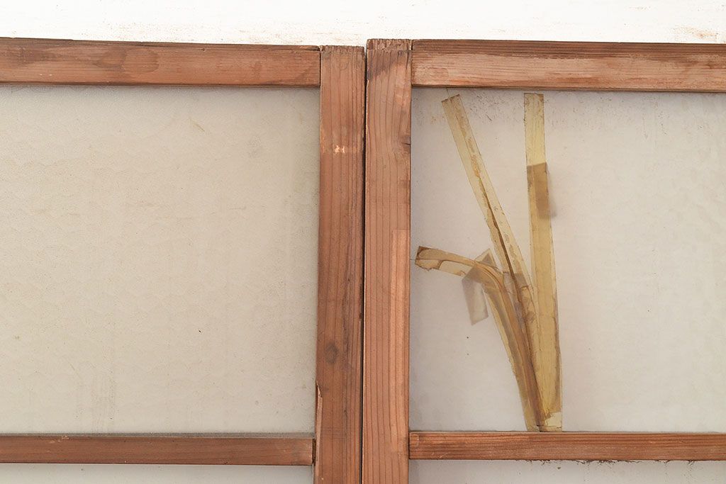 ラフジュ工房> ドア・建具> 引き戸 > 和製アンティーク ダイヤガラス・レトロガラス ノスタルジックな雰囲気が素敵なガラス戸2枚セット(引き戸、建具)(R-048122)