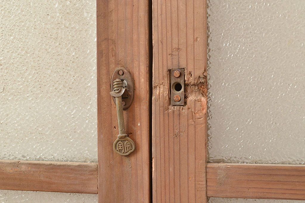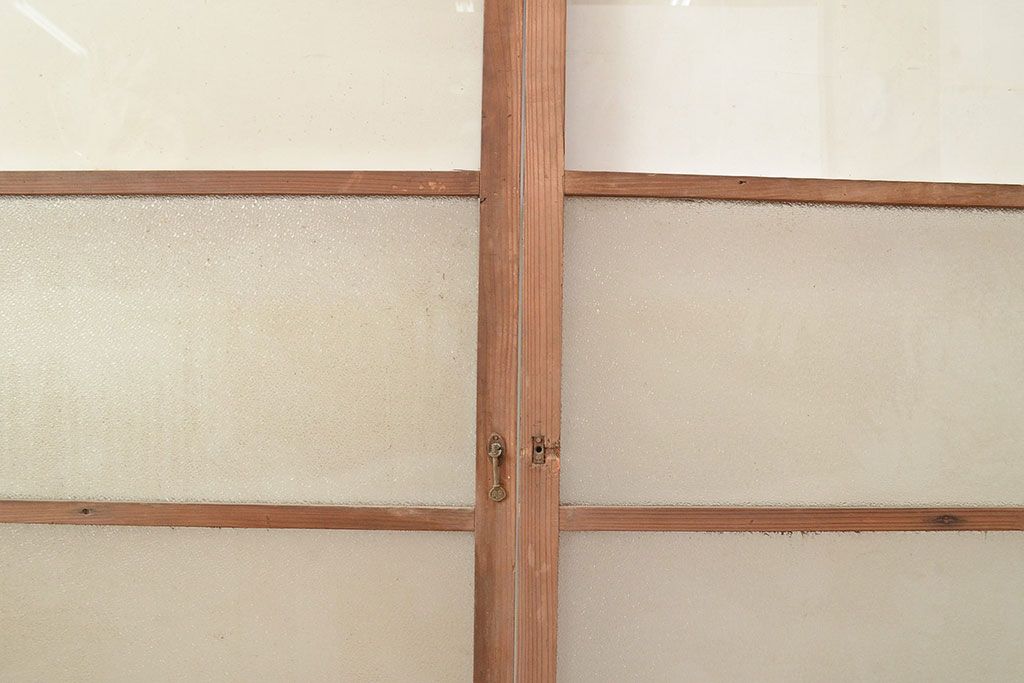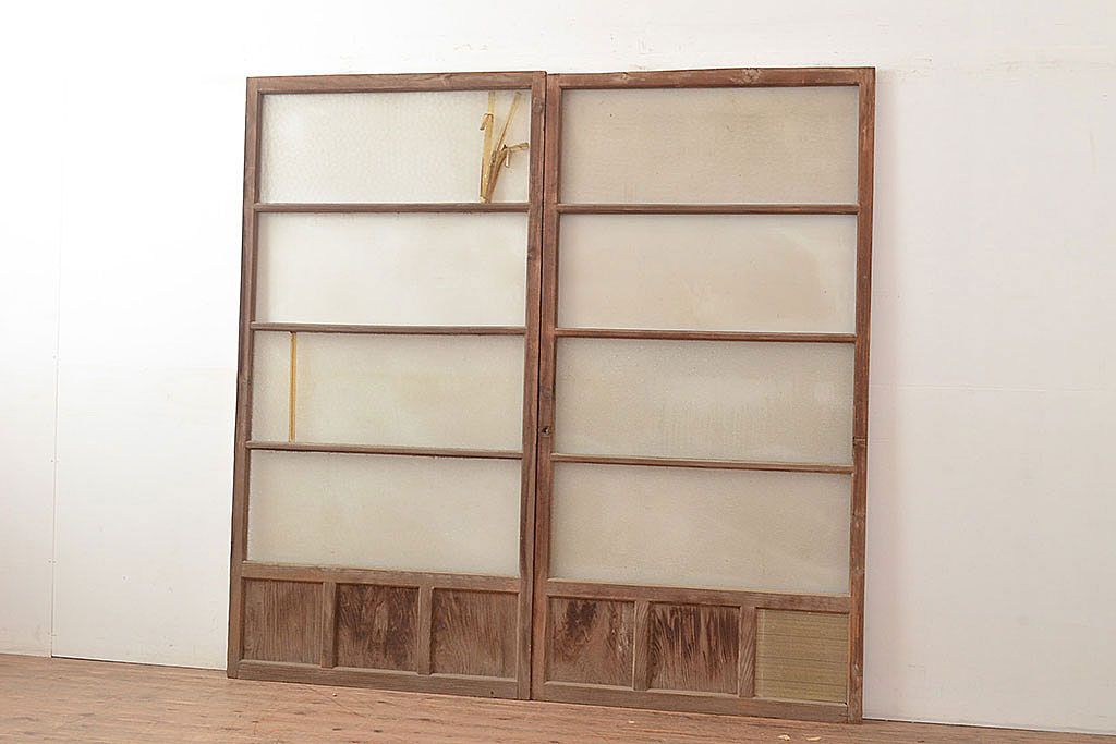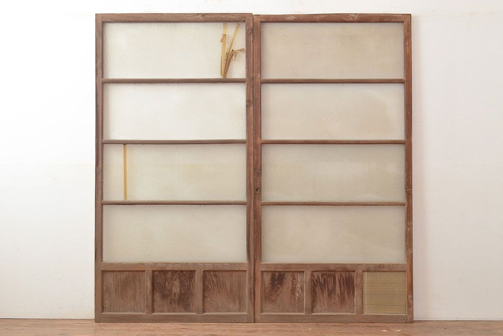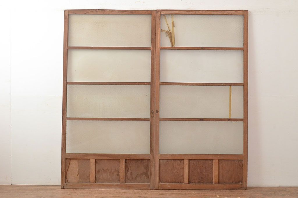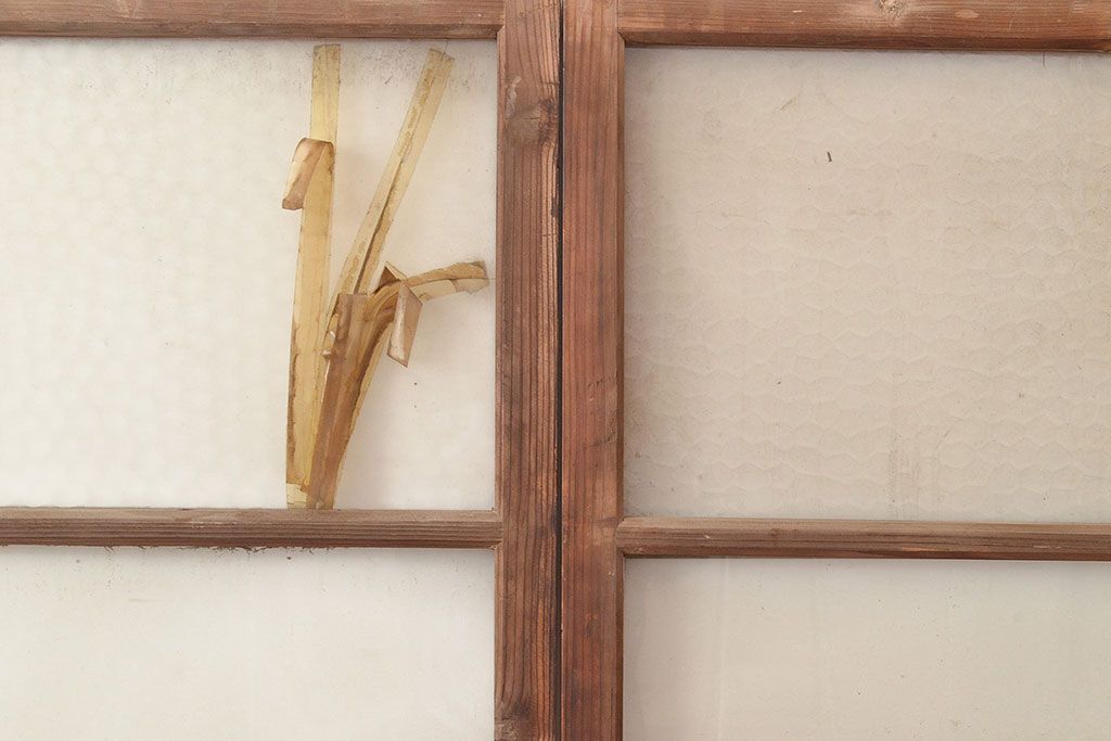 ラフジュ工房> ドア・建具> ガラス戸 > 和製アンティーク ダイヤガラス・レトロガラス ノスタルジックな雰囲気が素敵なガラス戸2枚セット(引き戸、建具)(R-048122)