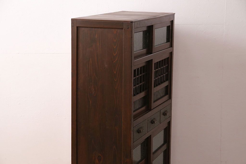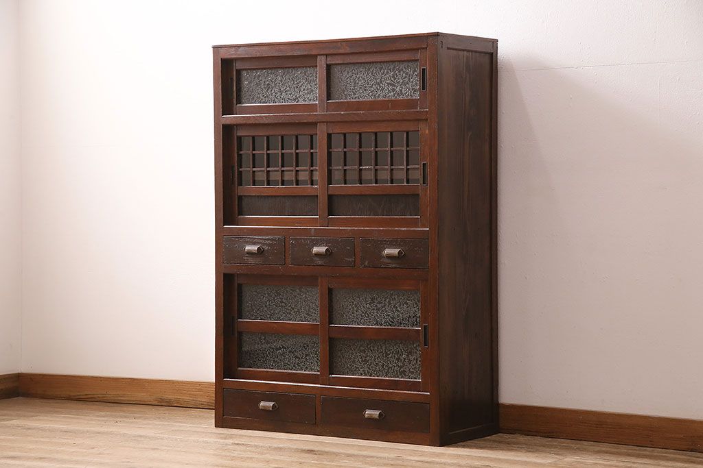 ◆下段引き戸:結霜ガラスへ変更(R-030540参考)。横桟はそのまま残して仕上げ。