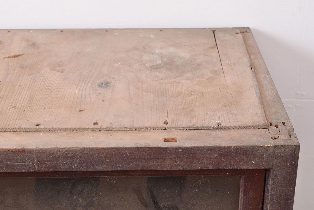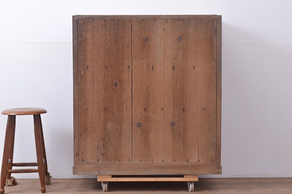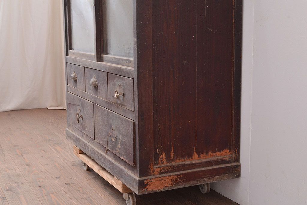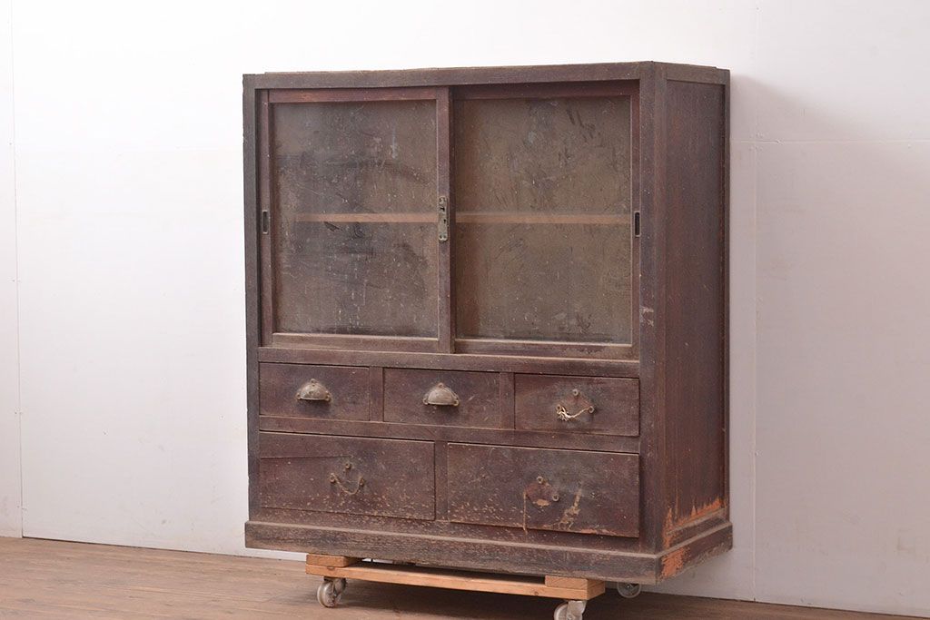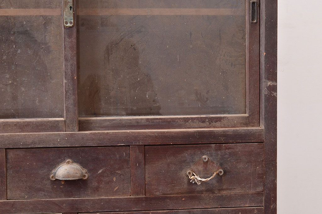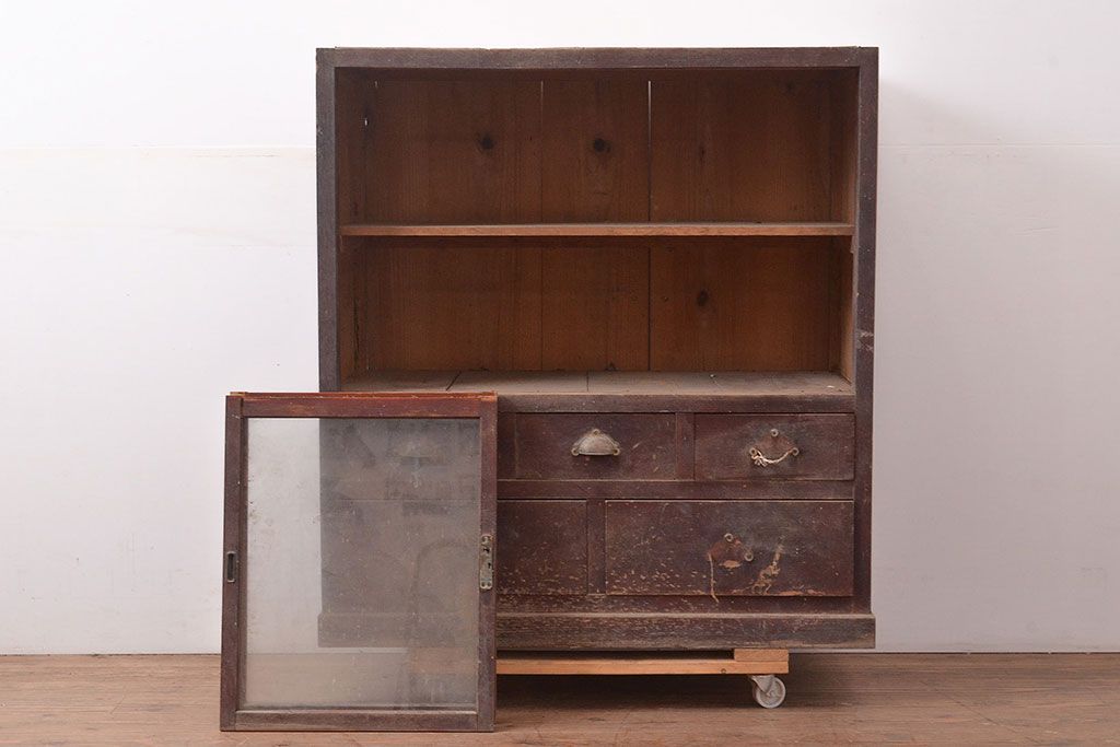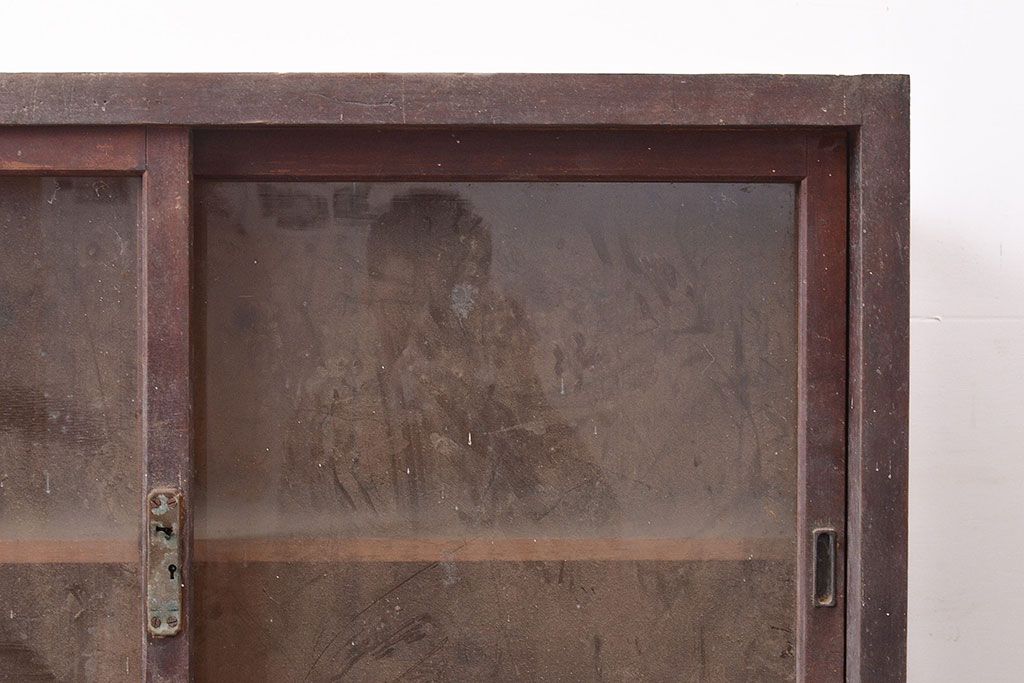 和製アンティーク 使い勝手の良いサイズが魅力的なレトロなガラス戸棚(収納棚、キャビネット)(R-047319)