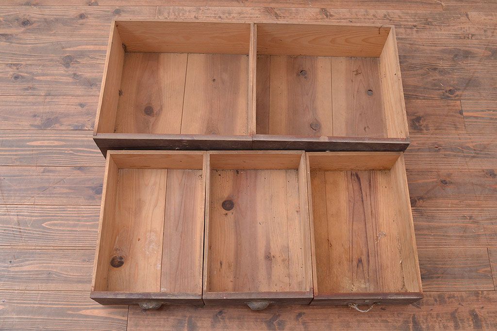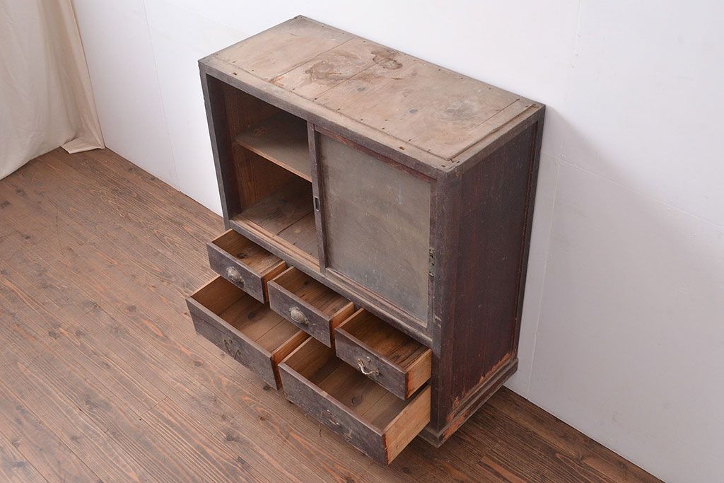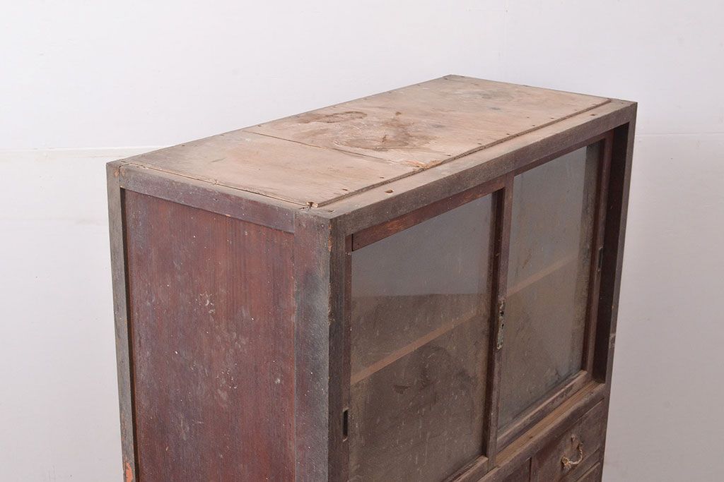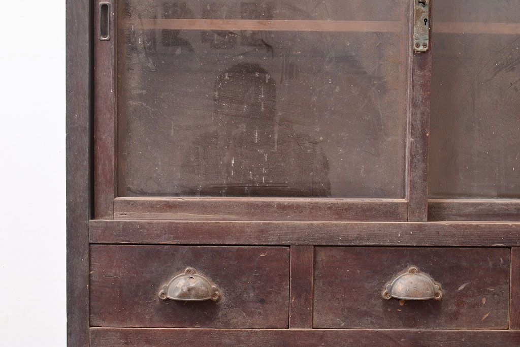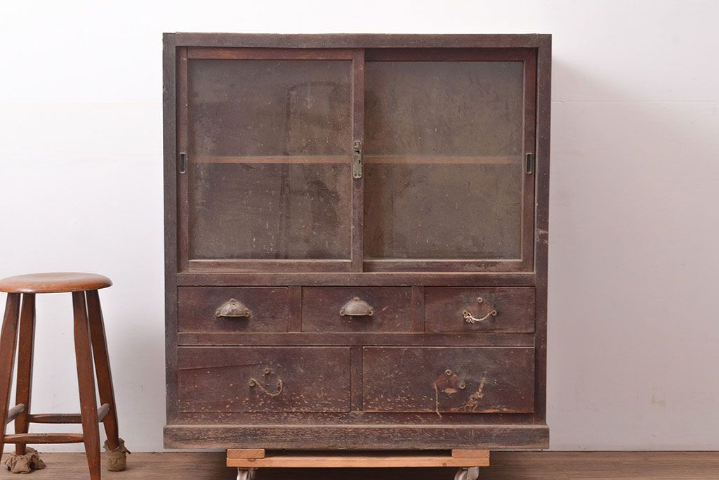 和製アンティーク 使い勝手の良いサイズが魅力的なレトロなガラス戸棚(収納棚、キャビネット)(R-047319)です。