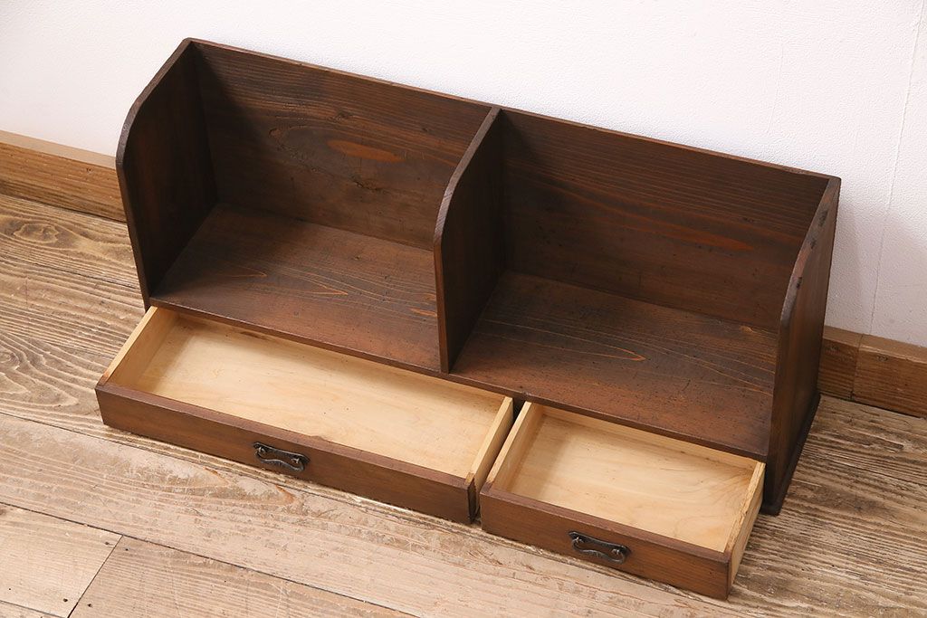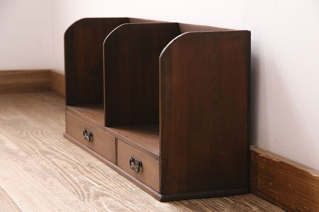 小物収納・トランク> 本立て > アンティーク雑貨 大正期 どこか懐かしさが漂うレトロな引き出し付きのブックスタンド(本立て)(R-048370)