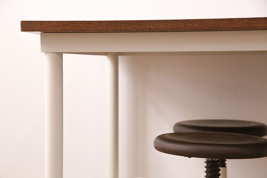 セミオーダー家具実績 > 格納スツール4脚付きテーブルをリペア&カスタム!可動部の調整を行い、アンティークホワイトのペイント仕上げ。(ダイニングテーブル、作業台、椅子)