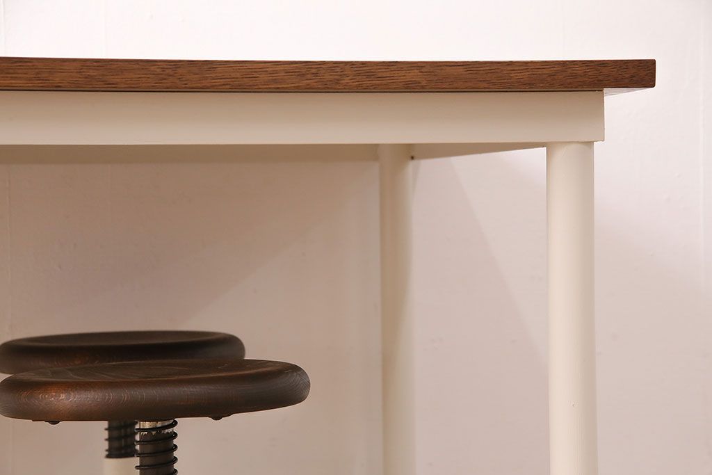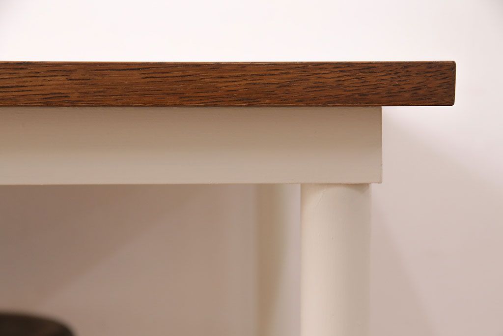 テーブル> 作業台 > 格納スツール4脚付きテーブルをリペア&カスタム!可動部の調整を行い、アンティークホワイトのペイント仕上げ。(ダイニングテーブル、作業台、椅子)