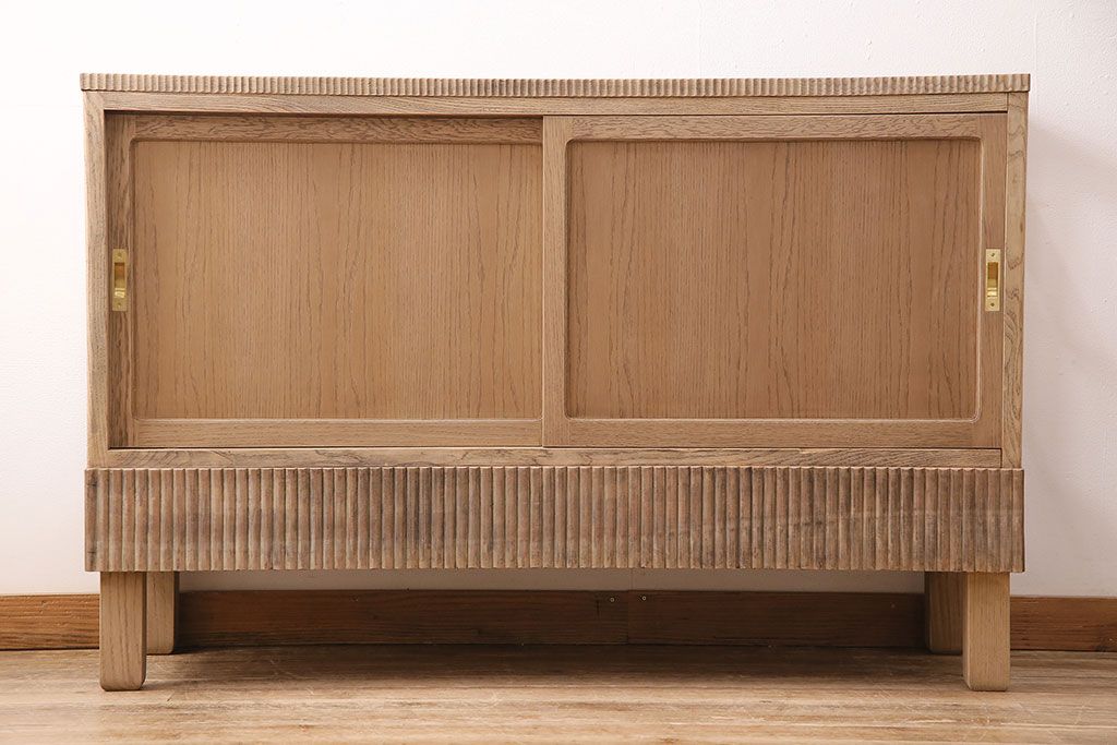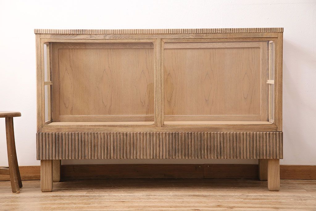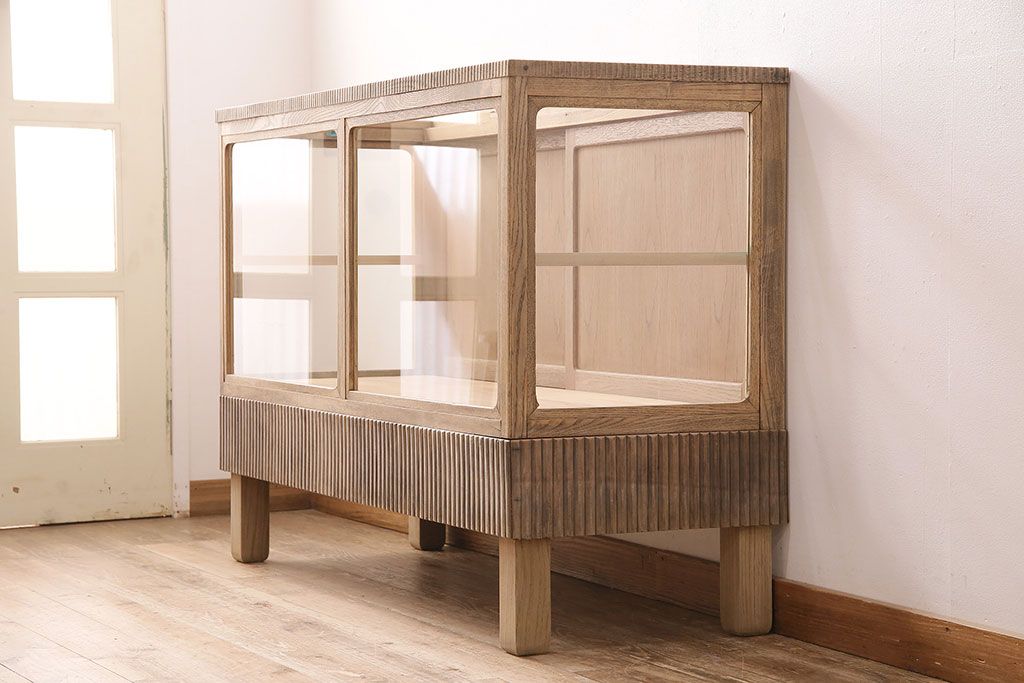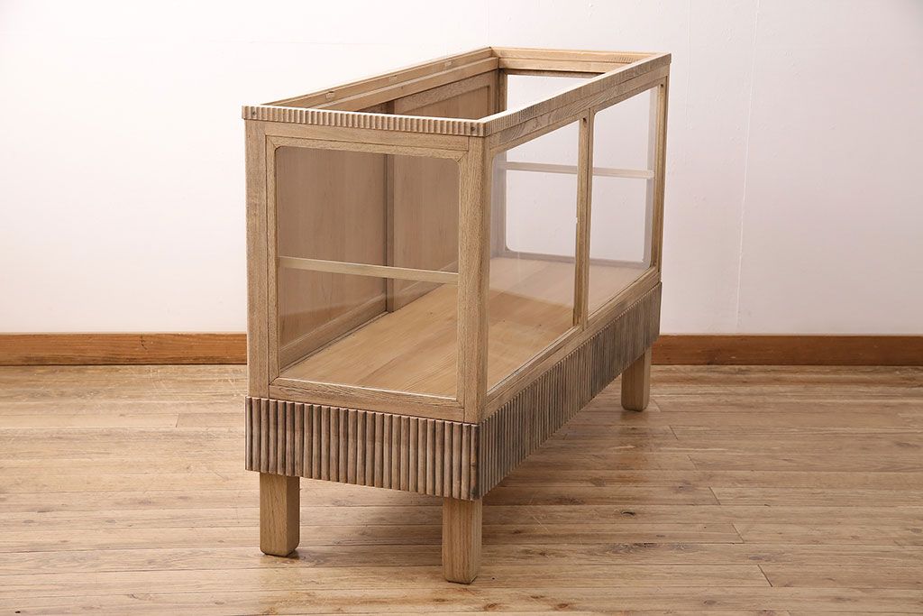 ガラスケース・ショーケース> カウンターショーケース > 大正期のガラスケースをリペア&カスタム!背面の欠損した建具を製作。既存の脚を撤去し、角脚を取り付け。真鍮製の引き手を取り付け。(ショーケース、陳列棚)