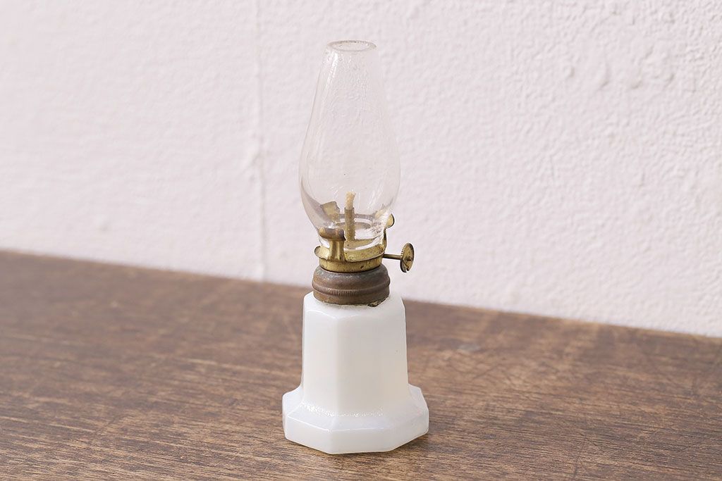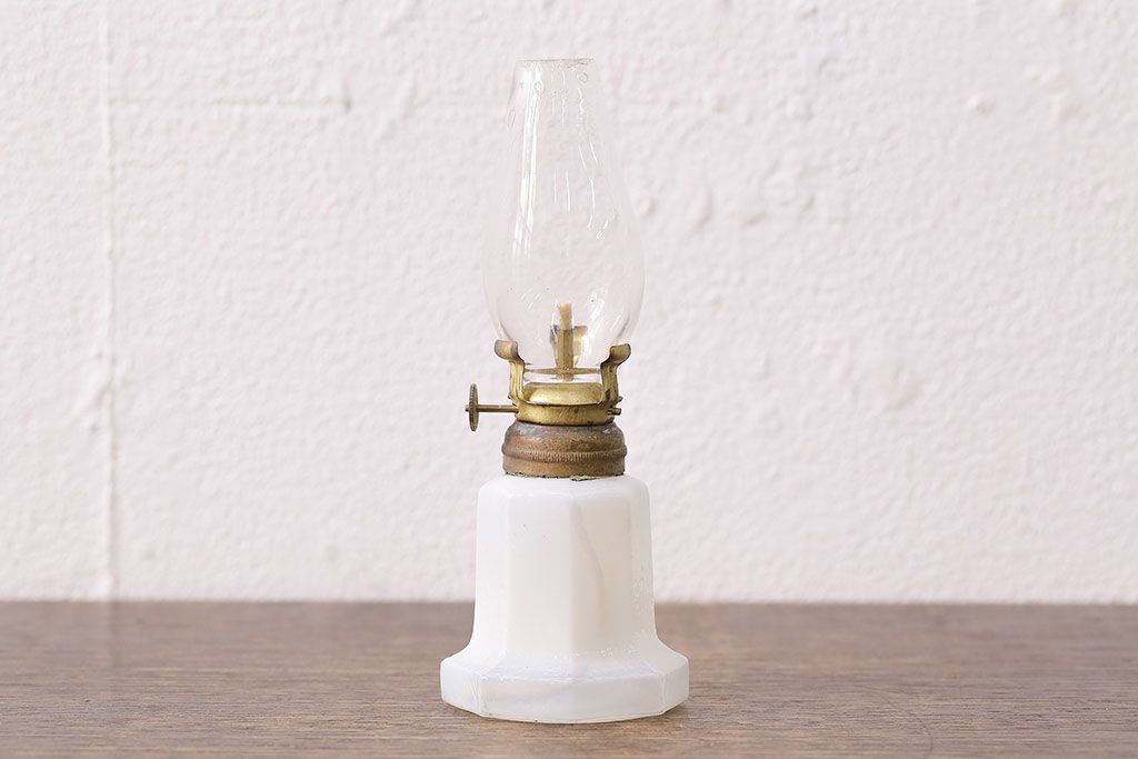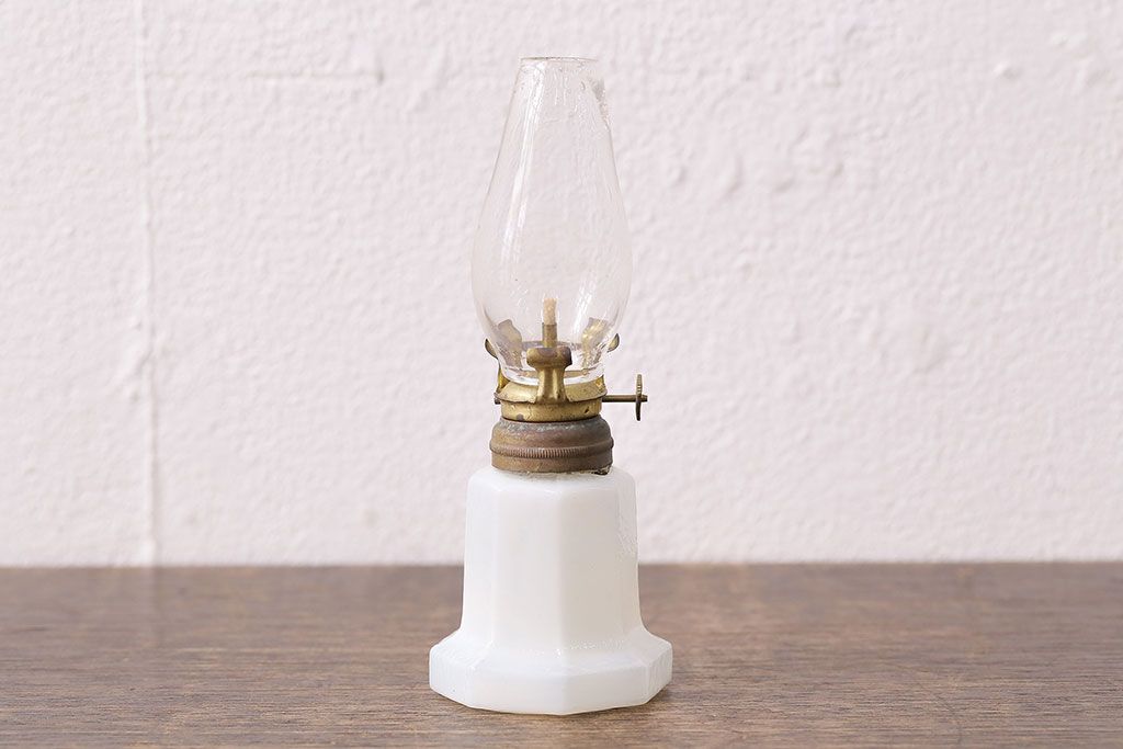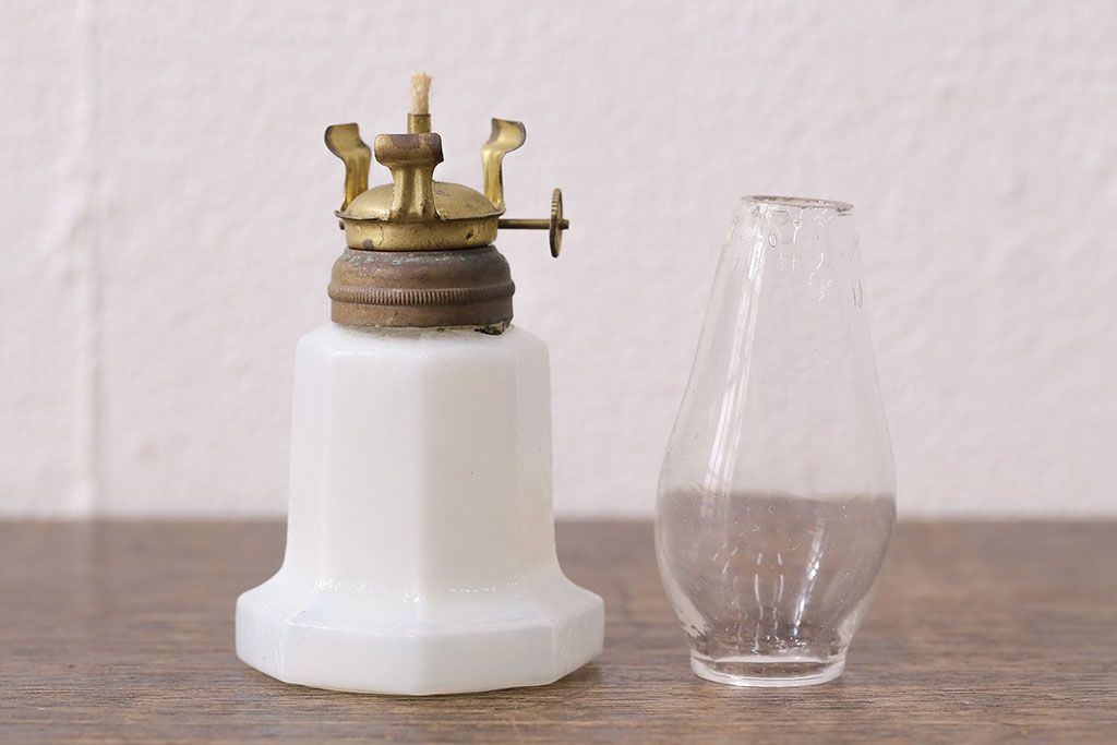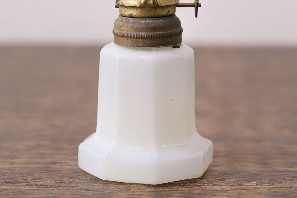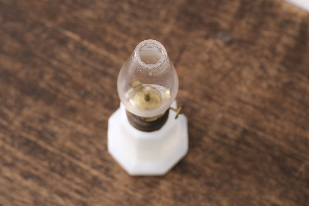 明治〜大正期 乳白八角台 豆ランプ(オイルランプ、油壷)(R-048420)