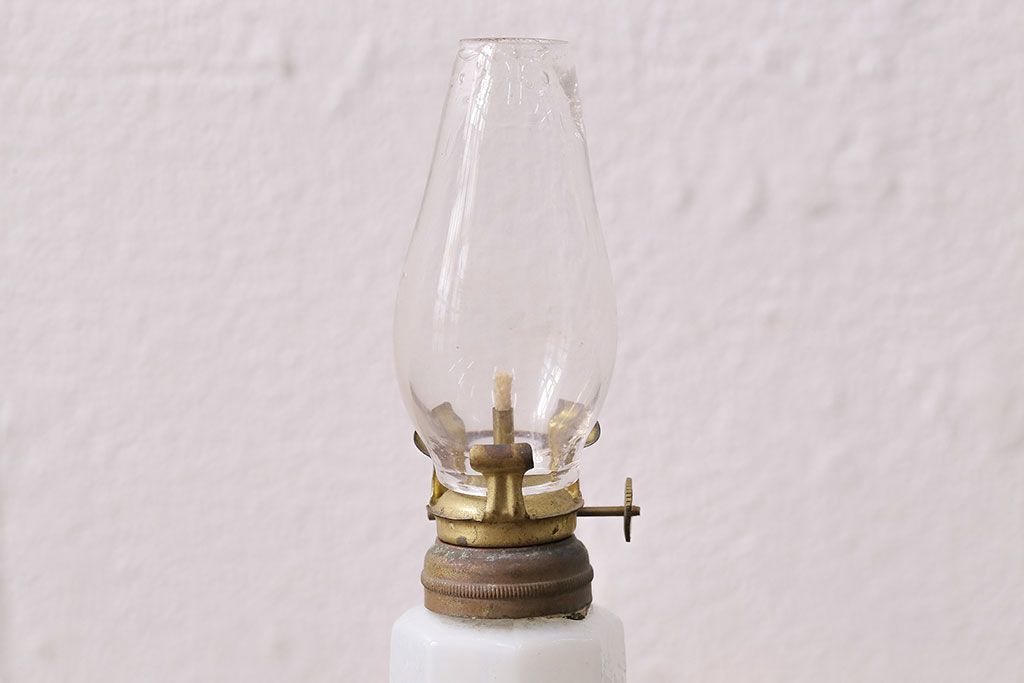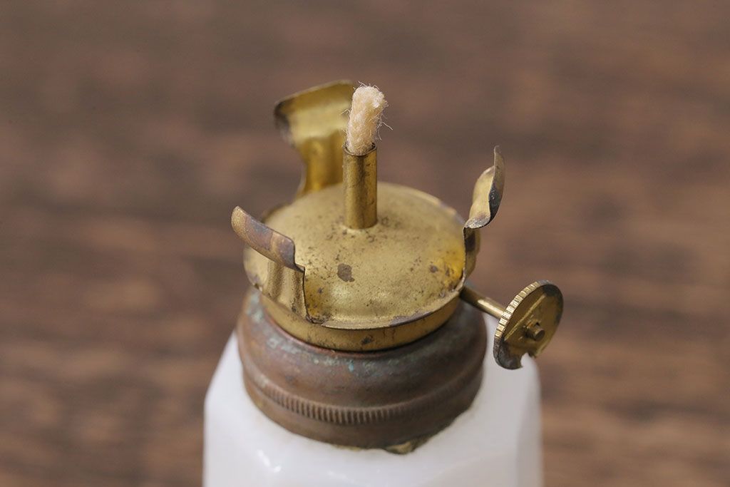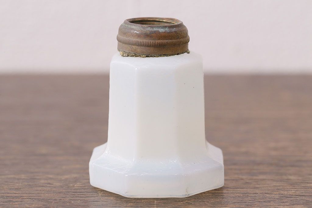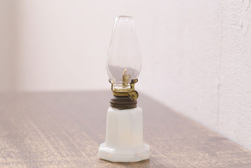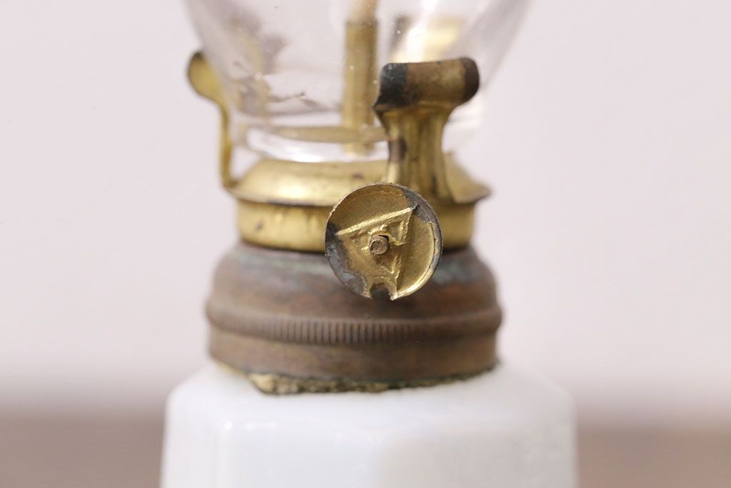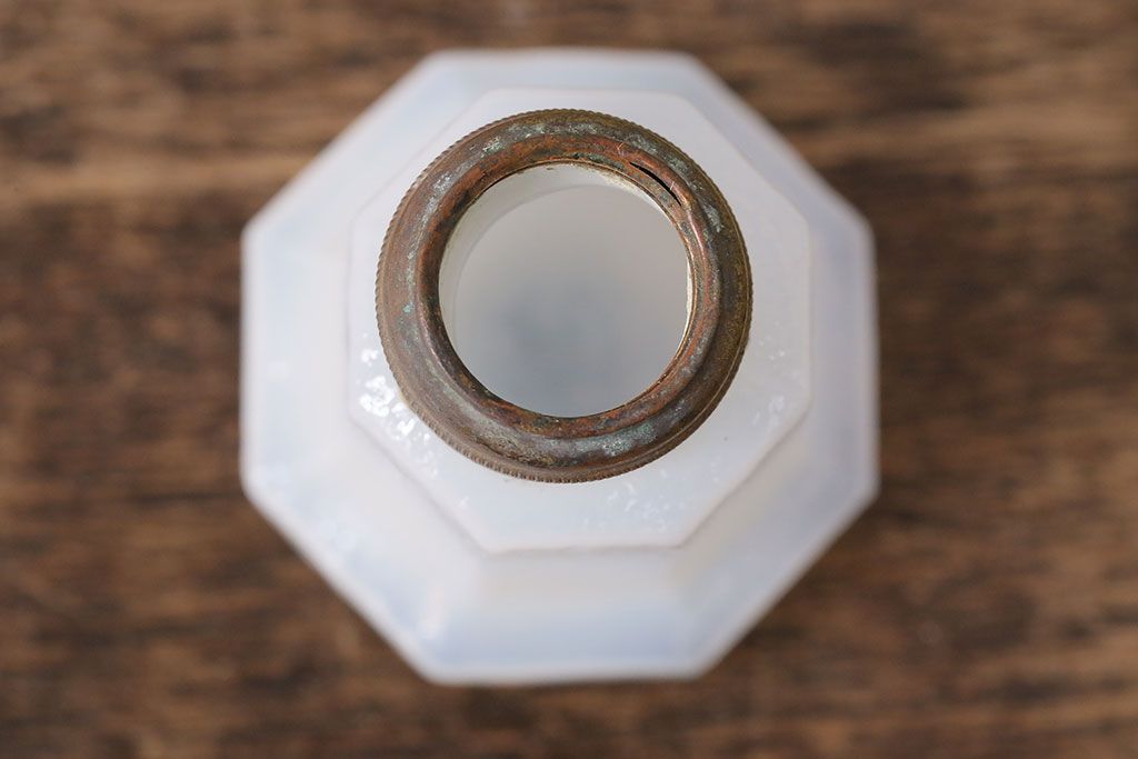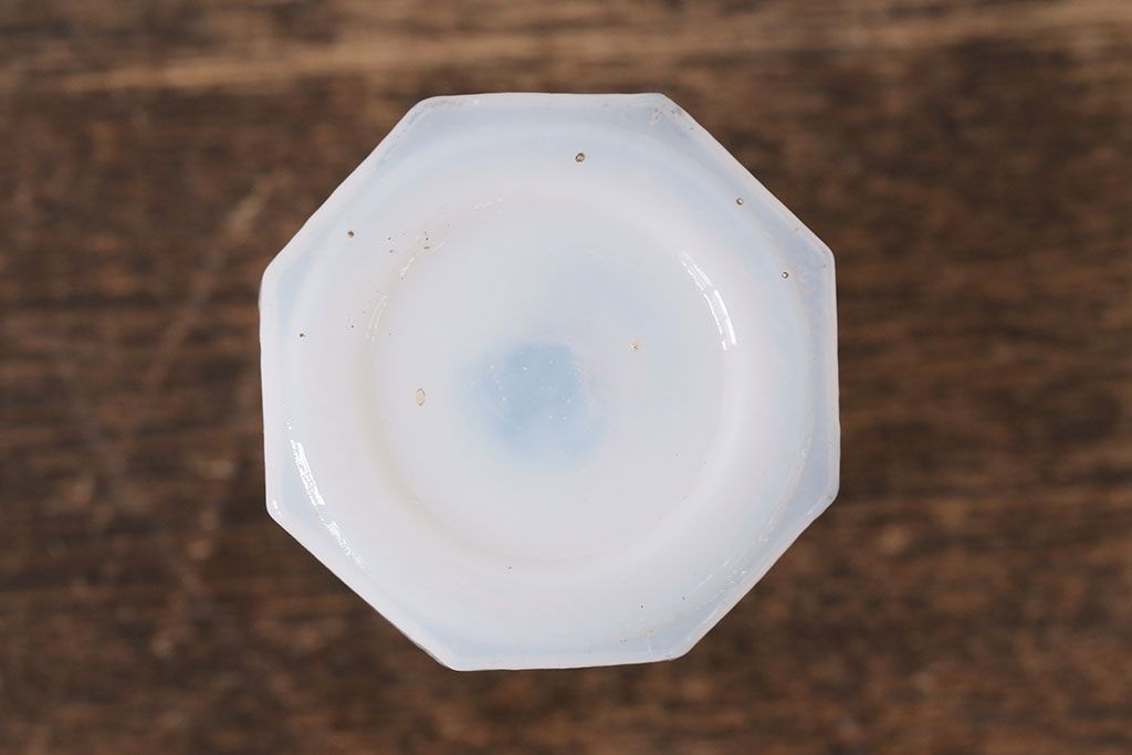 明治〜大正期 乳白八角台 豆ランプ(オイルランプ、油壷)(R-048420)