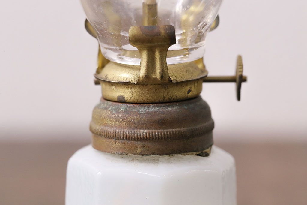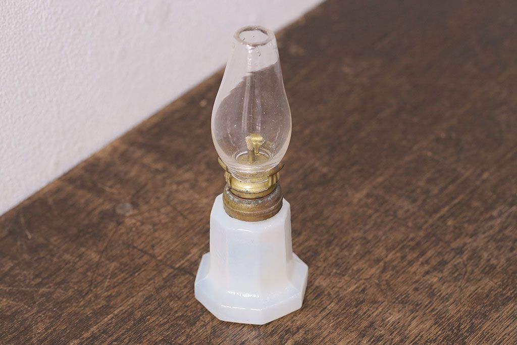 明治〜大正期 乳白八角台 豆ランプ(オイルランプ、油壷)(R-048420)です。