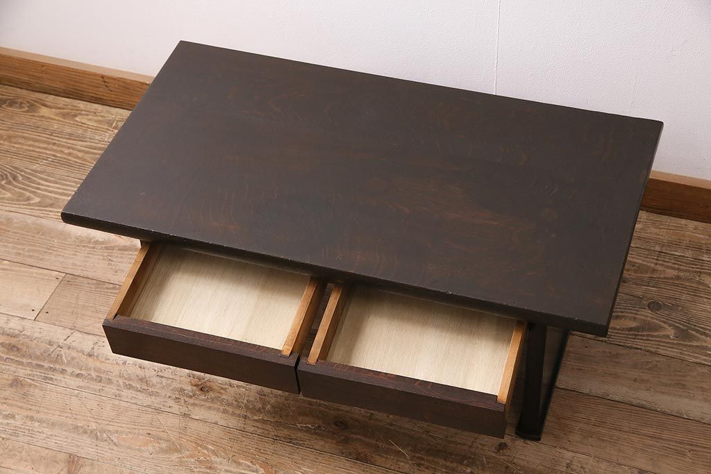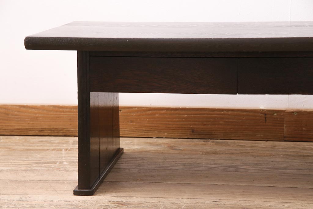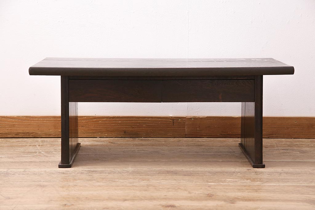 和製アンティーク 濃い木色が渋く格好良い!和モダンスタイルにおすすめなナラ材製の文机(ローテーブル、センターテーブル)(R-048449)