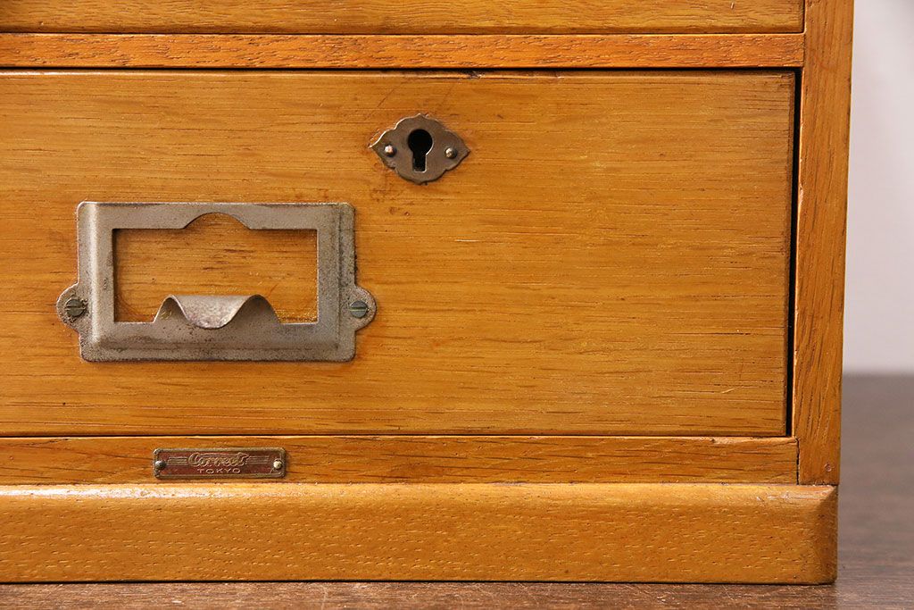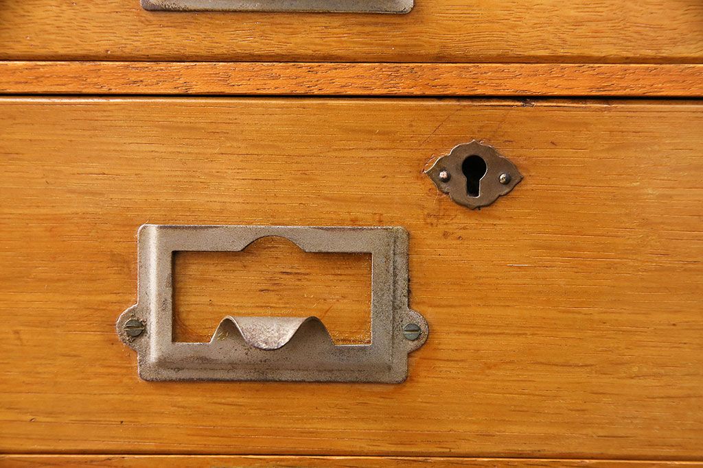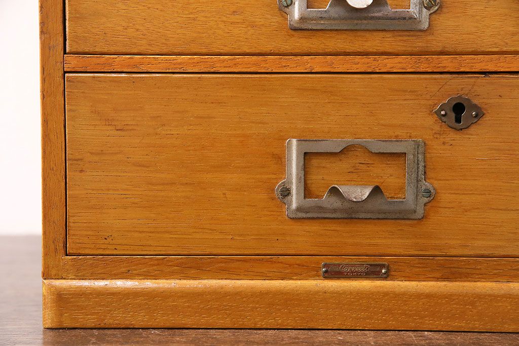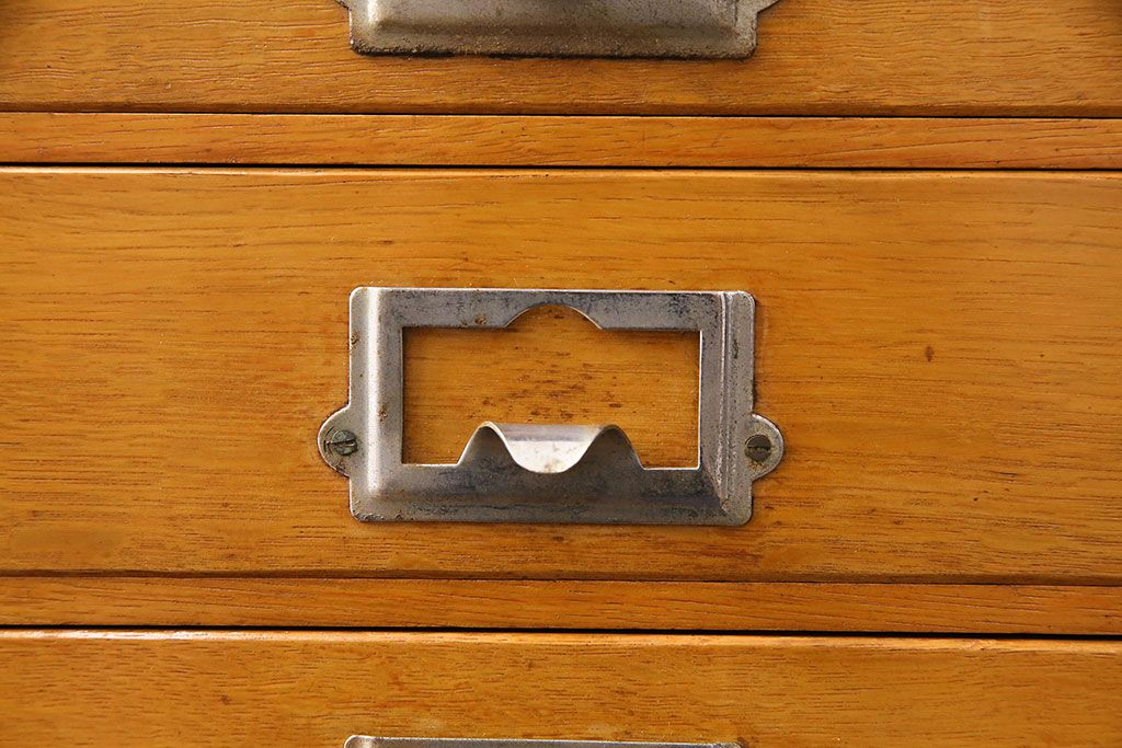 和製アンティーク ネームプレート付きが嬉しい、ナラ材製の小引き出し(引き出し、チェスト)(R-048427)