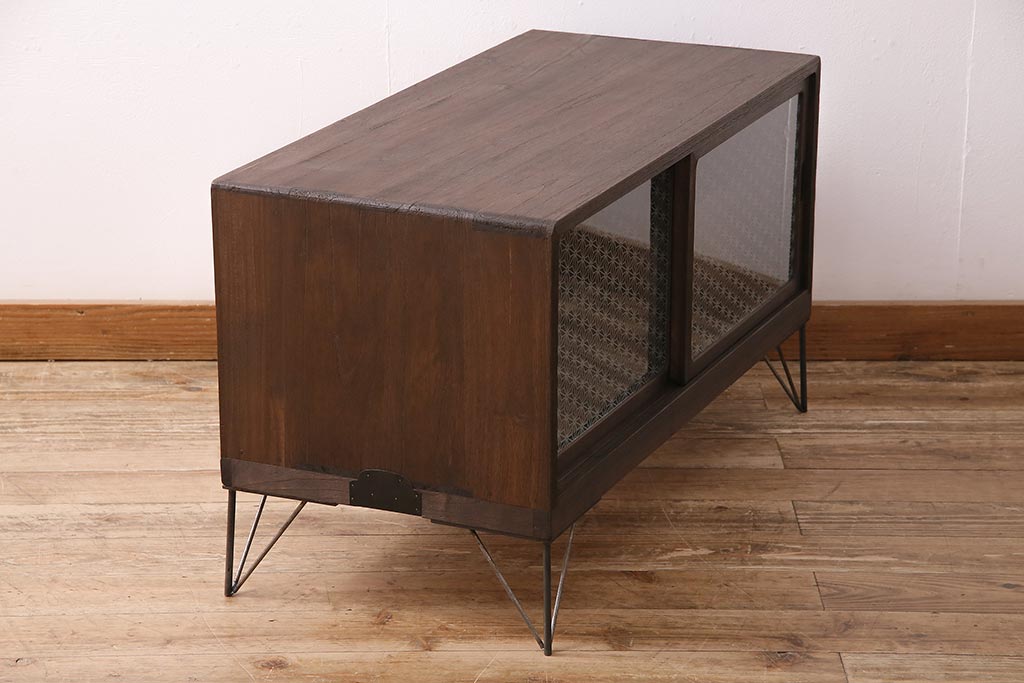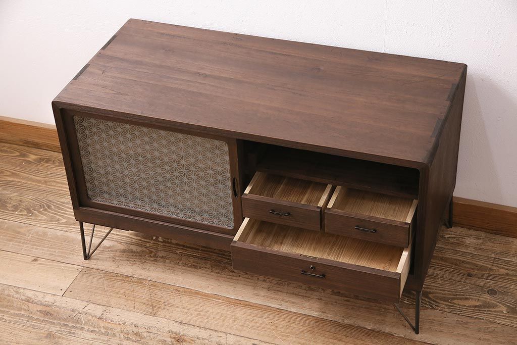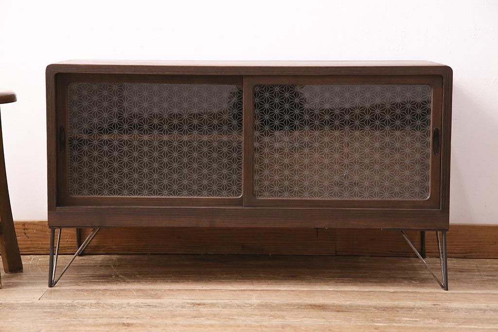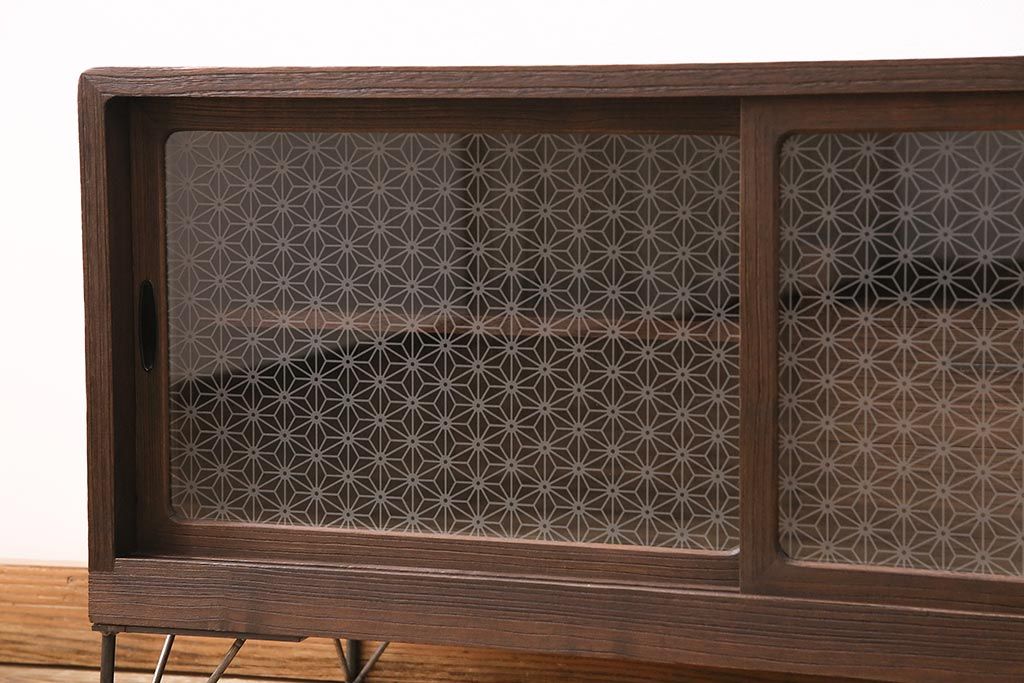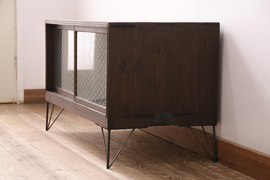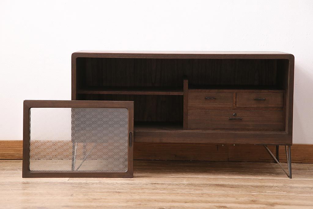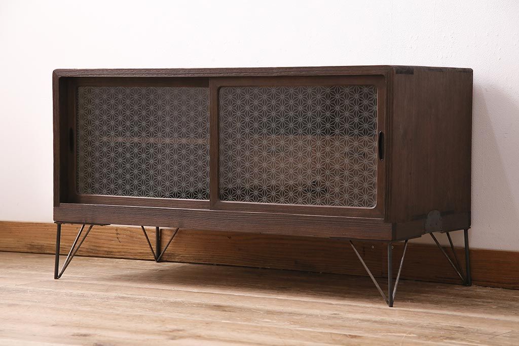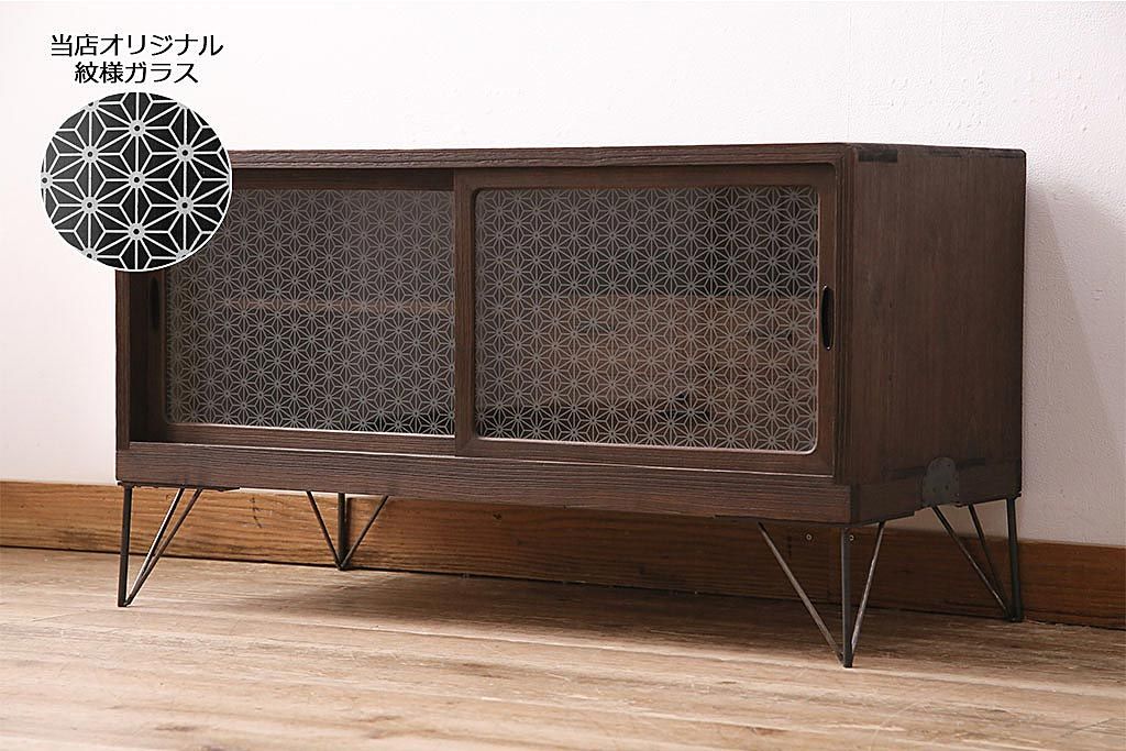 和製アンティーク 当店オリジナル模様のガラス入り!和の趣溢れる総桐材製の箪笥ローボード(戸棚、テレビ台、テレビボード、時代箪笥)(R-048430)