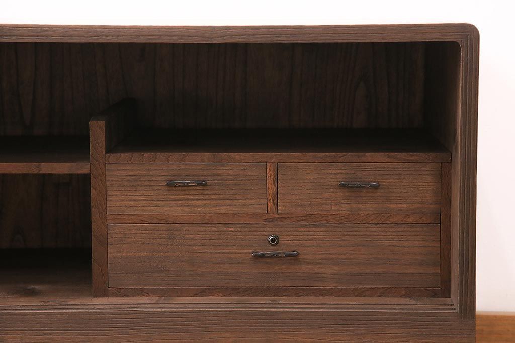 キャビネット・戸棚> テレビ台・ローボード > 和製アンティーク 当店オリジナル模様のガラス入り!和の趣溢れる総桐材製の箪笥ローボード(戸棚、テレビ台、テレビボード、時代箪笥)(R-048430)