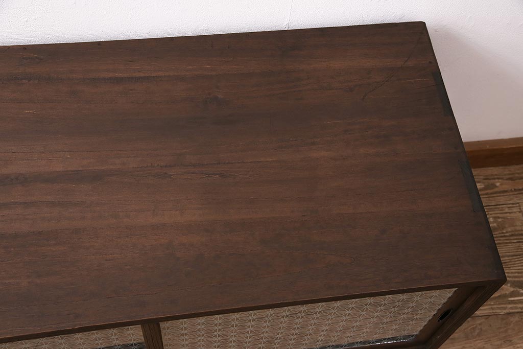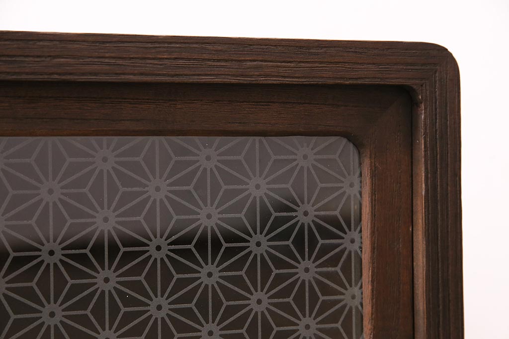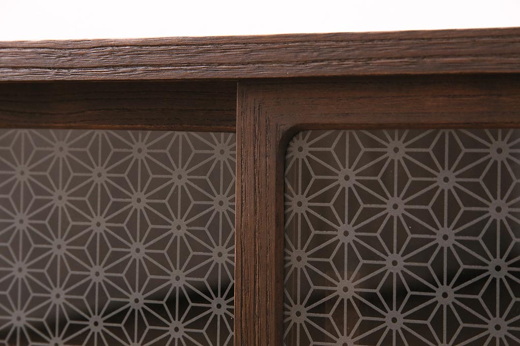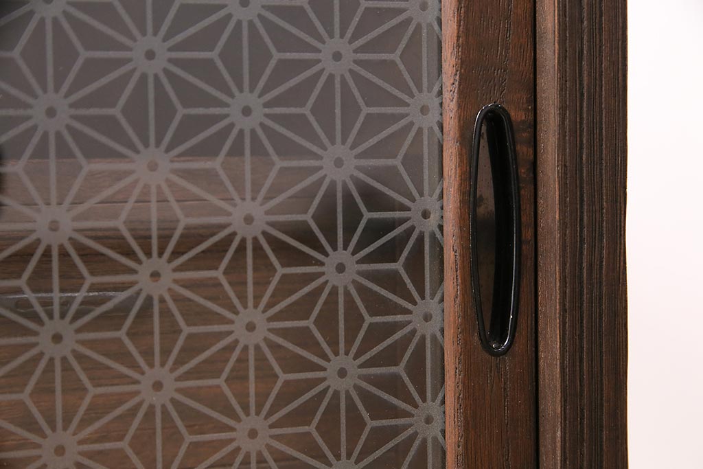和箪笥 > 和製アンティーク 当店オリジナル模様のガラス入り!和の趣溢れる総桐材製の箪笥ローボード(戸棚、テレビ台、テレビボード、時代箪笥)(R-048430)