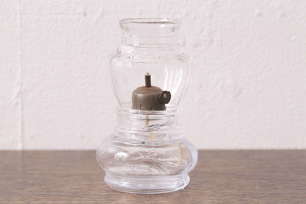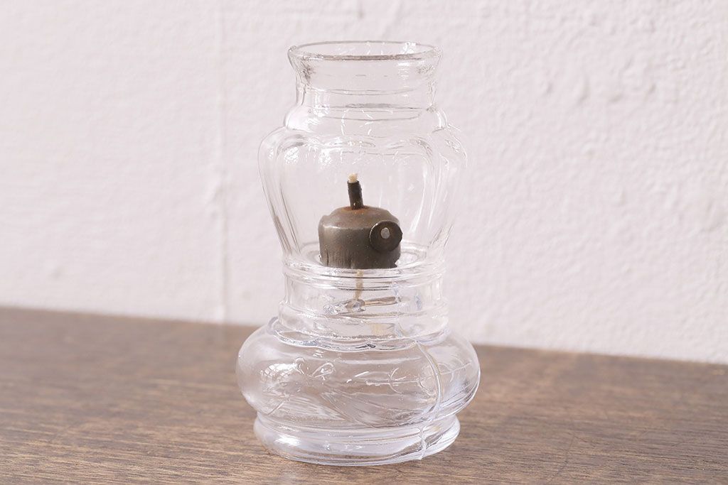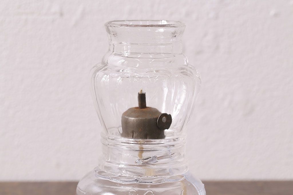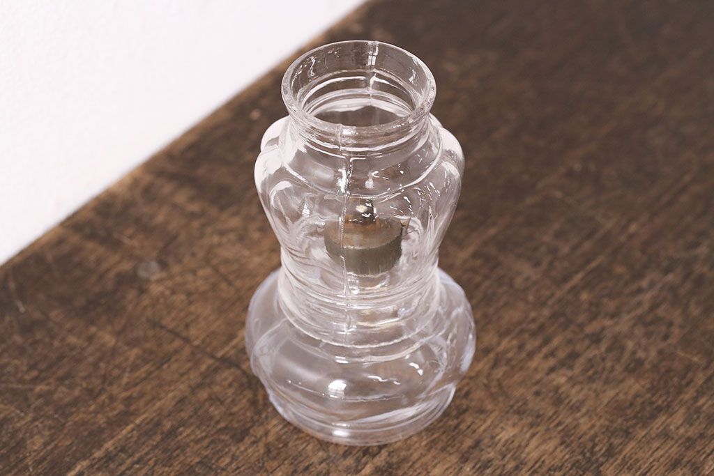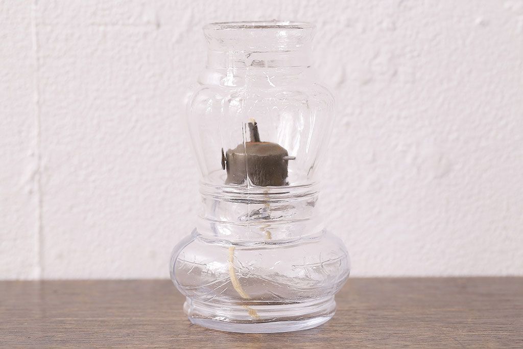昭和初期 古いガラスの豆ランプ(オイルランプ、火屋、油壷)(R-048422)