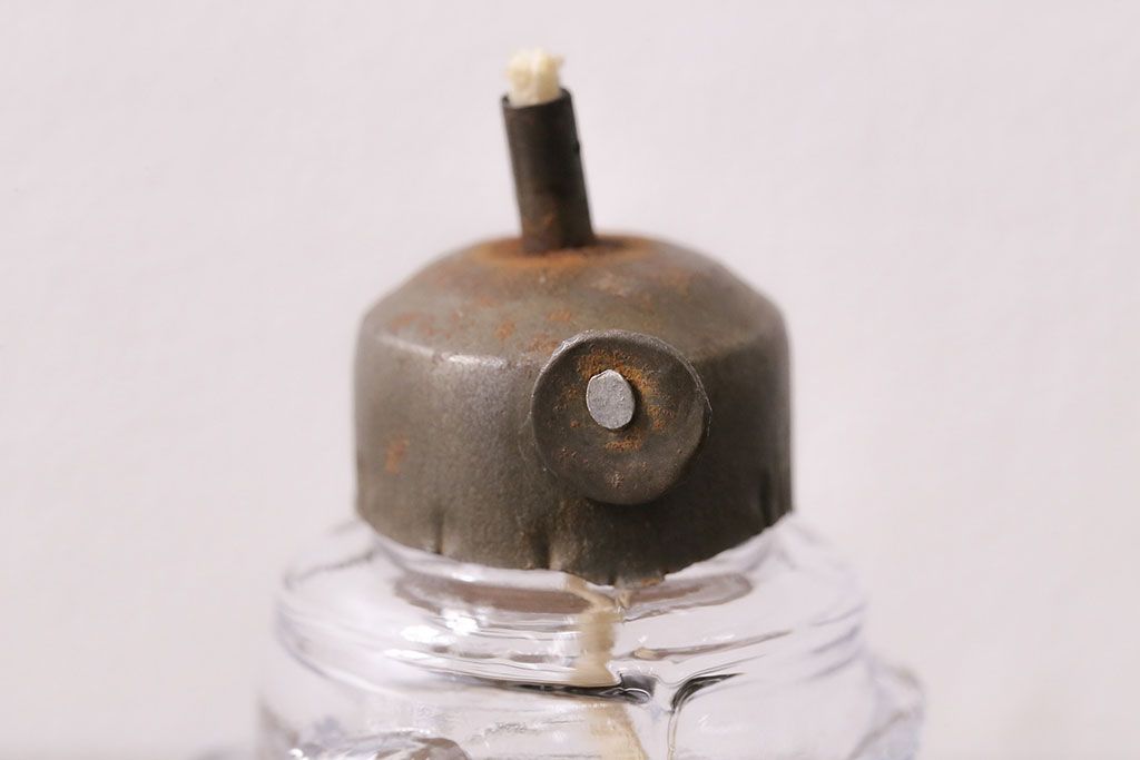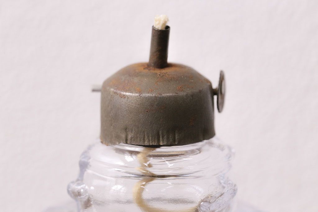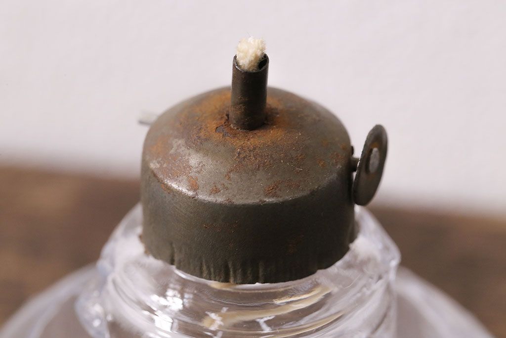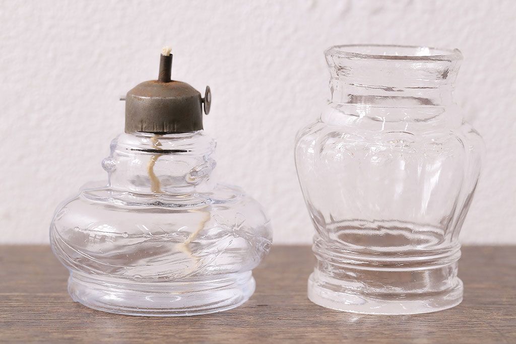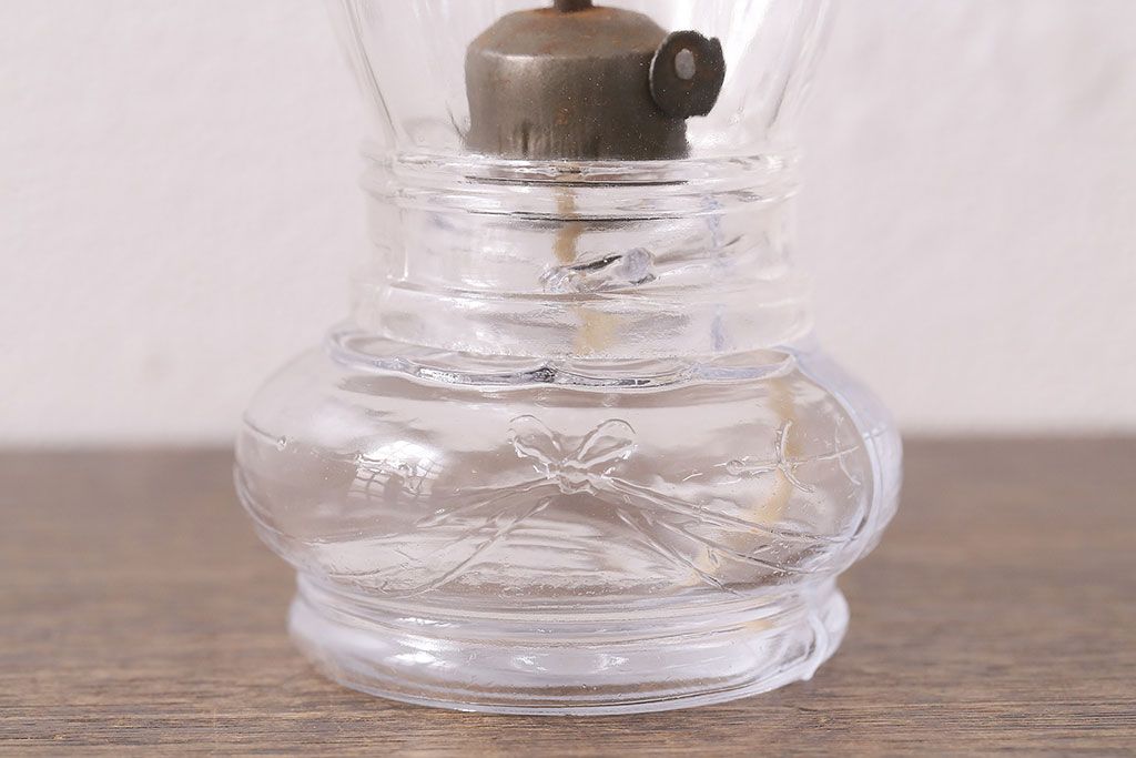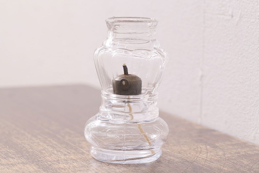 昭和初期 古いガラスの豆ランプ(オイルランプ、火屋、油壷)(R-048422)