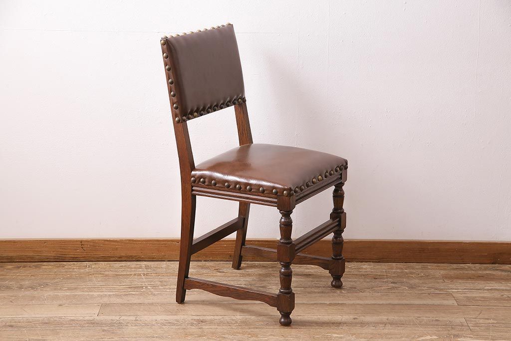 イギリスビンテージ 堂々とした風格を感じるオーク材製のチェア(椅子、ダイニングチェア)(R-048435)