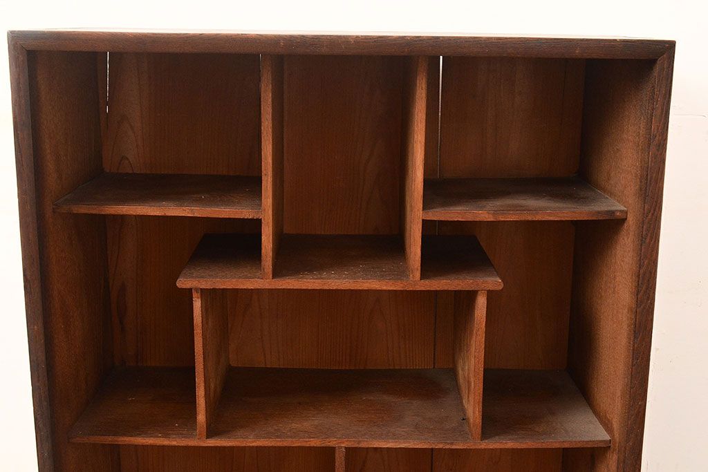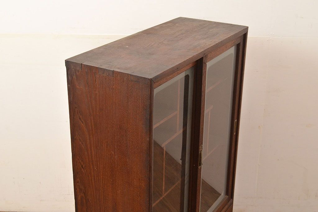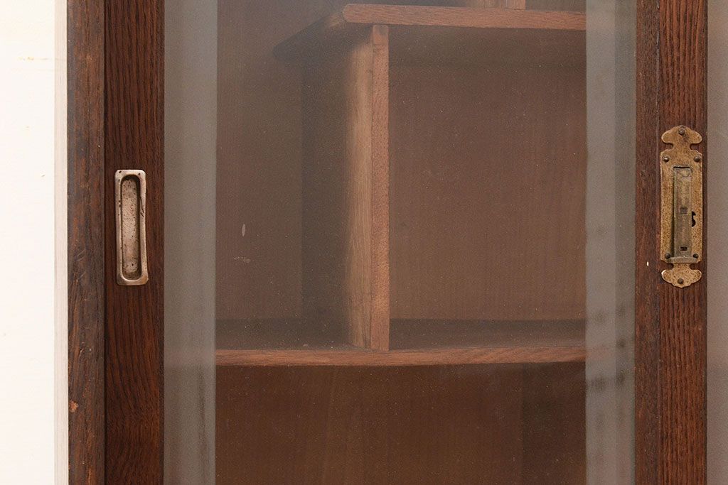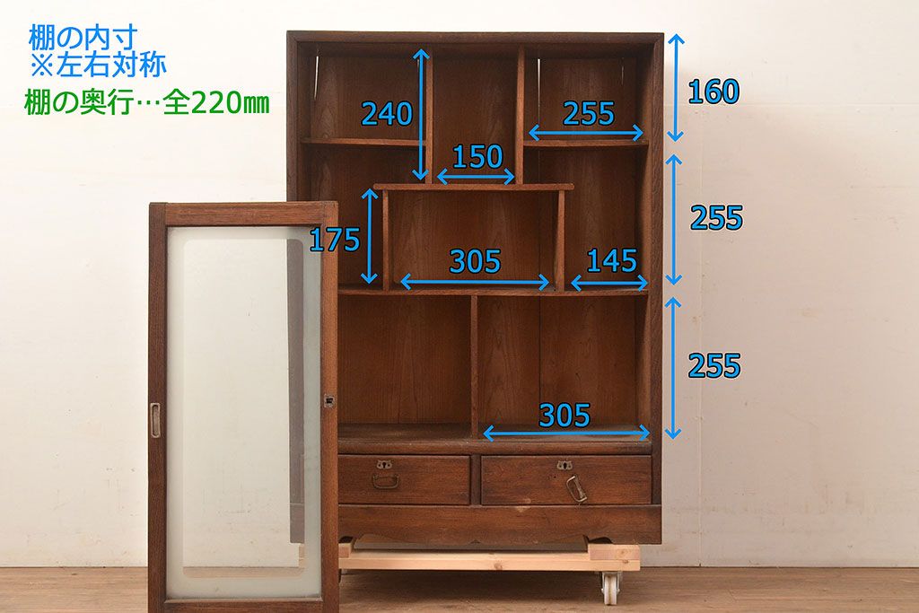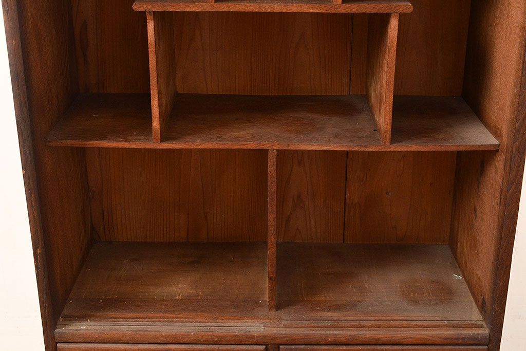 キャビネット・戸棚 > 和製アンティーク 三方栗材 上手物!様々なディスプレイが楽しめる、ユニークな棚が魅力のガラス戸棚(飾り棚、収納棚)(R-048042)