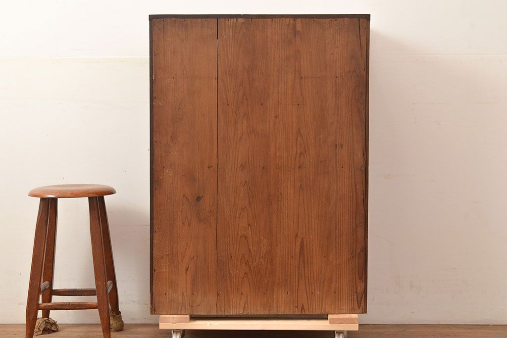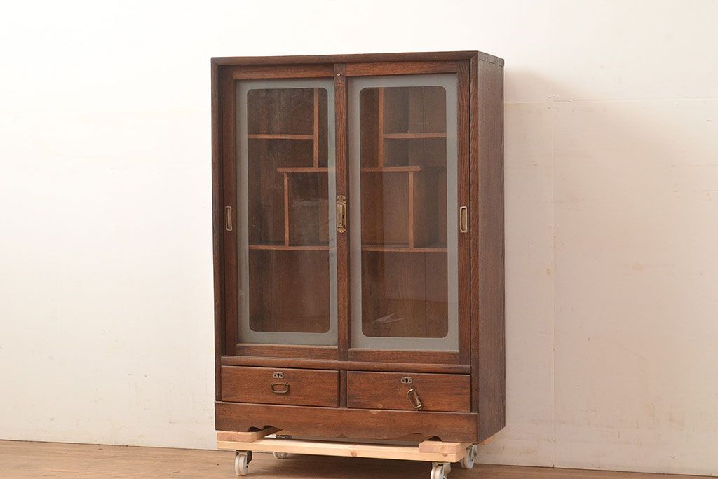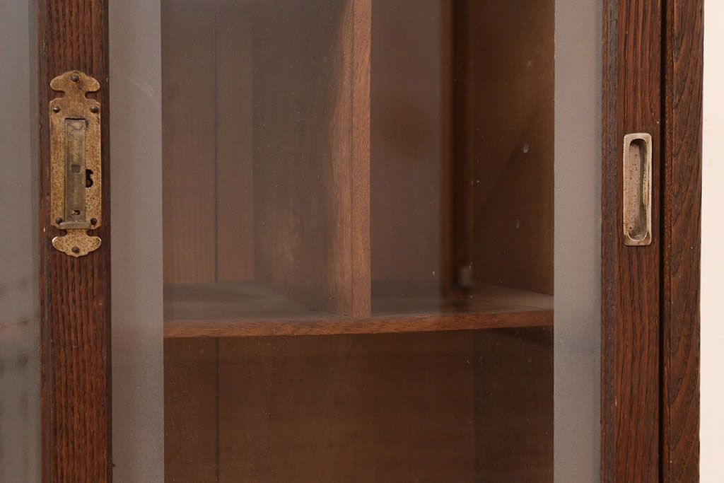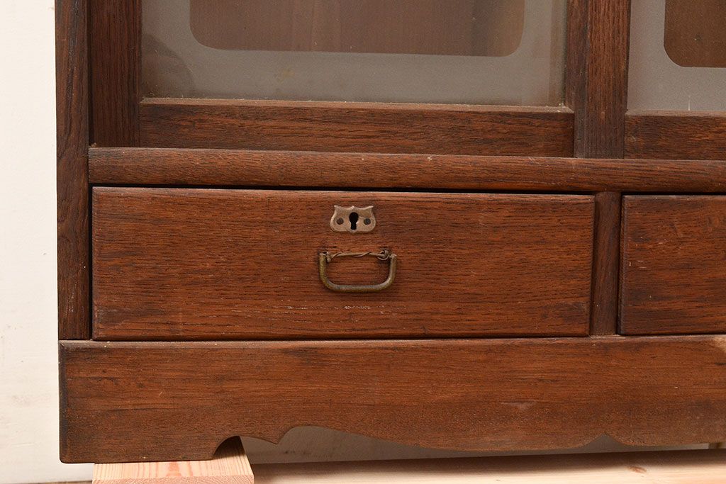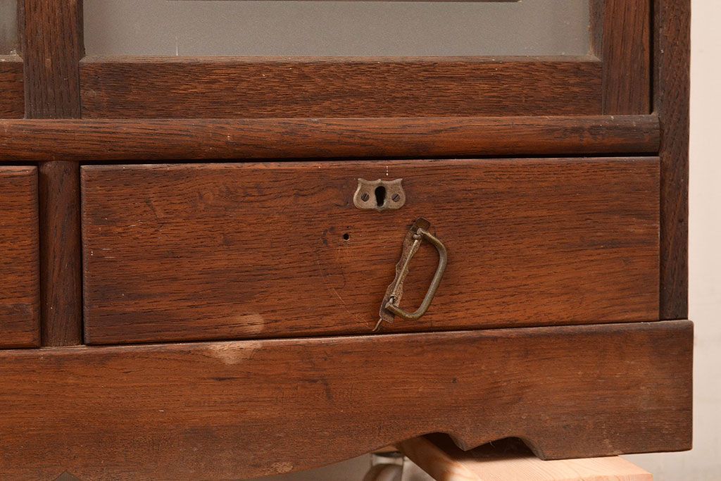 キャビネット・戸棚 > 和製アンティーク 三方栗材 上手物!様々なディスプレイが楽しめる、ユニークな棚が魅力のガラス戸棚(飾り棚、収納棚)(R-048042)