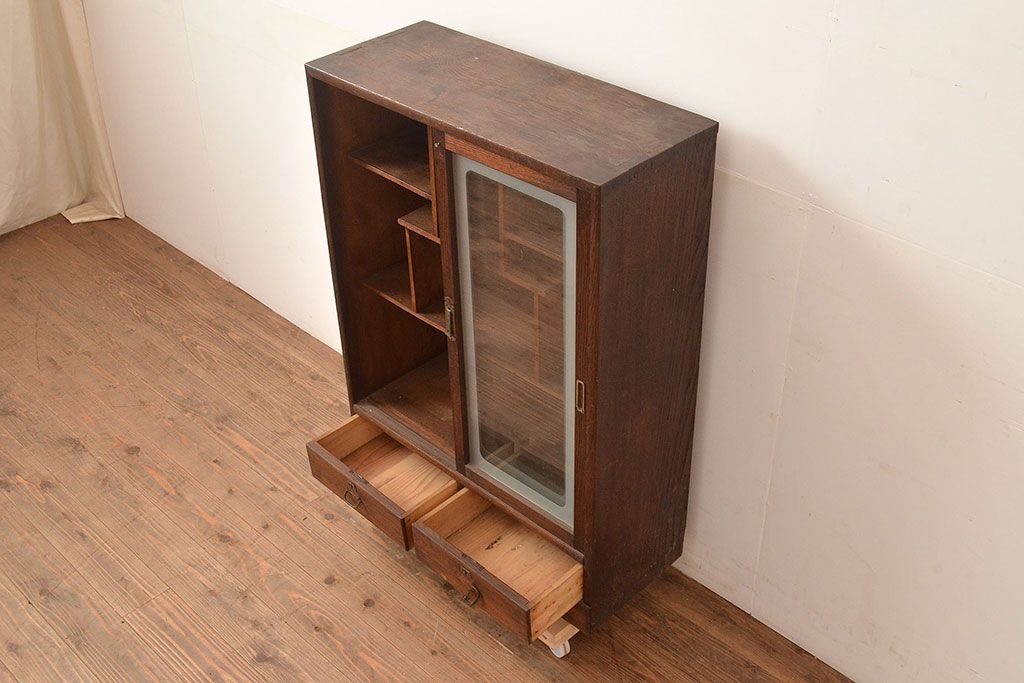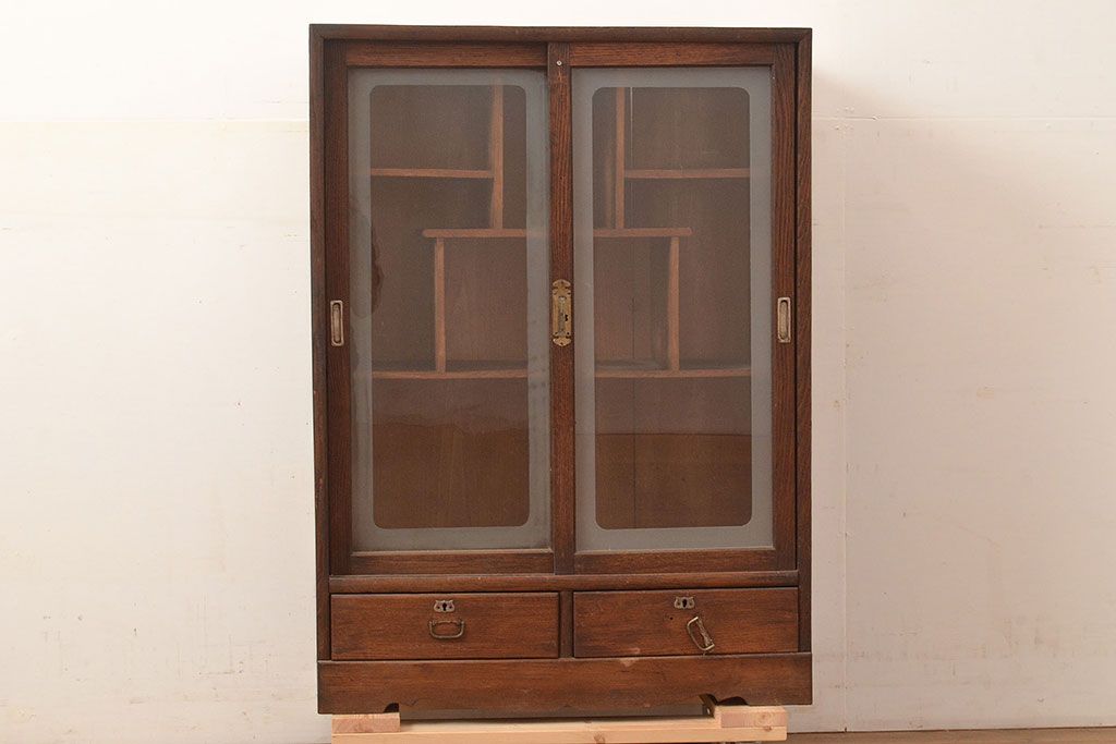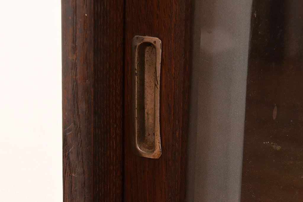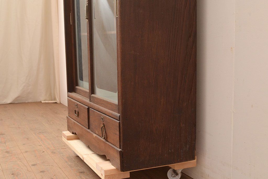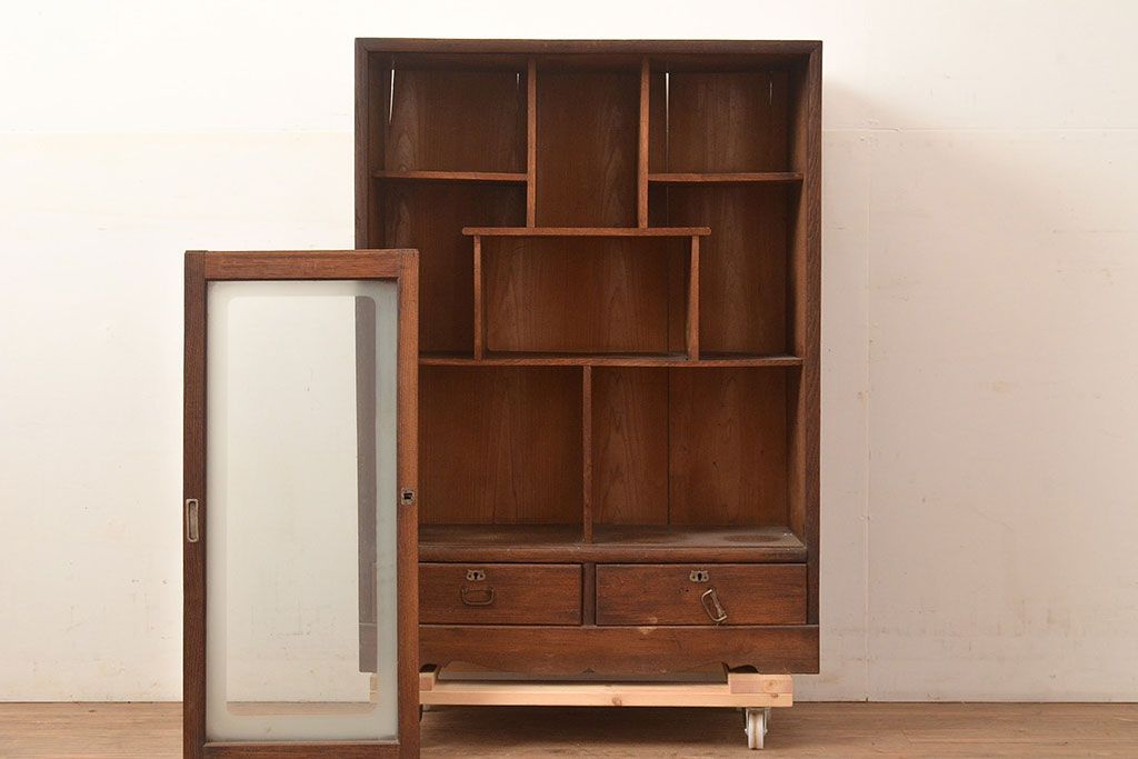 和製アンティーク 三方栗材 上手物!様々なディスプレイが楽しめる、ユニークな棚が魅力のガラス戸棚(飾り棚、収納棚)(R-048042)