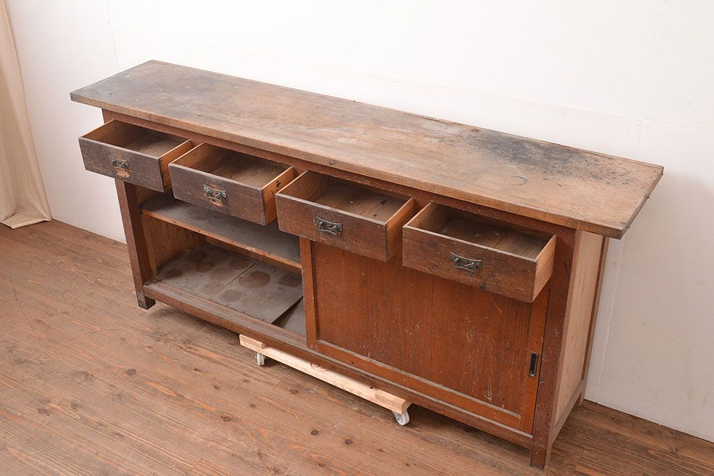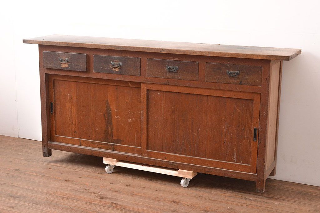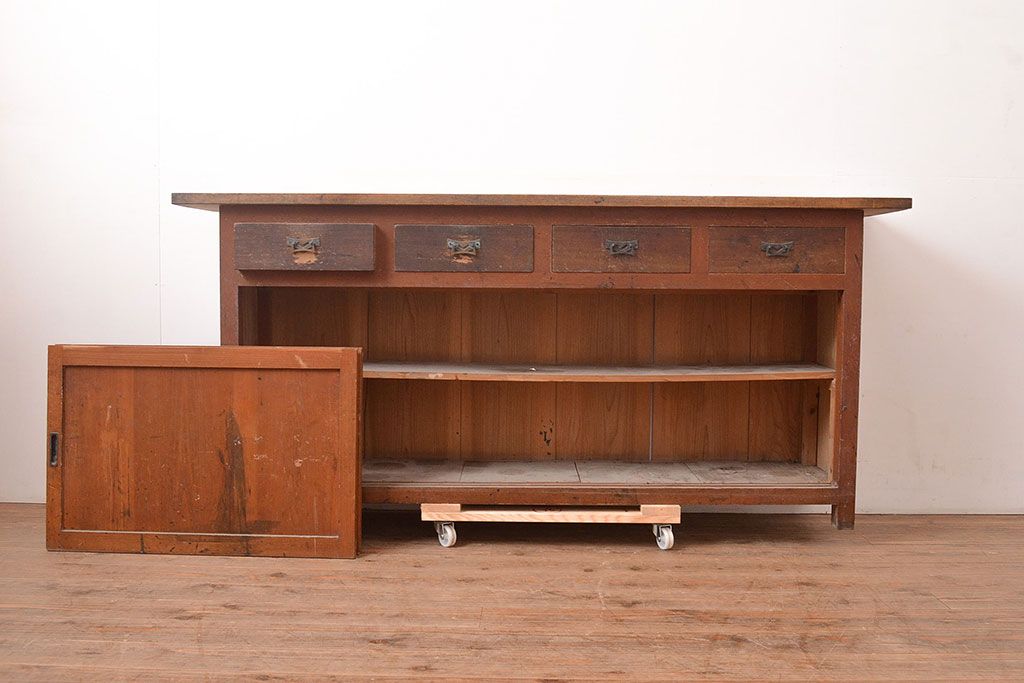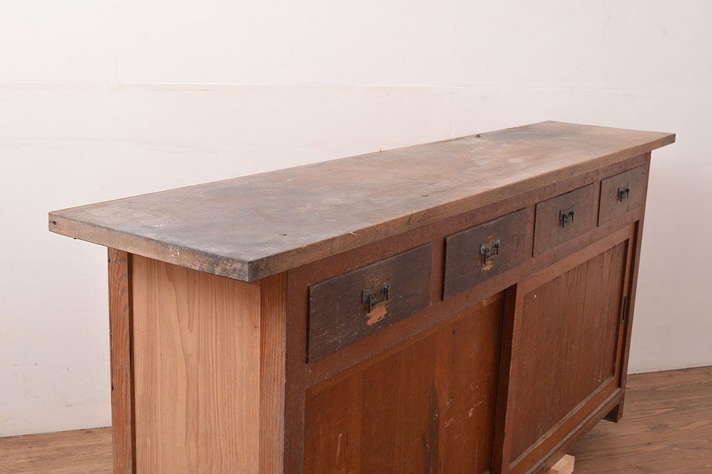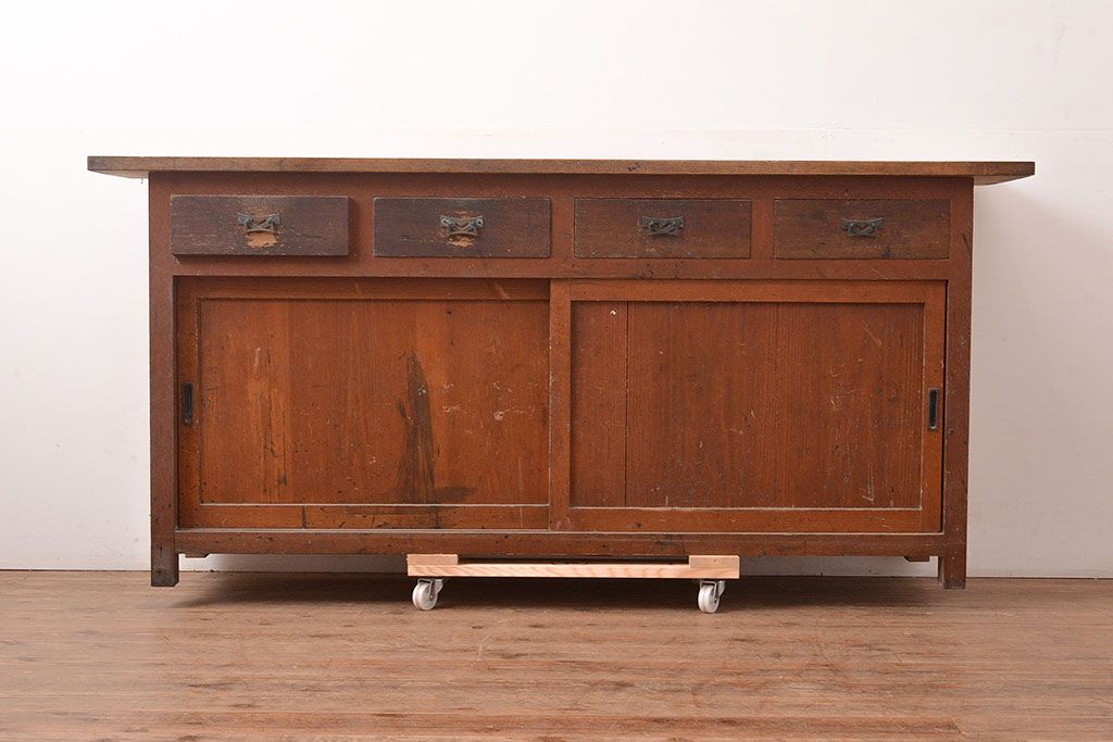 状態が気になる方には現状販売はおすすめできませんので、慎重なご検討をお願いいたします。和製アンティーク 幅がたっぷりあるレトロなカウンターテーブル(サイドボード、収納棚)(R-047676)です。