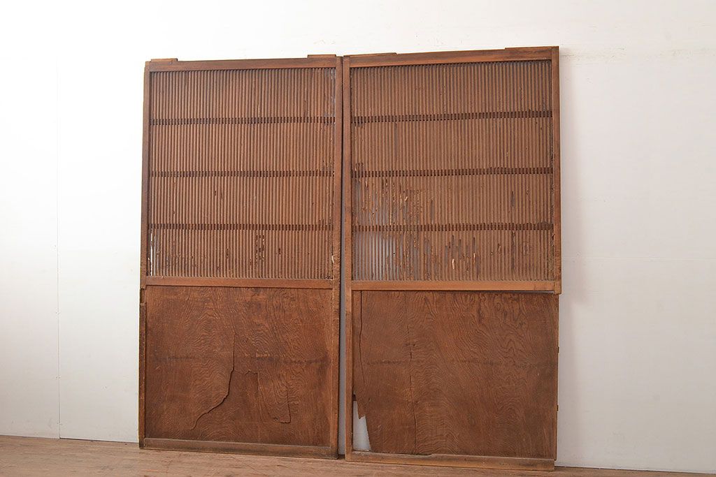 ラフジュ工房> ドア・建具> 2枚・3枚セット > 和製アンティーク 和モダンな空間づくりに活躍する万本格子戸(引き戸、障子戸)(R-048125)