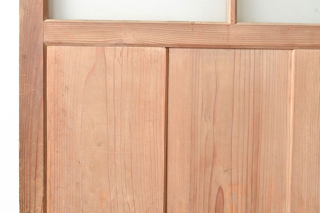状態が気になる方には現状販売はおすすめできませんので、慎重なご検討をお願いいたします。アンティーク建具 昭和初期 和の風情漂う素朴で味わい深い杉材製のドア(扉、建具)(R-048221)です。