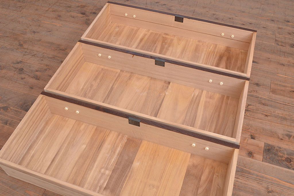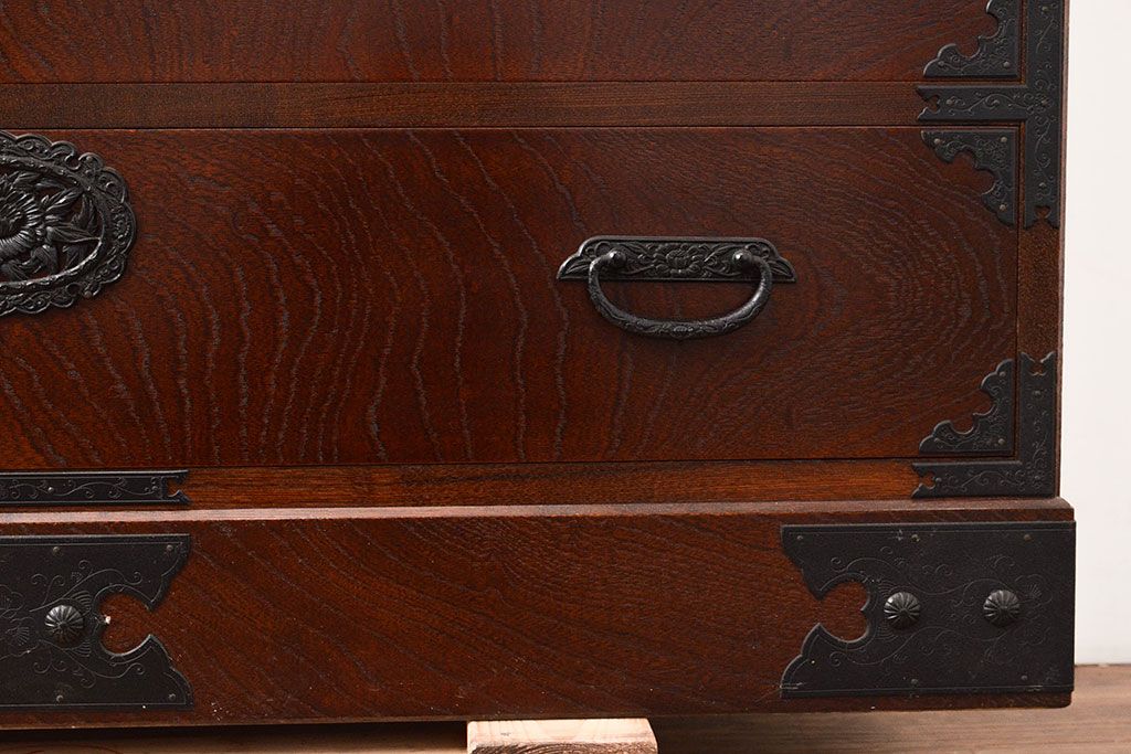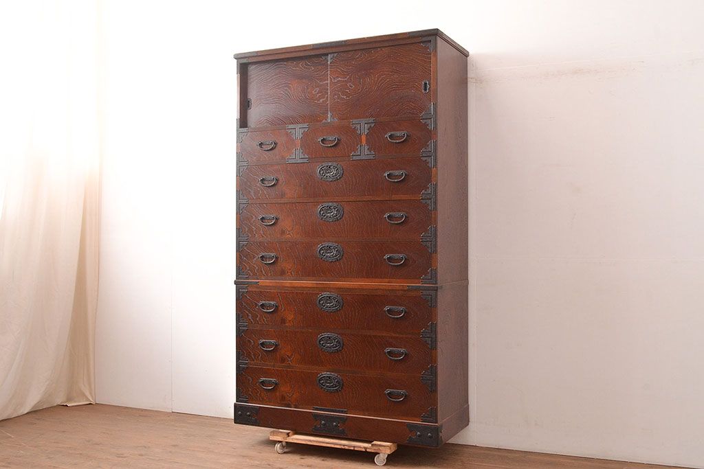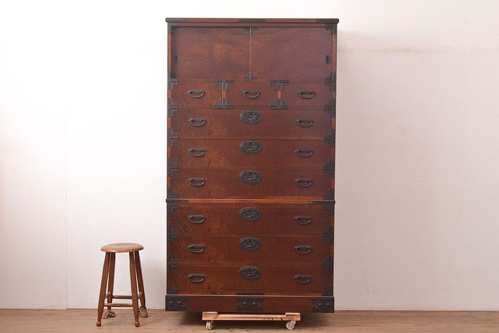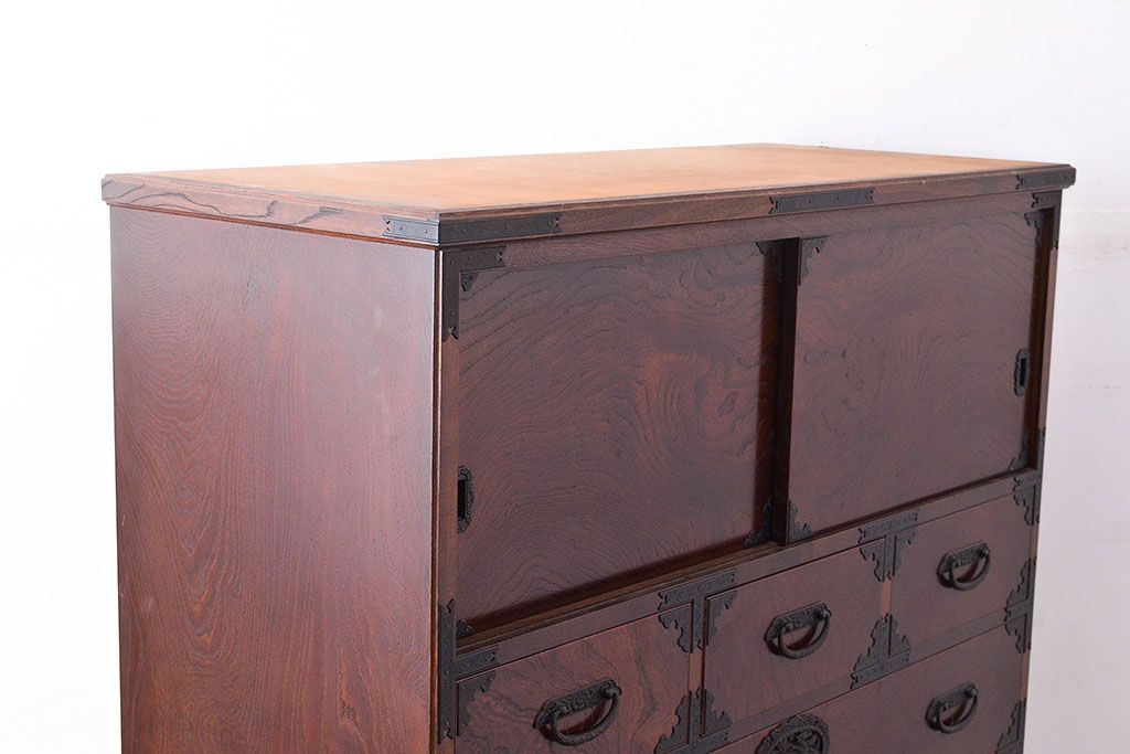 和箪笥> 衣装箪笥 > 中古 国産民芸家具!品のある佇まいが魅力的な前面ケヤキ材製の重ね箪笥(衣装箪笥、引き出し、チェスト)(R-047852)