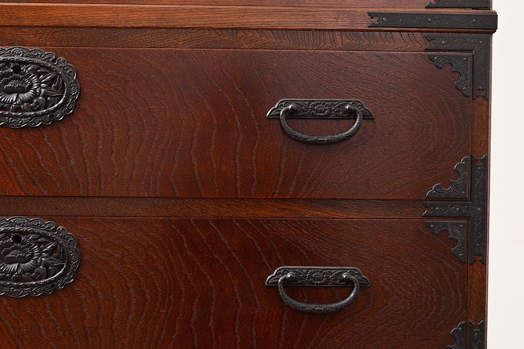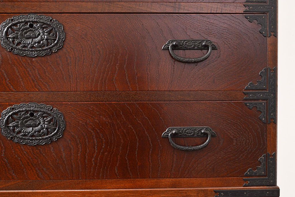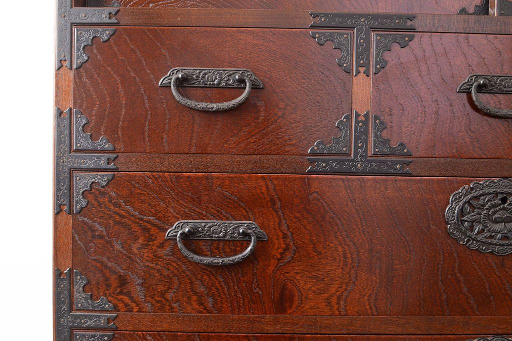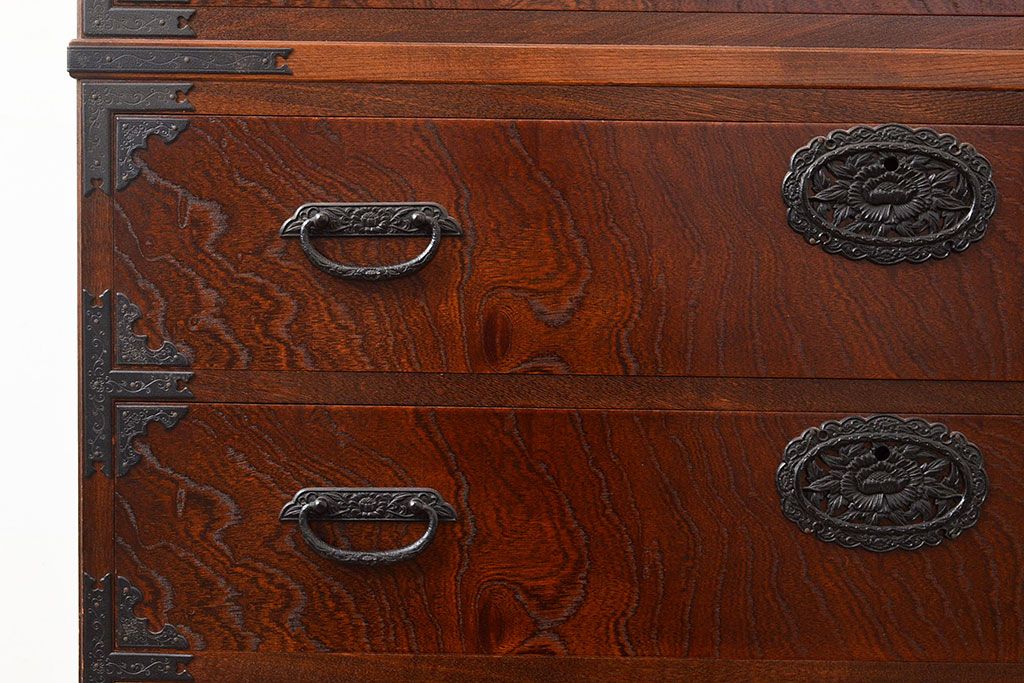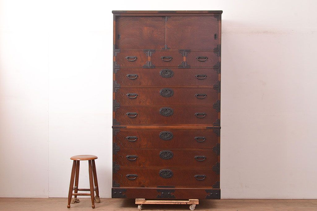 和箪笥 > 中古 国産民芸家具!品のある佇まいが魅力的な前面ケヤキ材製の重ね箪笥(衣装箪笥、引き出し、チェスト)(R-047852)
