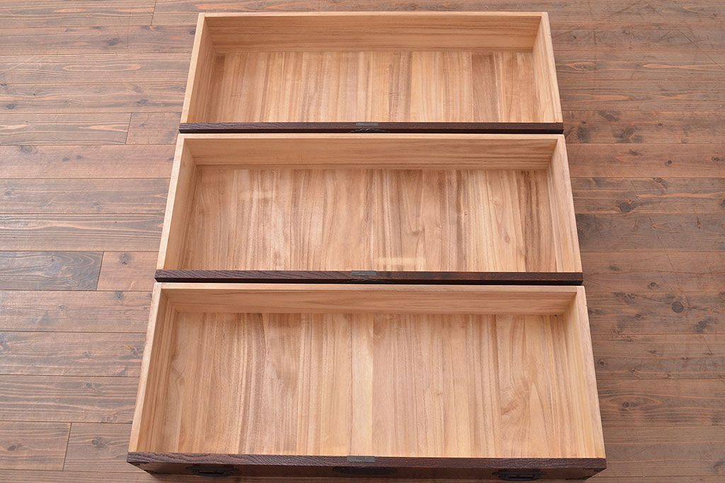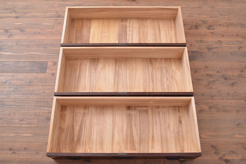 中古 国産民芸家具!品のある佇まいが魅力的な前面ケヤキ材製の重ね箪笥(衣装箪笥、引き出し、チェスト)(R-047852)