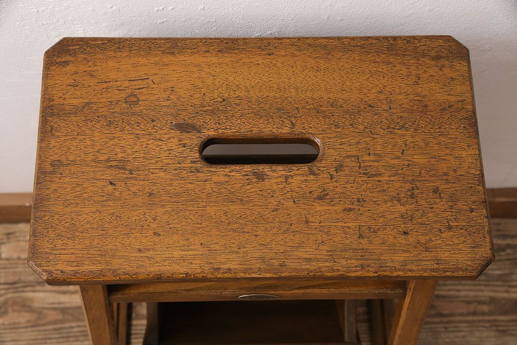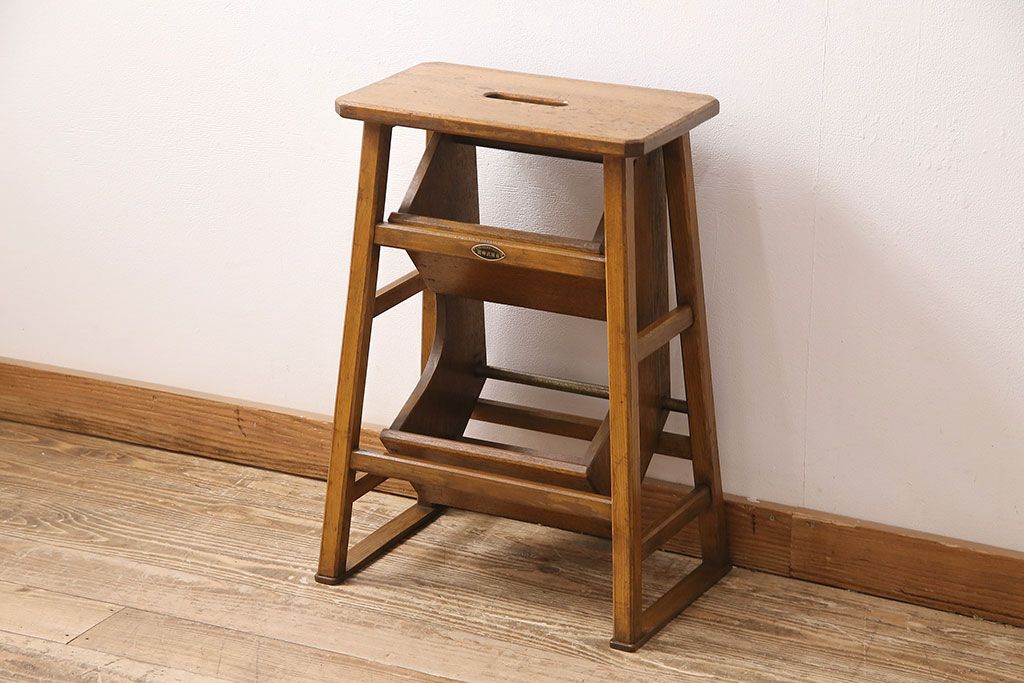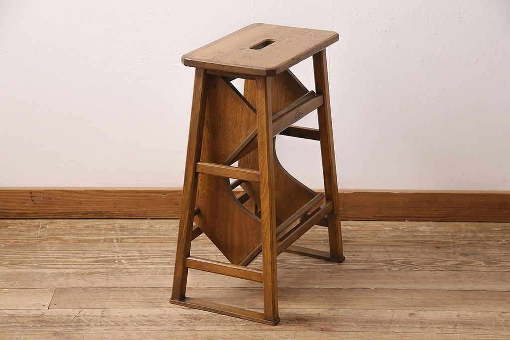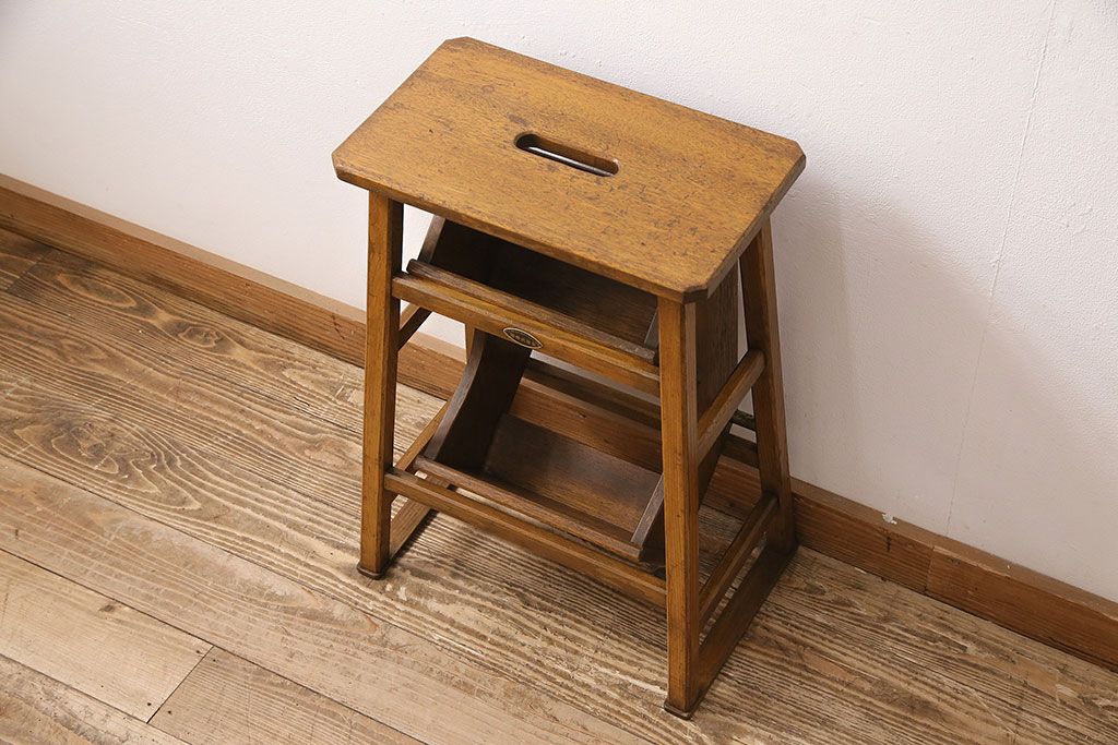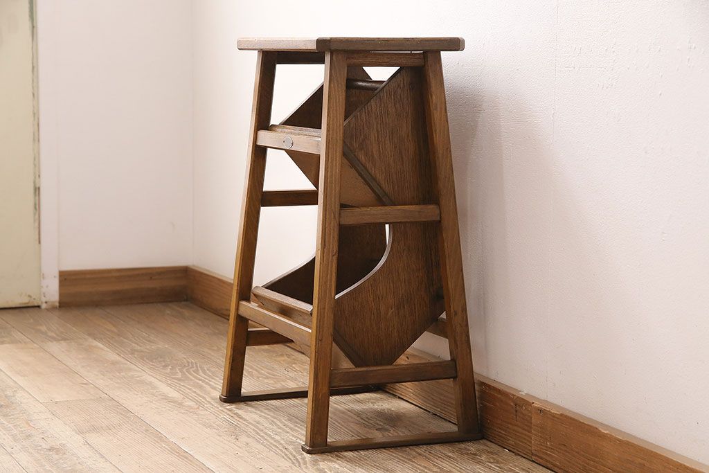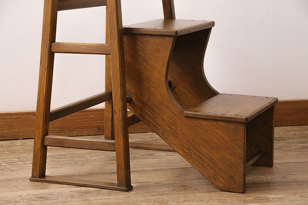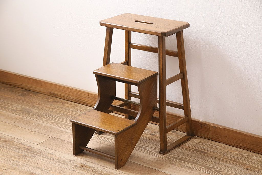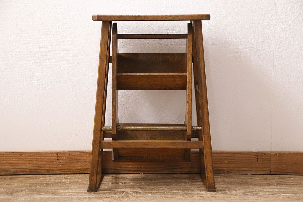 アンティーク家具 収納できる階段が珍しい踏み台(3段、ステップ、飾り棚)(R-048499)