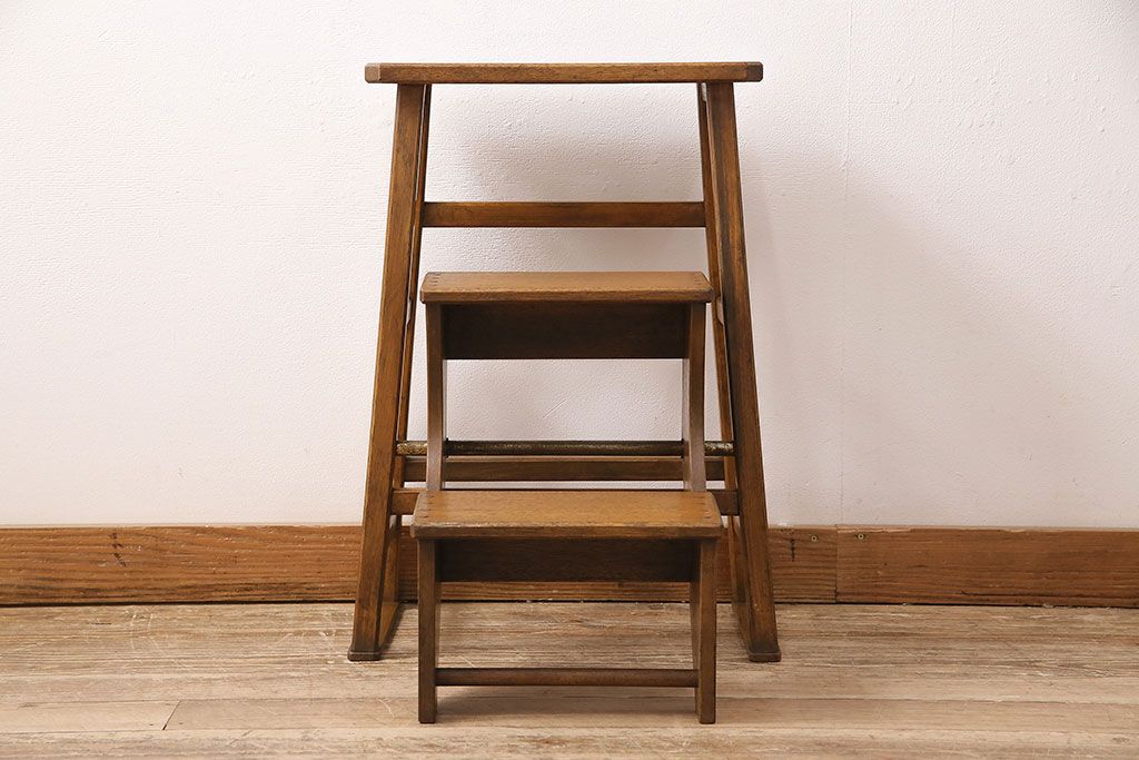 アンティーク家具 収納できる階段が珍しい踏み台(3段、ステップ、飾り棚)(R-048499)です。