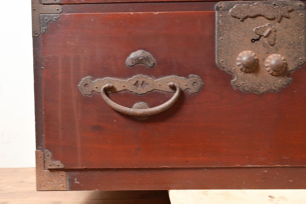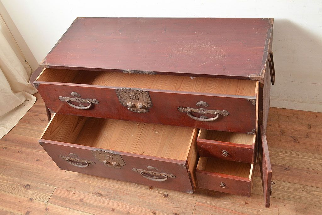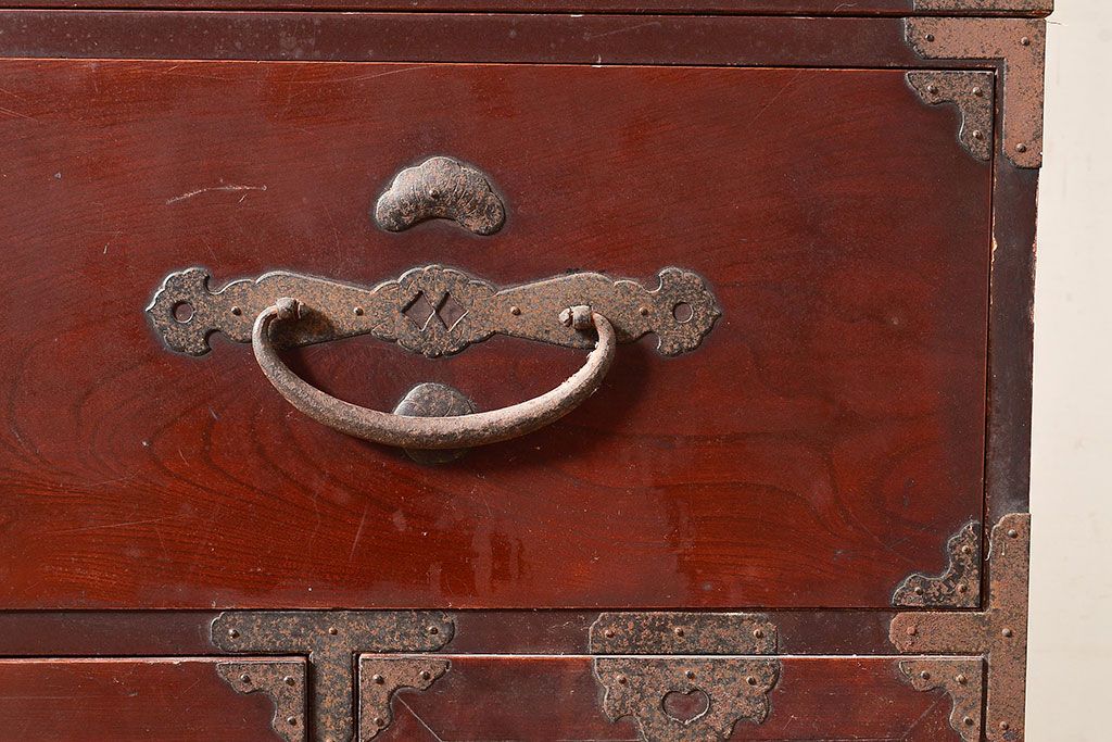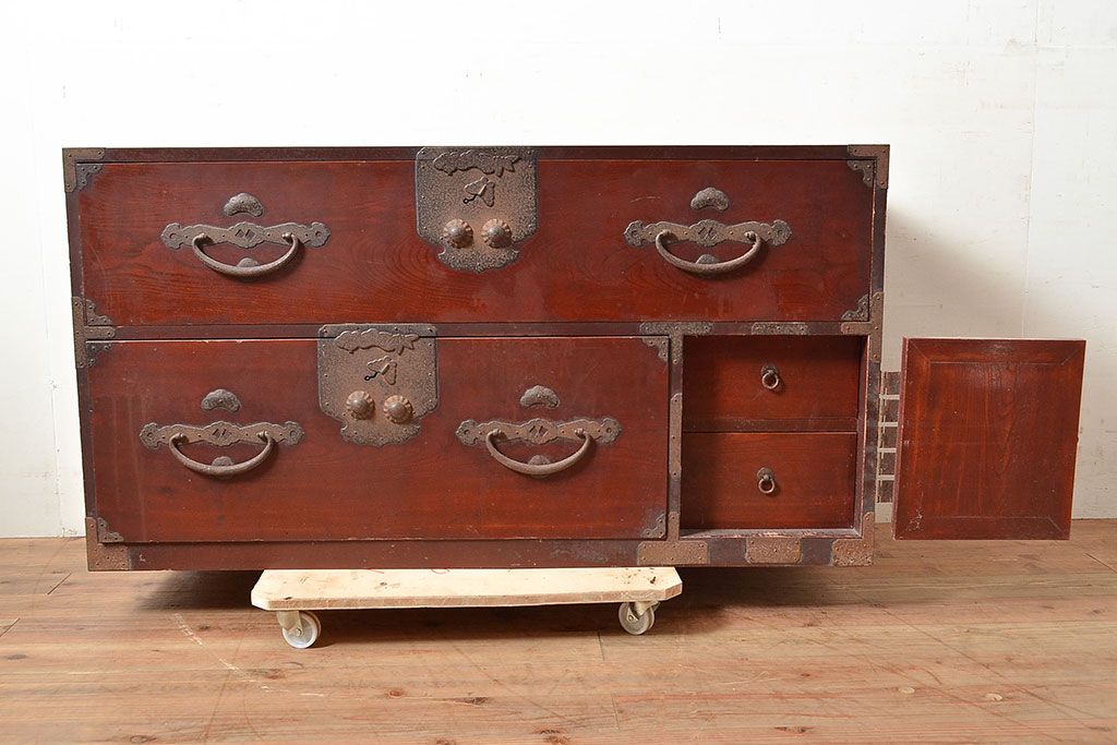 和箪笥> 衣装箪笥 > 和製アンティーク 上手物!前面欅(ケヤキ)材の上品な二本松箪笥(和たんす、収納タンス、時代箪笥、衣装箪笥、引き出し)(R-047607)