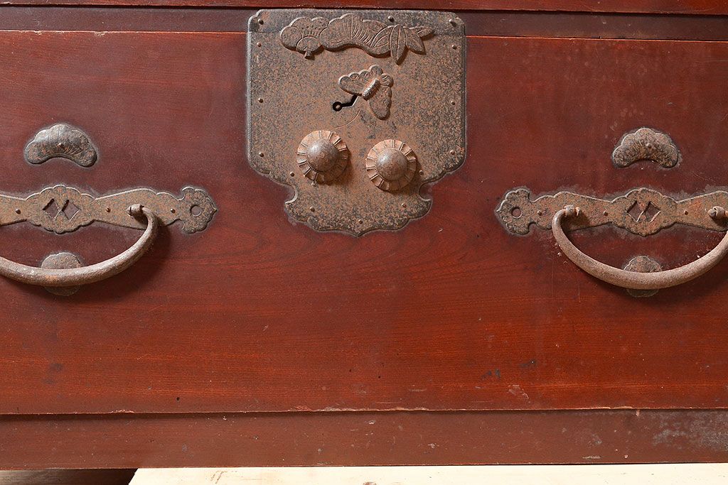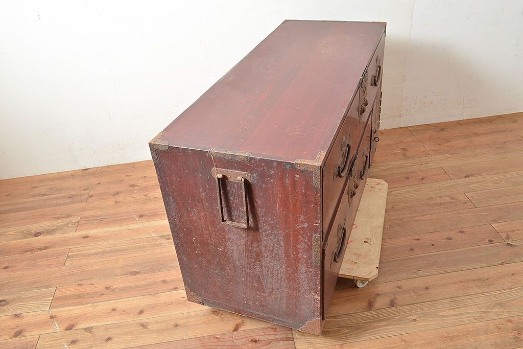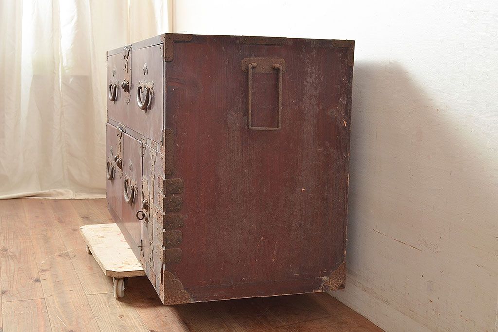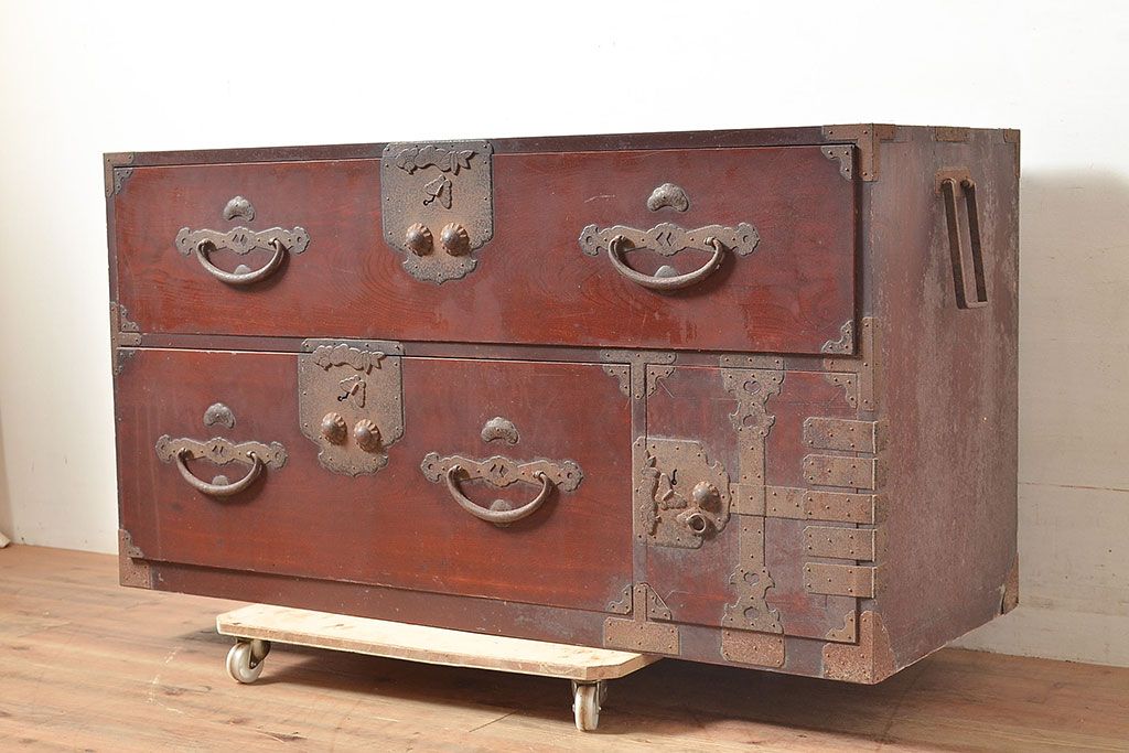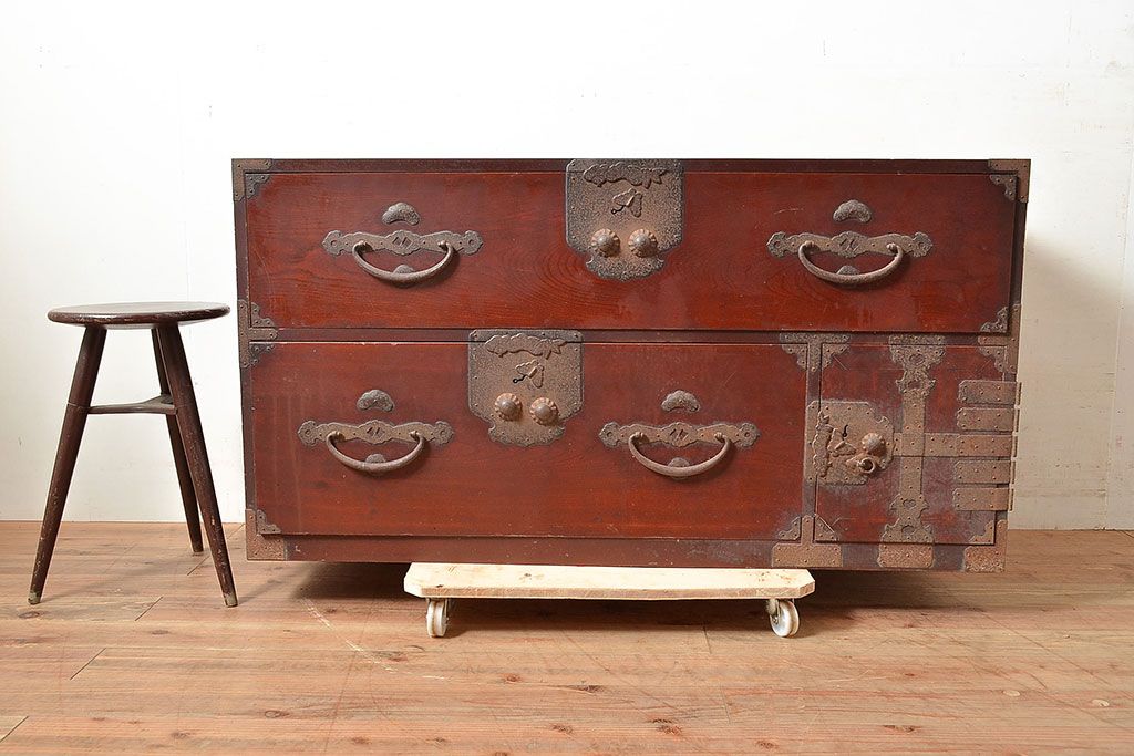 和箪笥> 衣装箪笥 > 和製アンティーク 上手物!前面欅(ケヤキ)材の上品な二本松箪笥(和たんす、収納タンス、時代箪笥、衣装箪笥、引き出し)(R-047607)