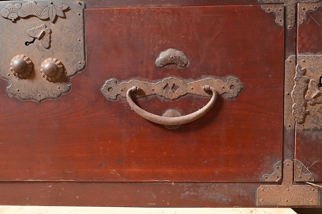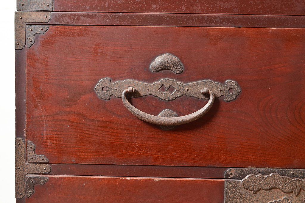 和箪笥 > 和製アンティーク 上手物!前面欅(ケヤキ)材の上品な二本松箪笥(和たんす、収納タンス、時代箪笥、衣装箪笥、引き出し)(R-047607)