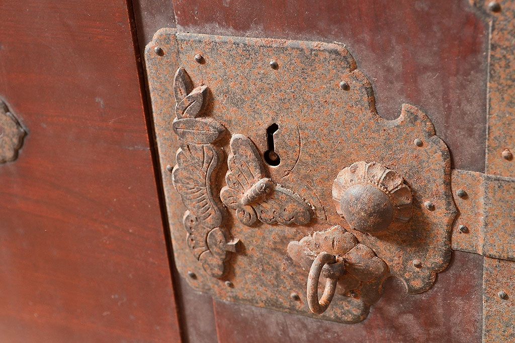 めでたい図柄の松竹梅と蝶の意匠が施された金具も魅力ですよ。
